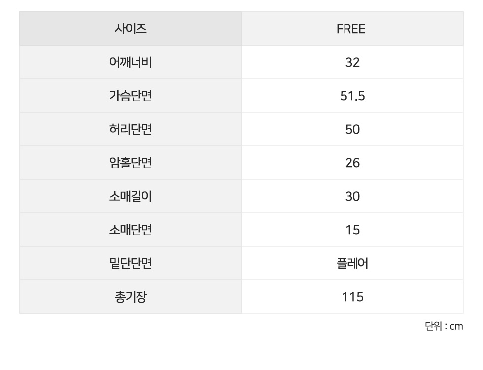 FREE 어깨단면32 가슴단면51.5 허리단면50