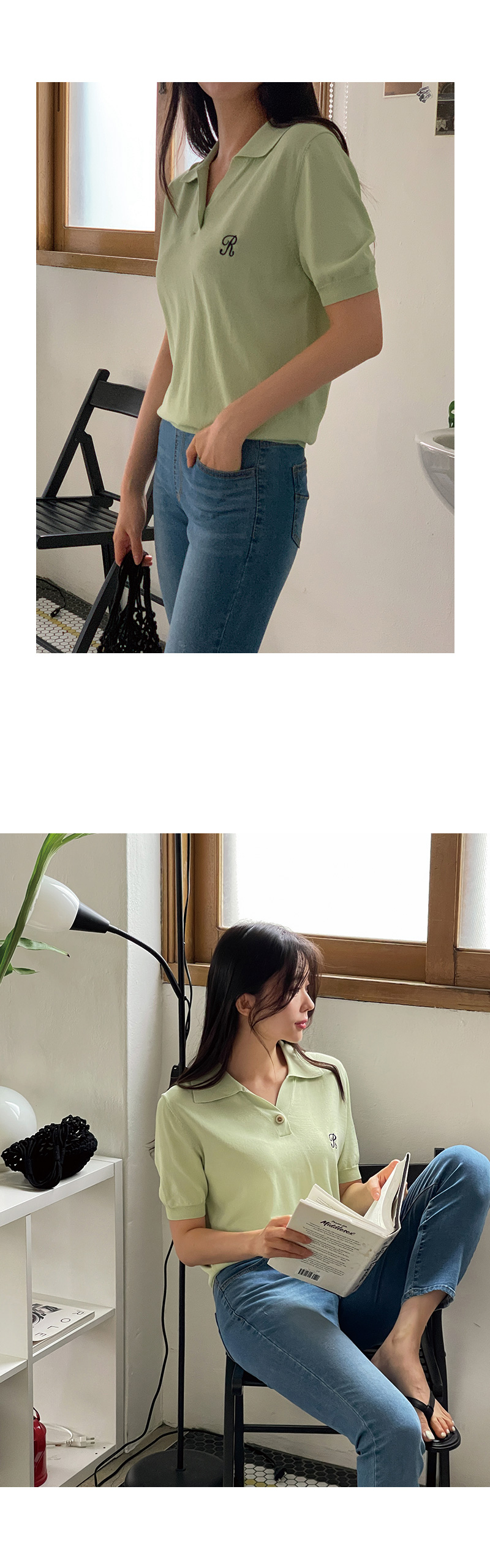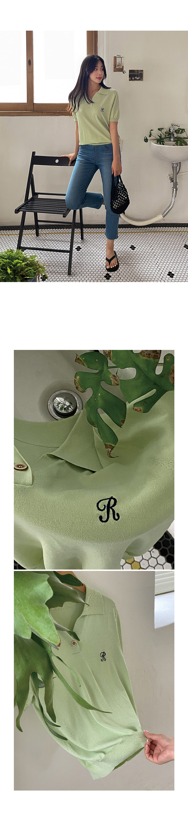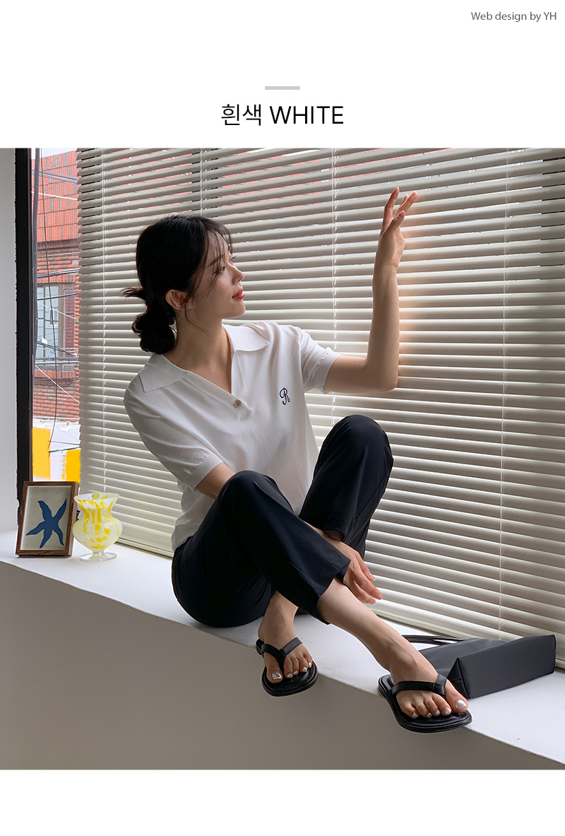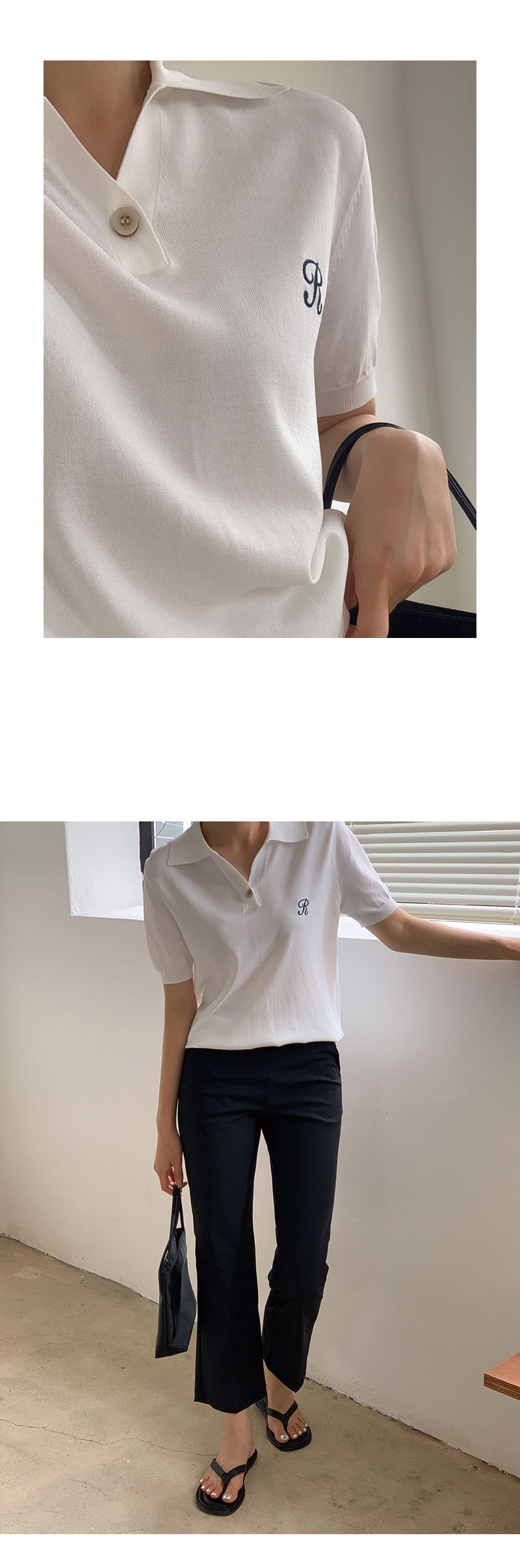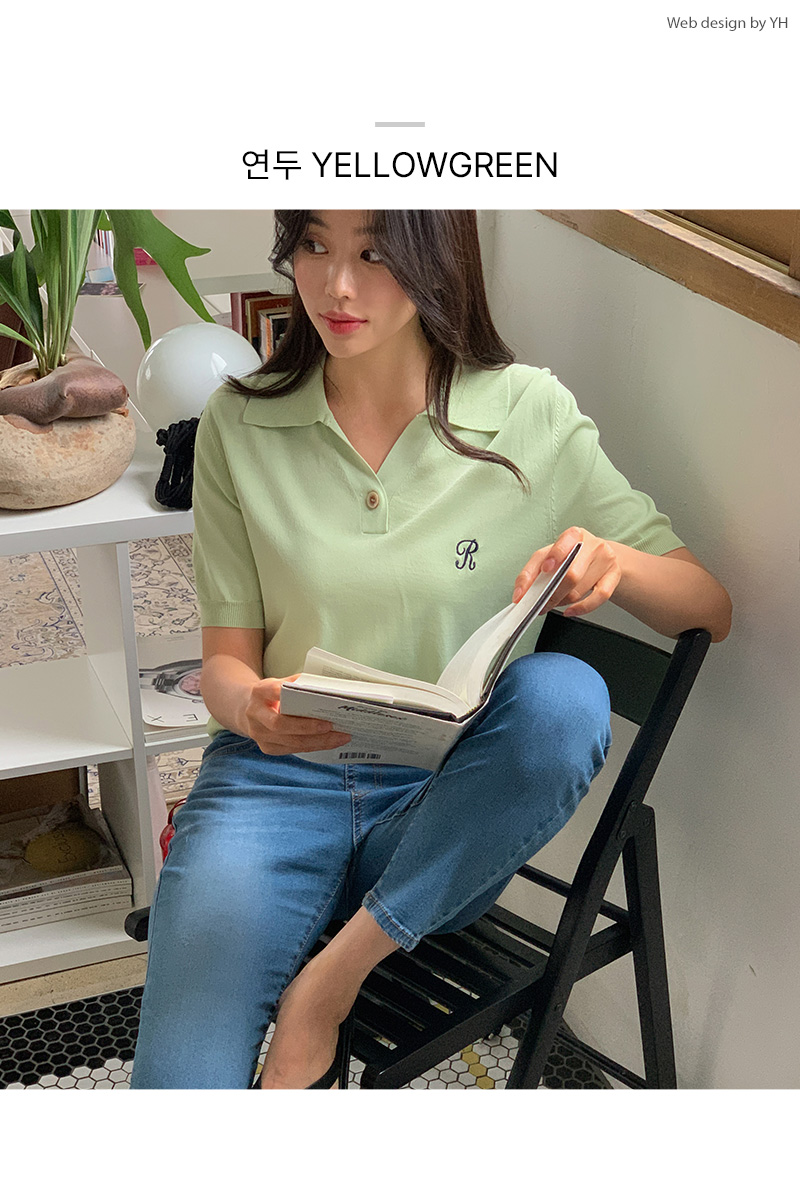썸머 R 자수 카라 반팔 니트를