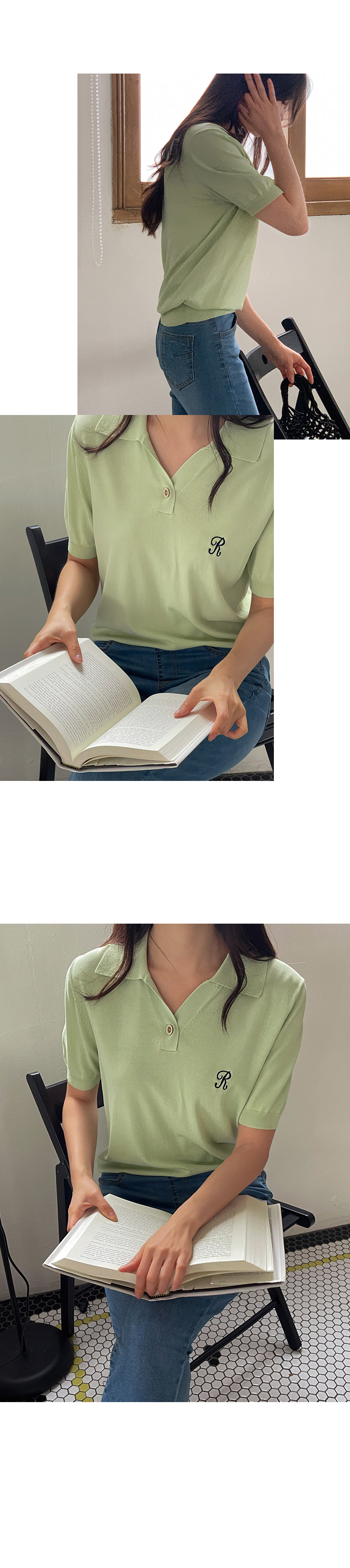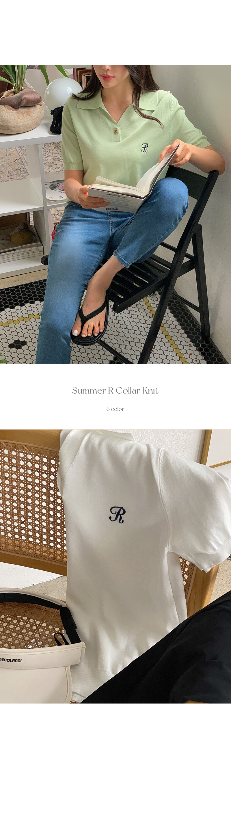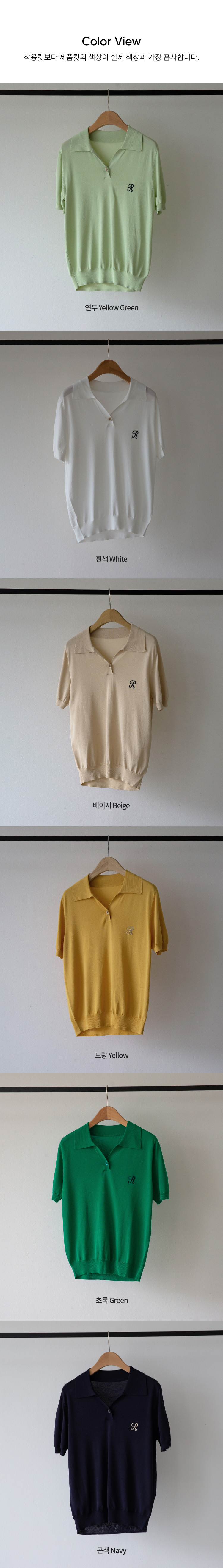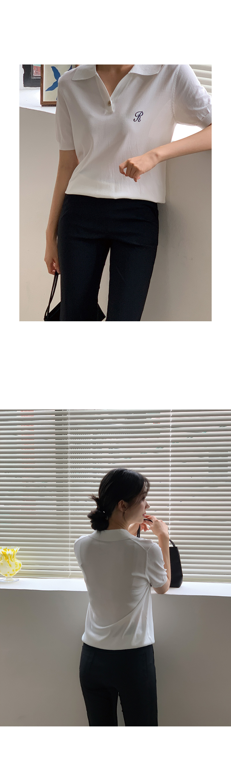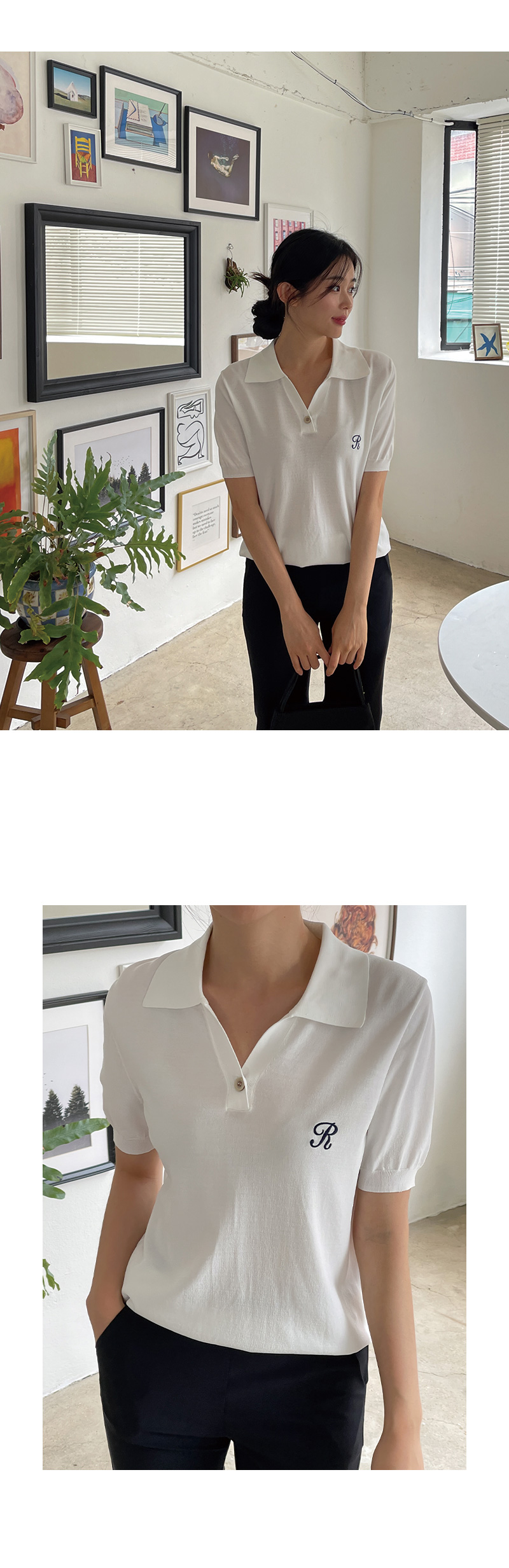썸머 R 자수 카라 반팔 니트를