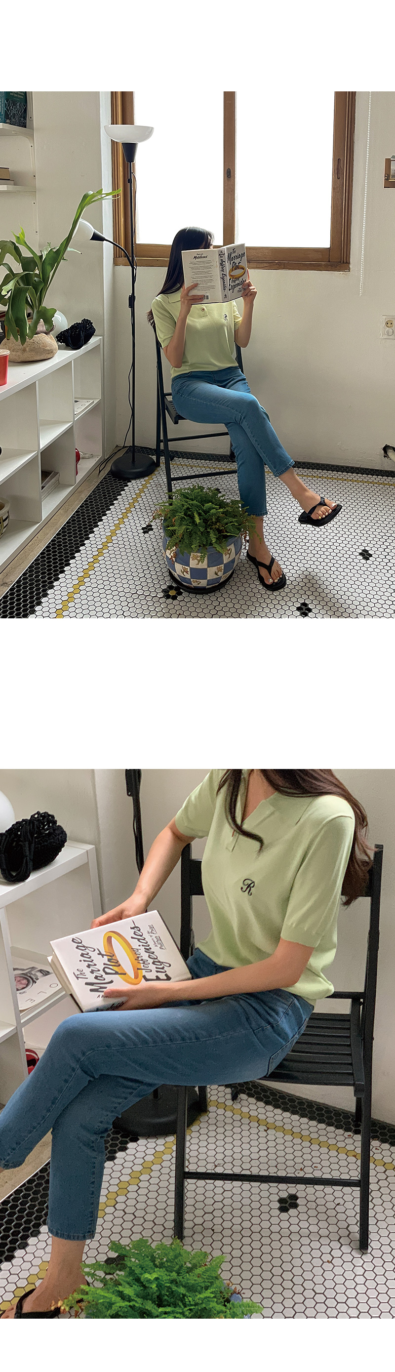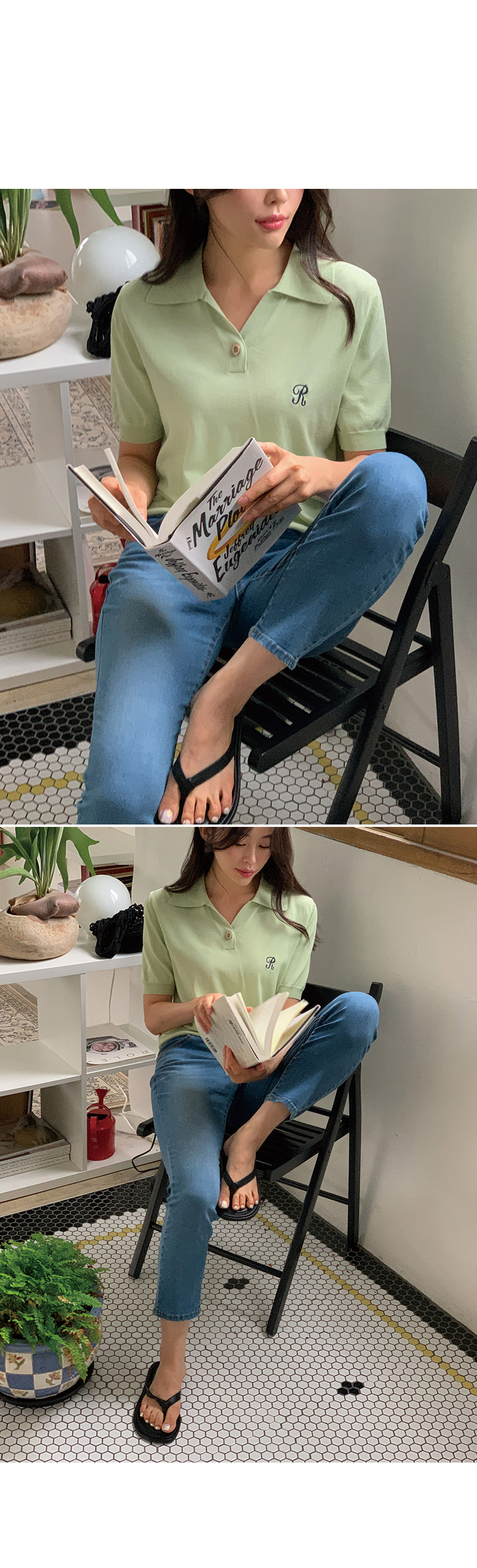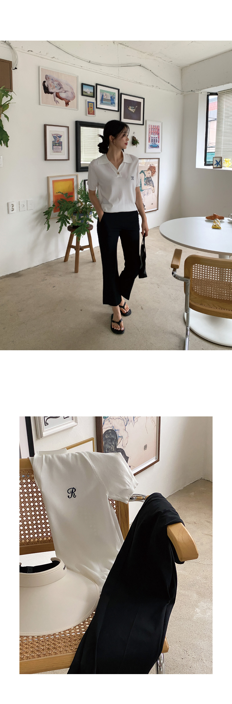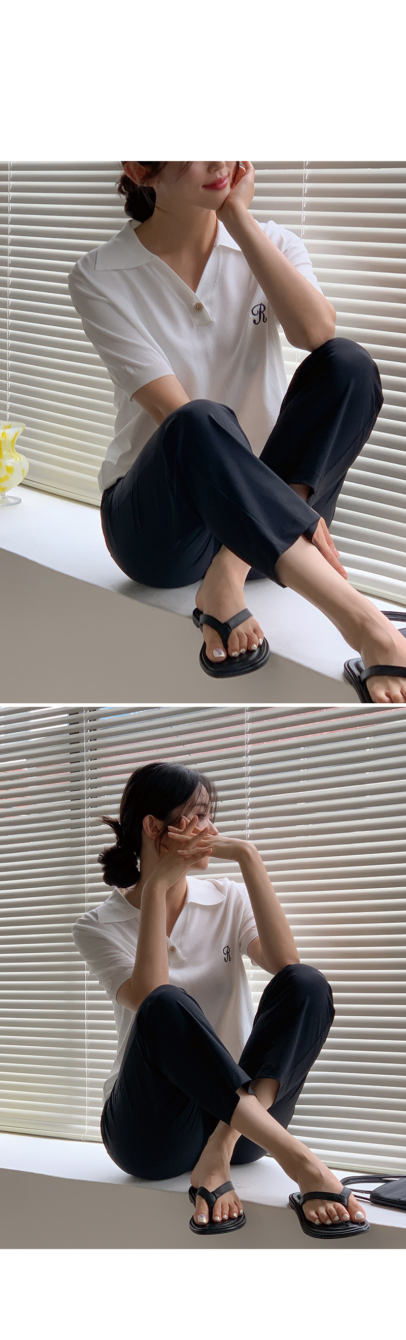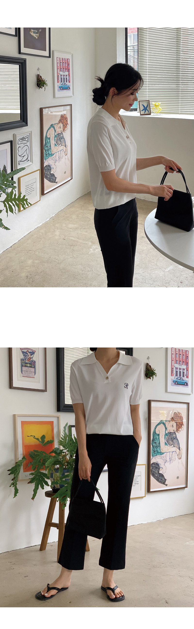 썸머 R 자수 카라 반팔 니트를
