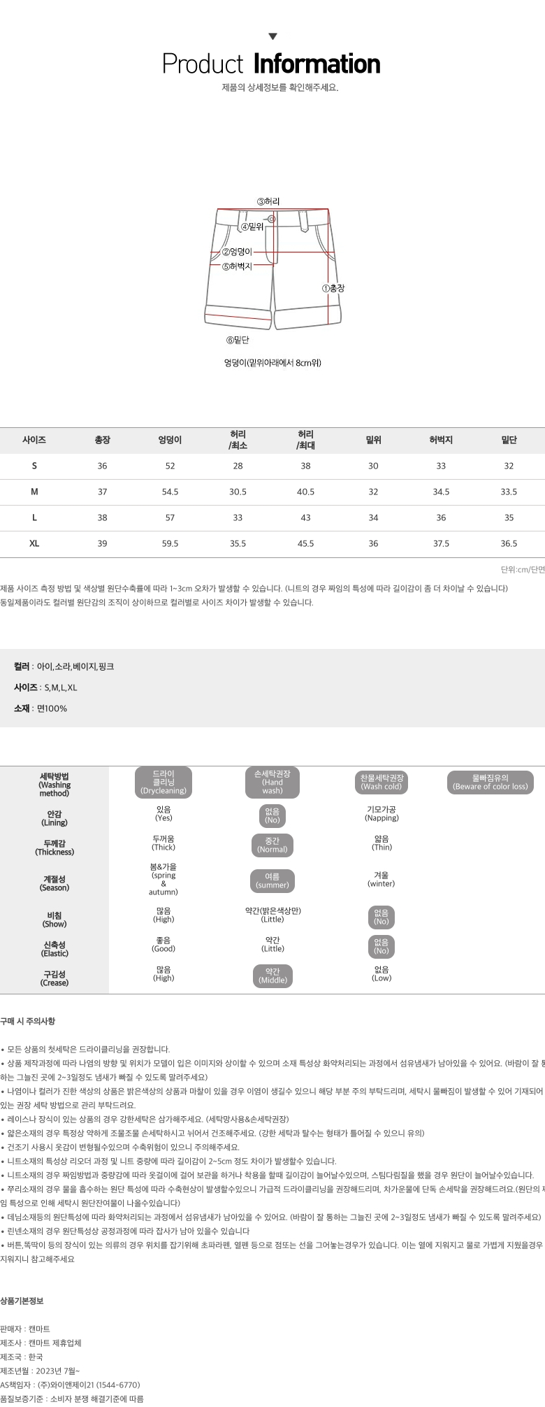 기본 면 팬츠, 반바지는 많이들 보셔도
