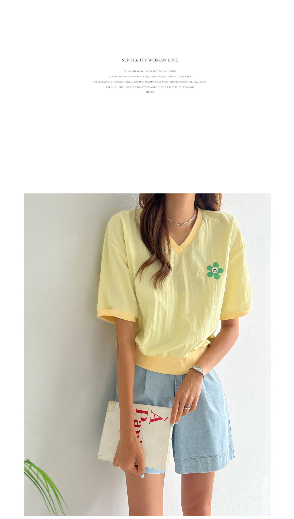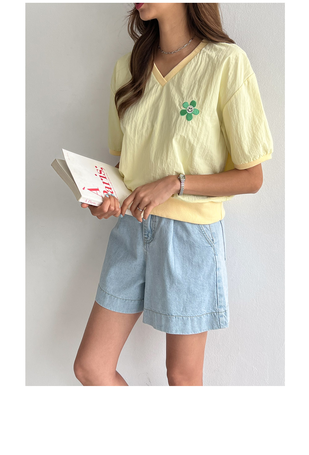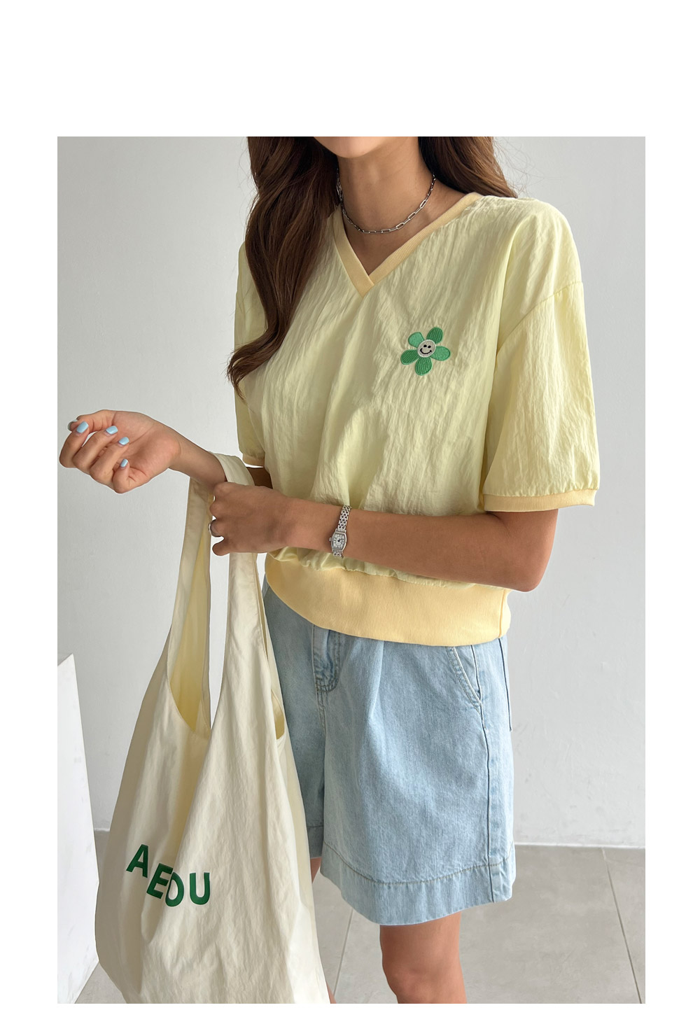 귀여운 자수가 포인트가 되어주는 티셔츠 추천드려요