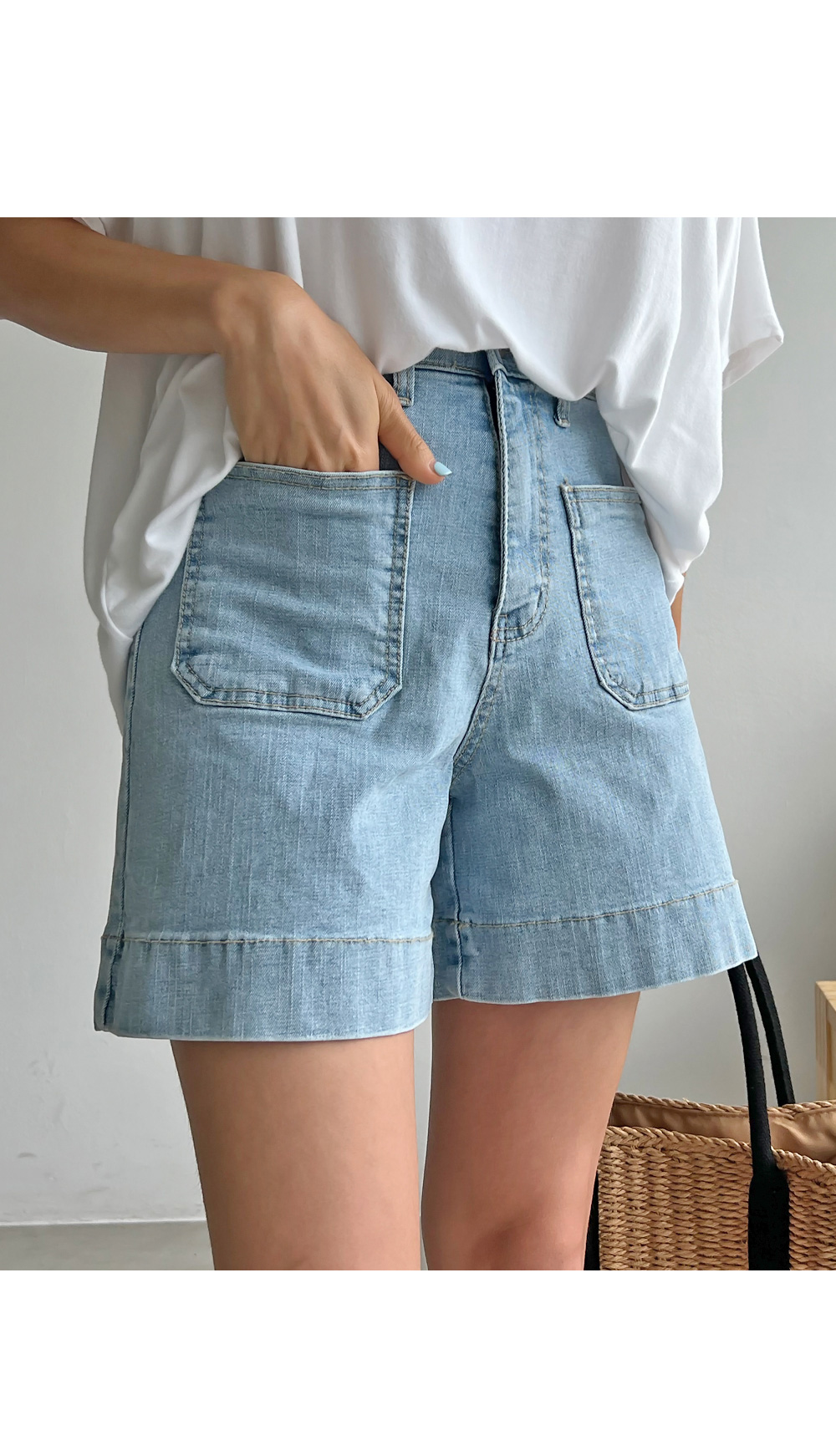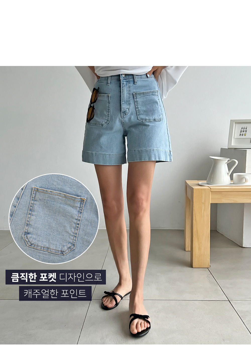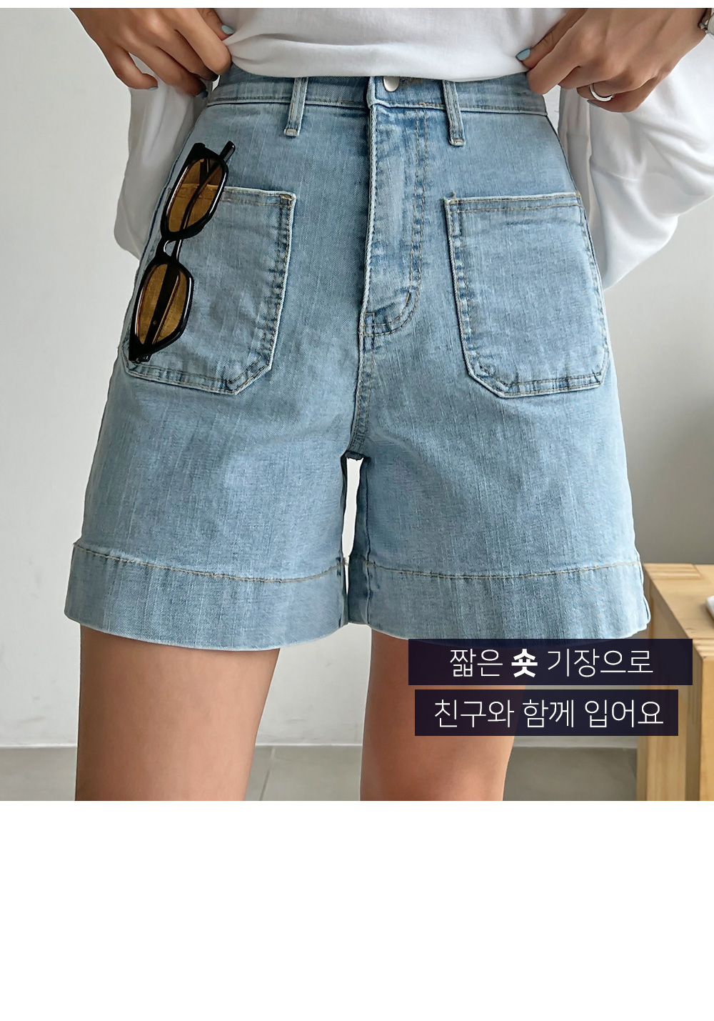 베이직한 포켓 디테일의 데님숏팬츠랍니다.