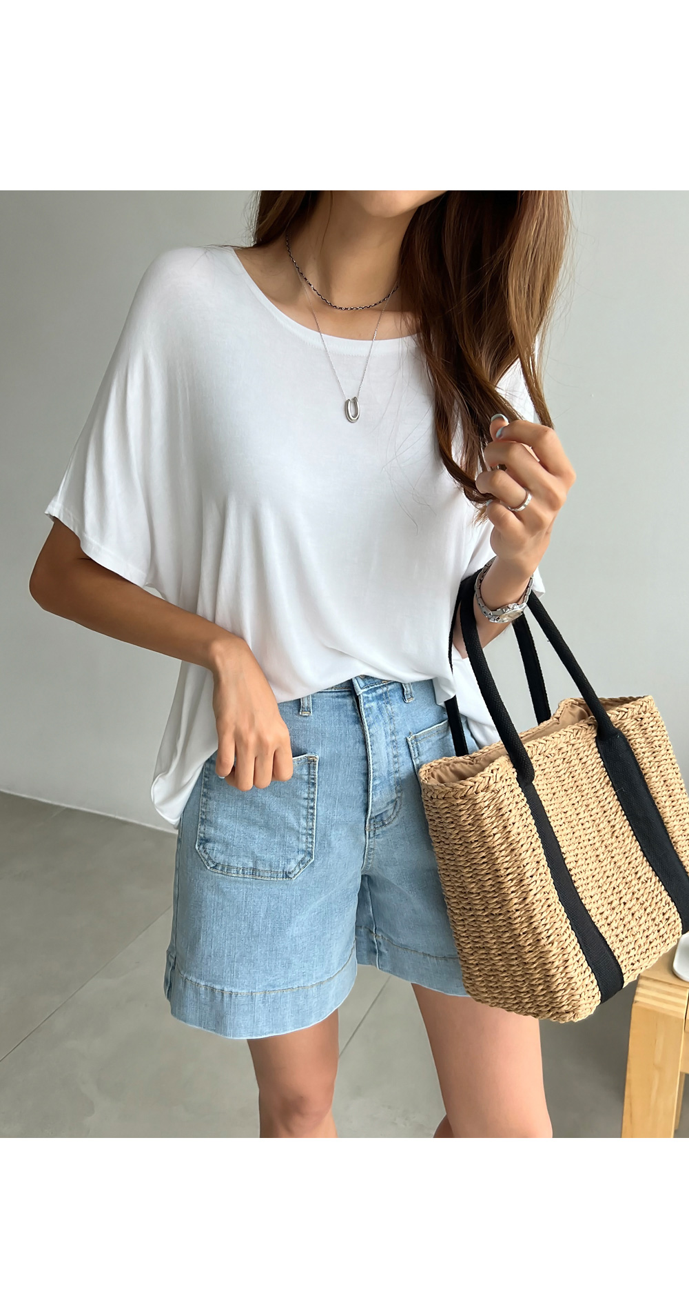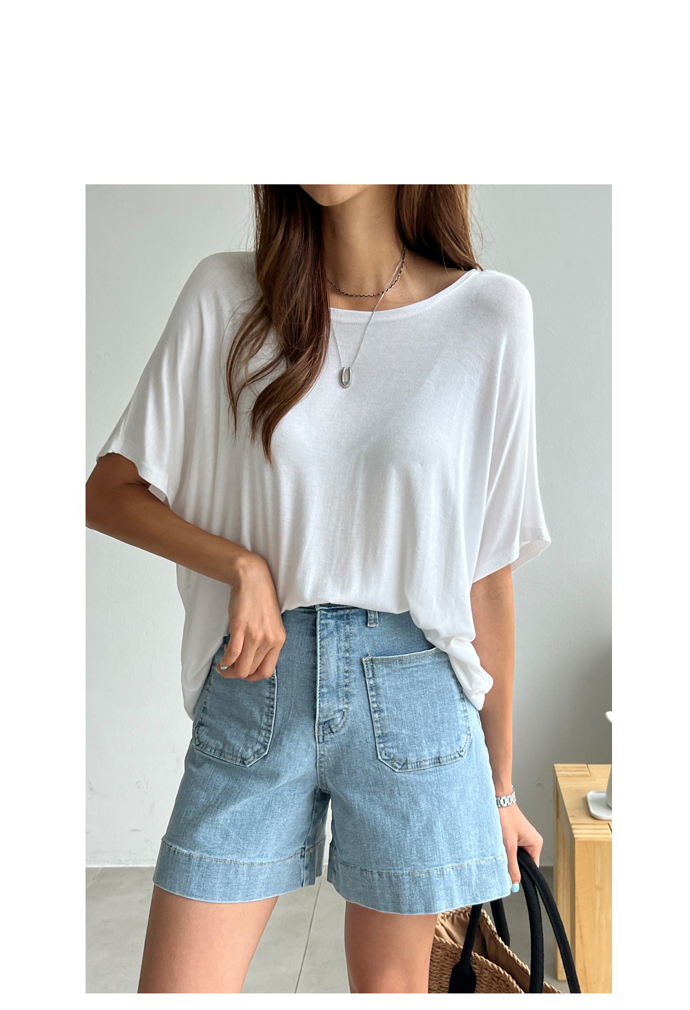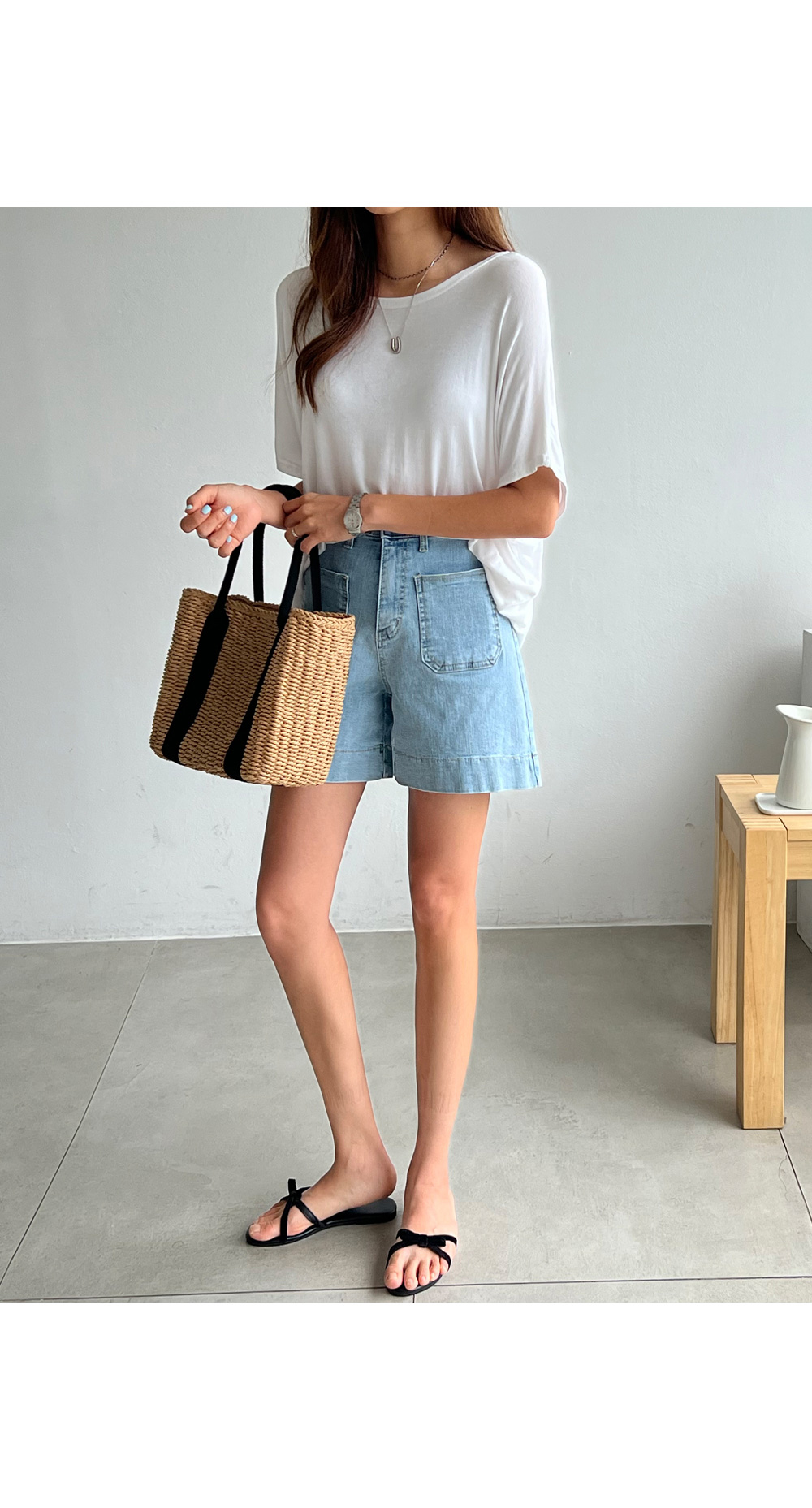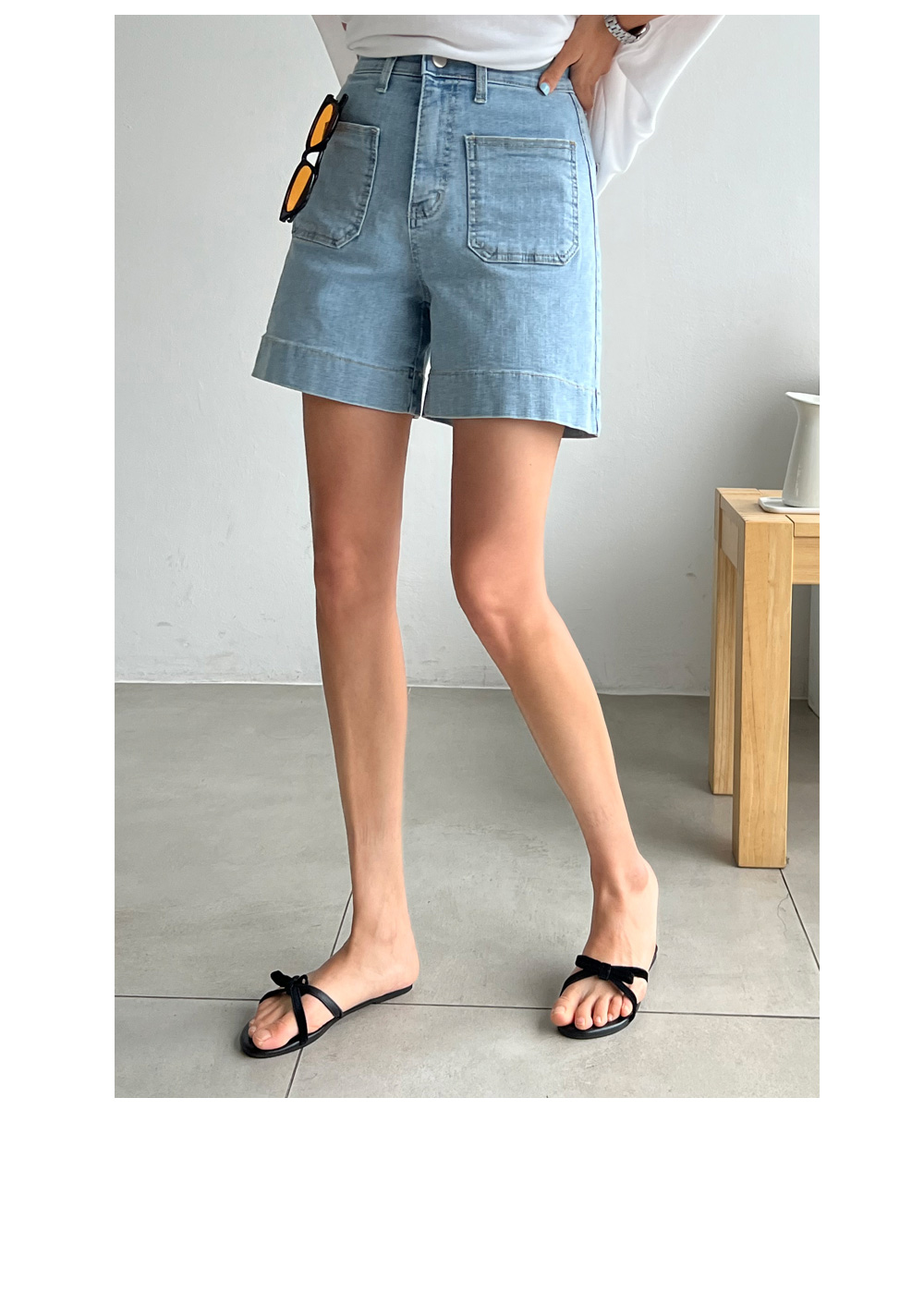 베이직한 포켓 디테일의 데님숏팬츠랍니다.