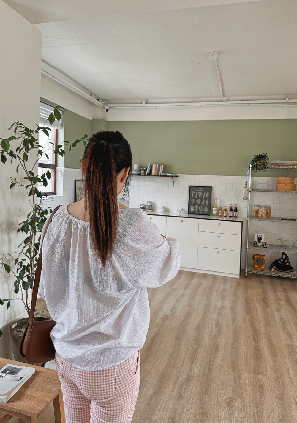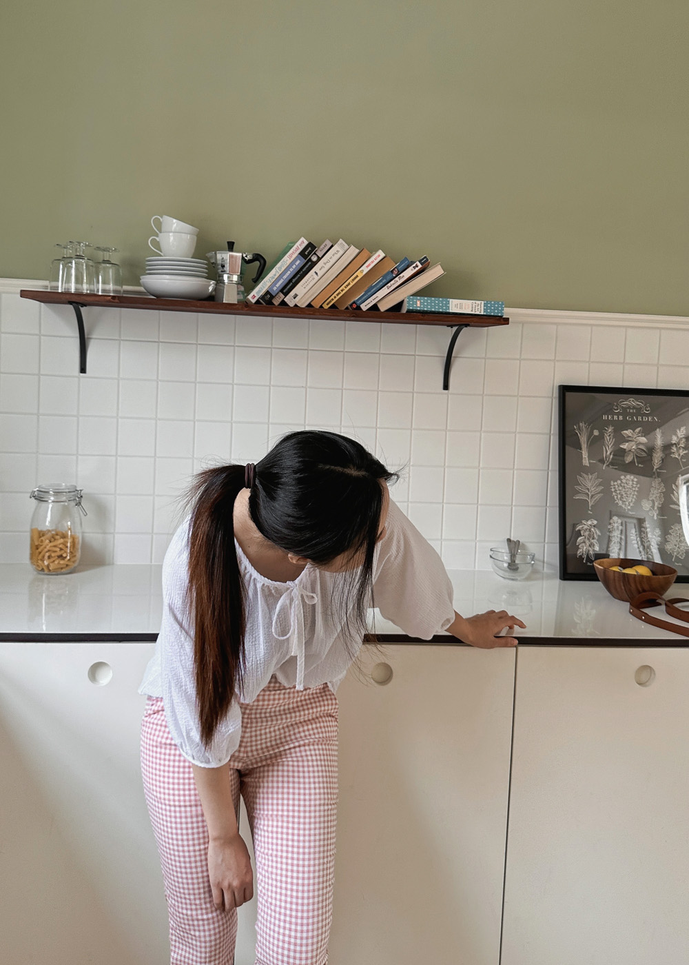 밑단을 넣어 입지 않아도 아방한 느낌으로 러블리하게~