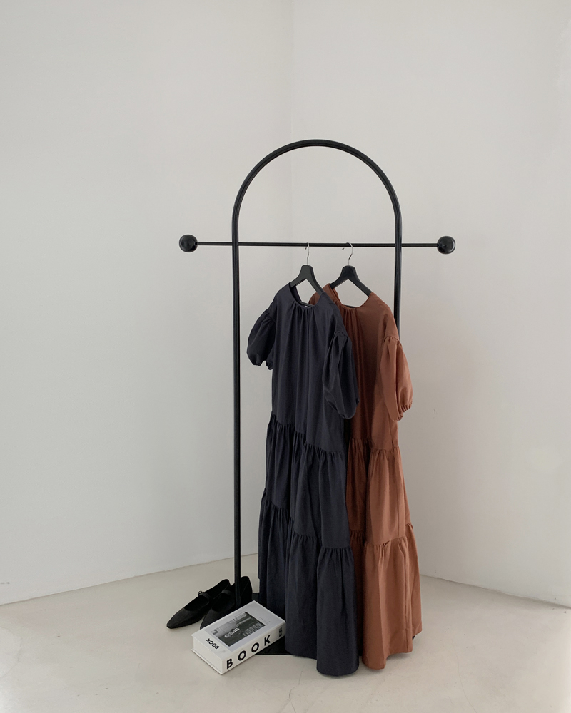 소매퍼프와 밑단 프릴 디자인으로 체형커버도 되고