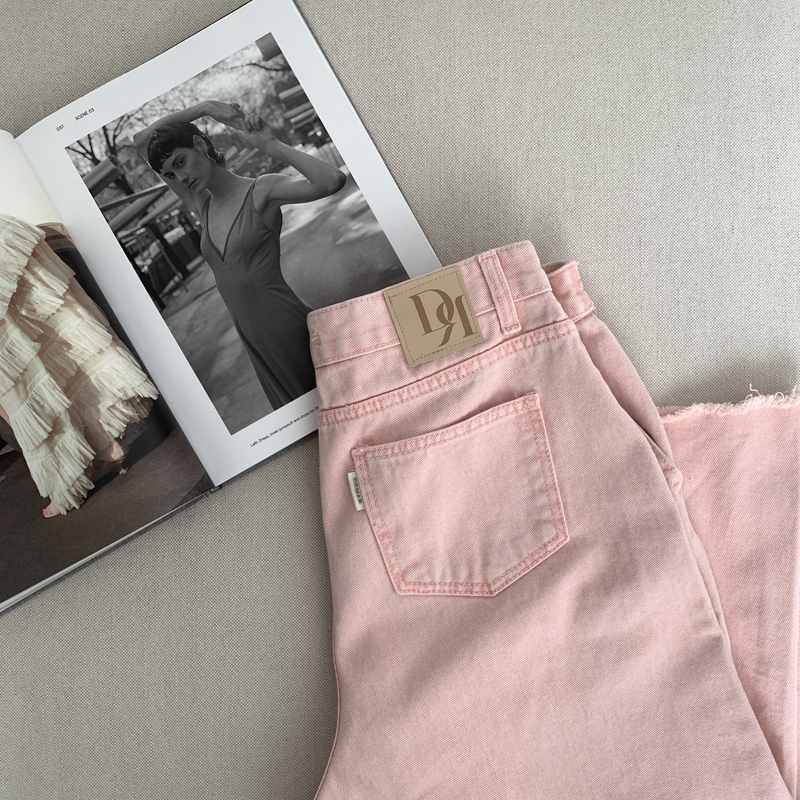베이비한 핑크색감이 매력적인 데님 팬츠입니다.