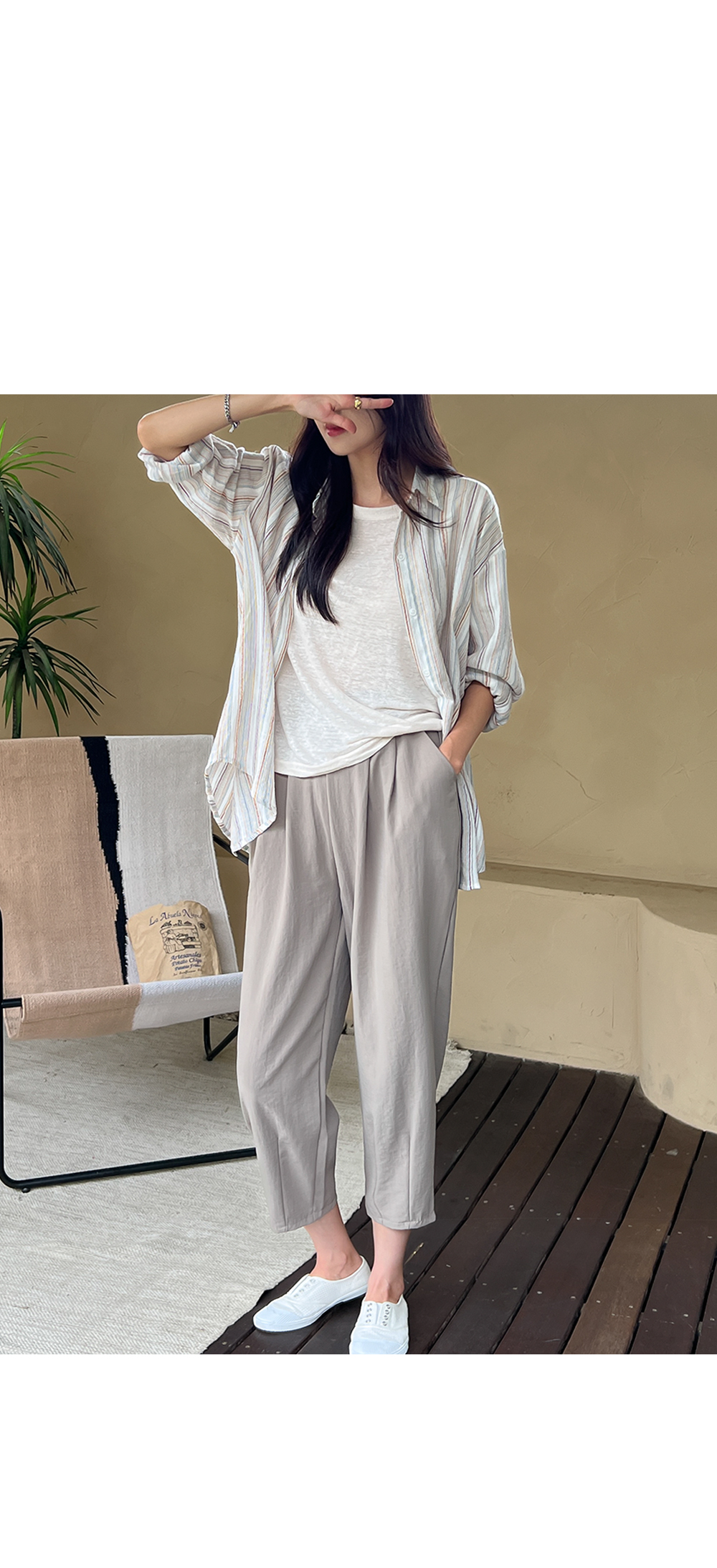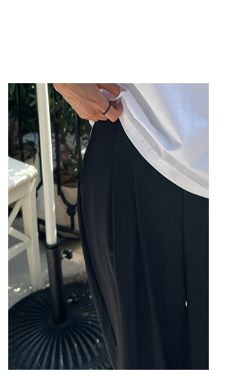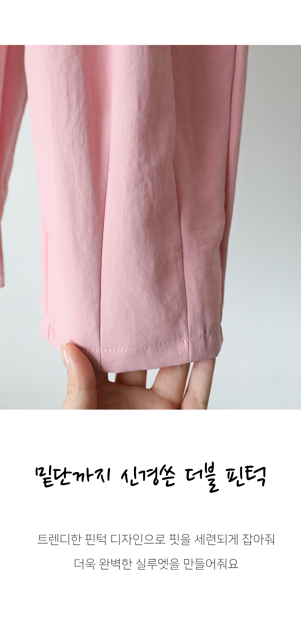 밑단에도 핀턱 디테일을 넣어 핏을 단정하고 깔끔하게 해줍니다.