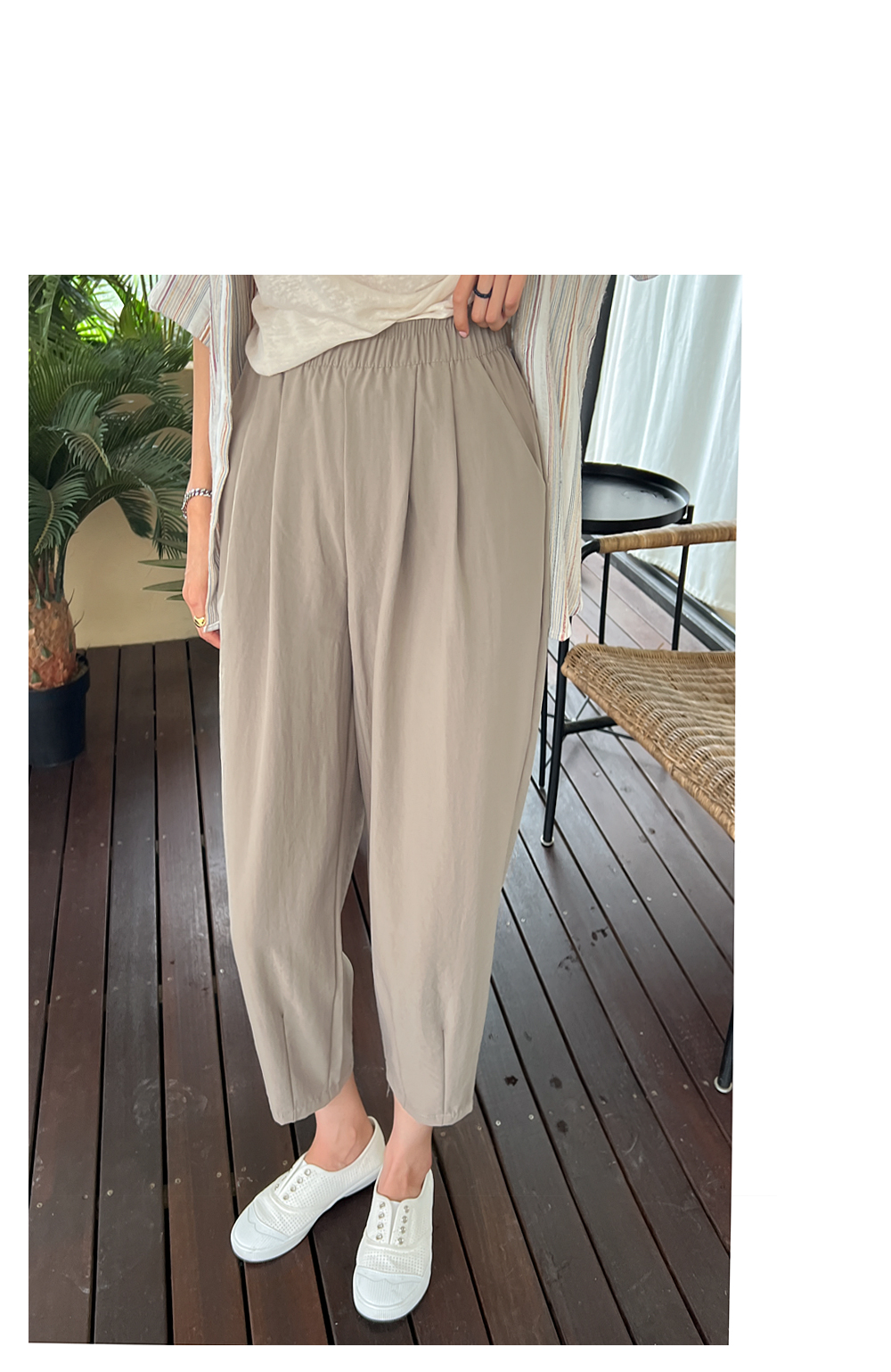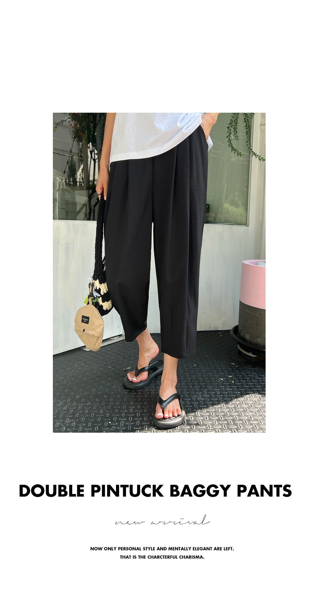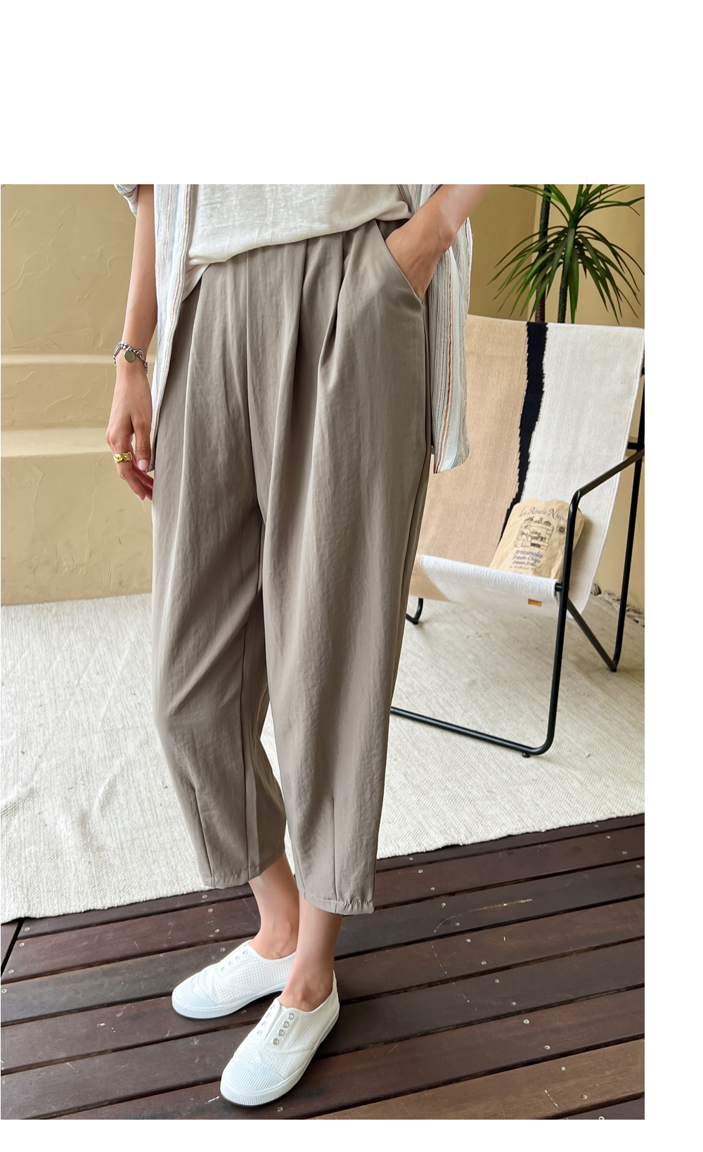 더블핀턱 밴딩 배기 팬츠 #710096
