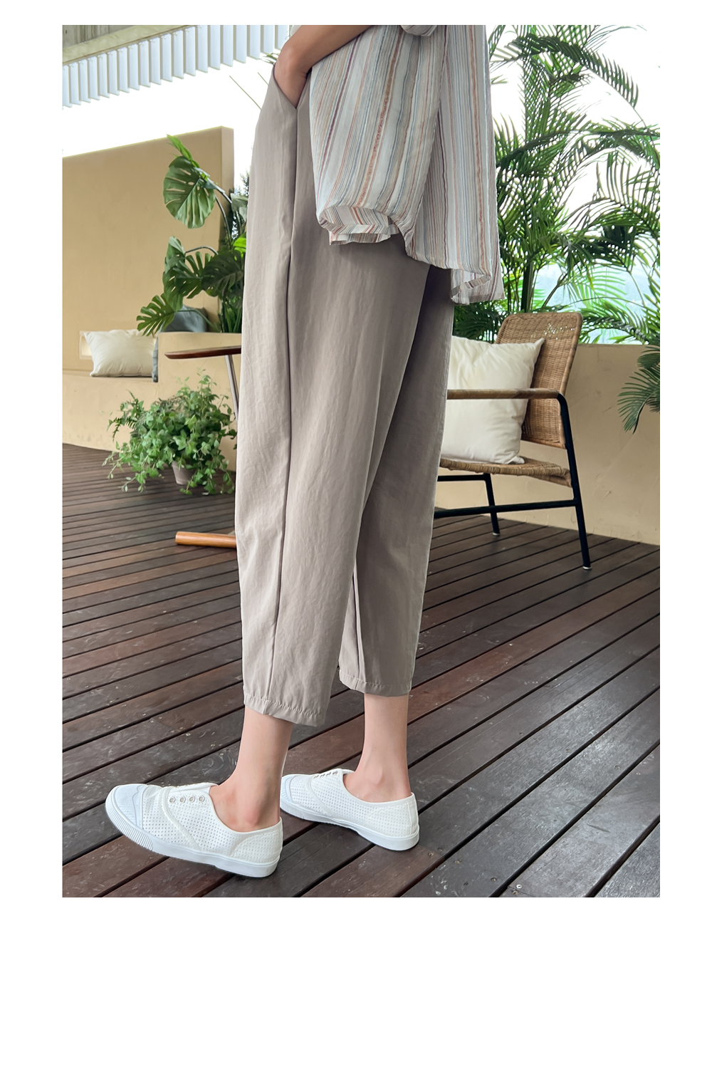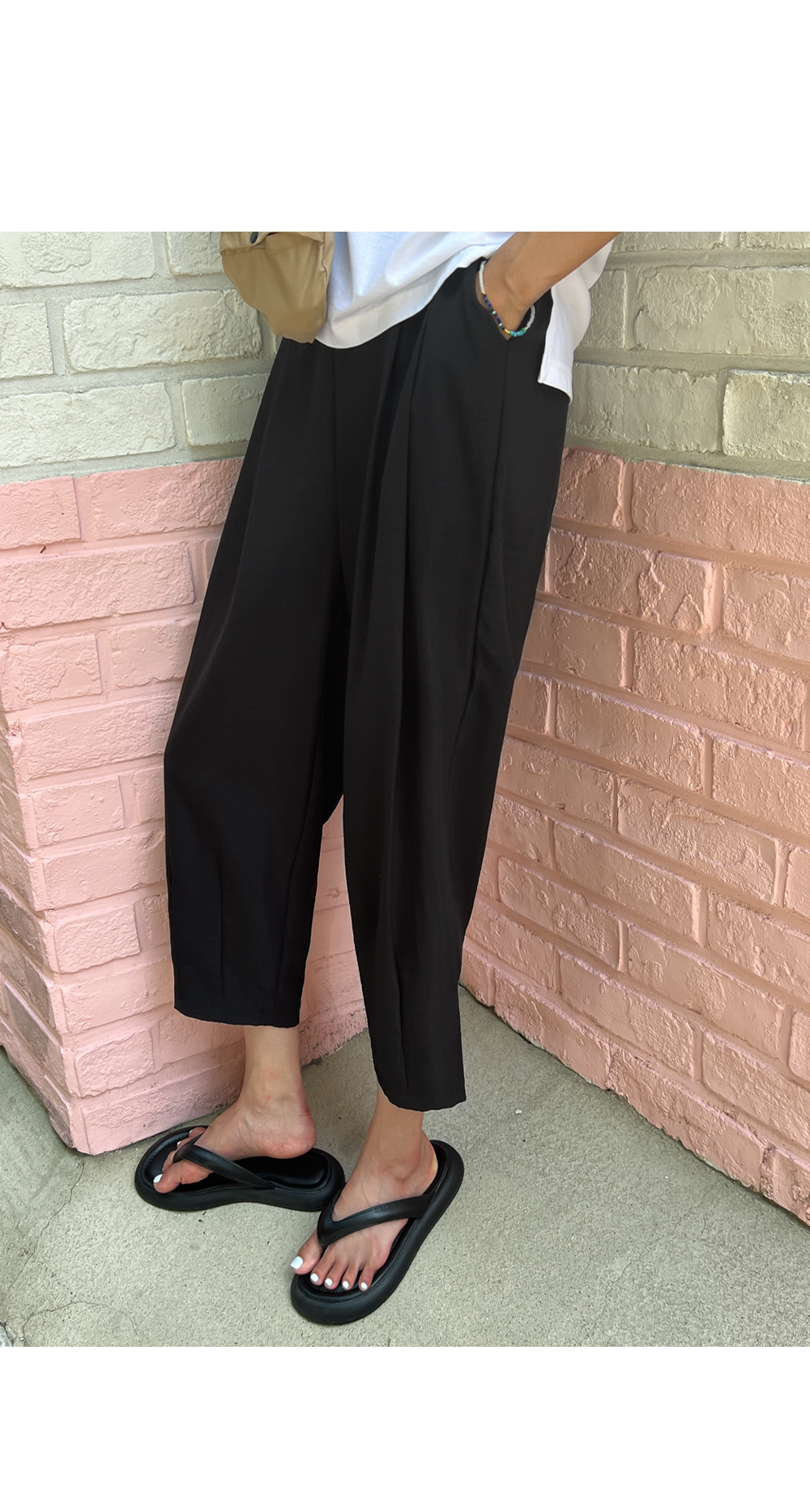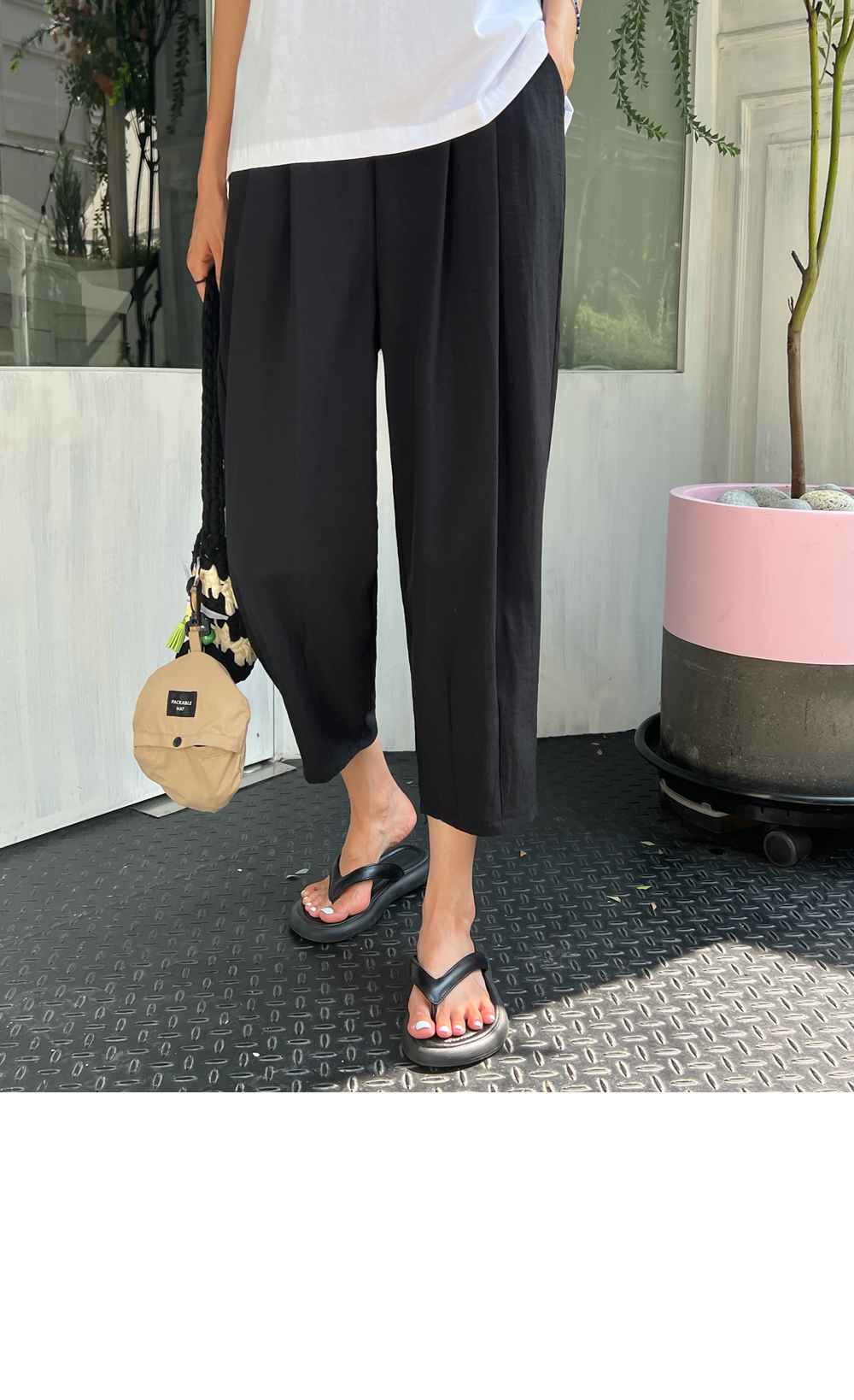더블핀턱 밴딩 배기 팬츠 #710096