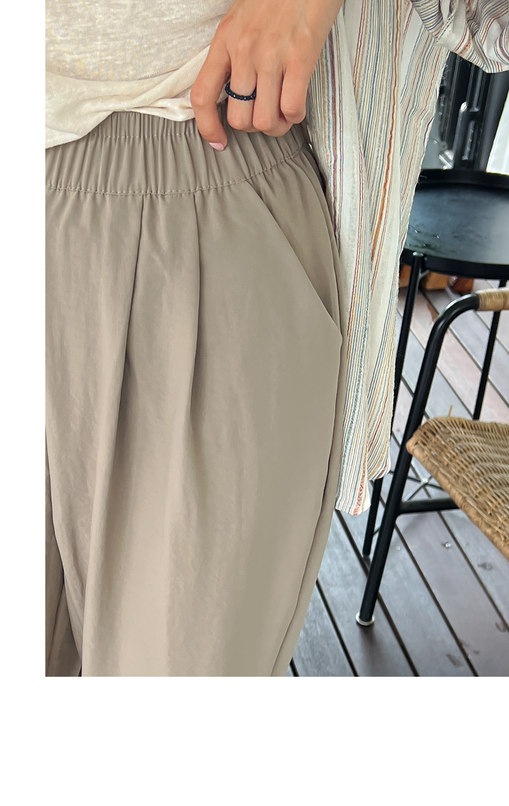 넓게 디자인된 전체 허리밴딩이 조임없고