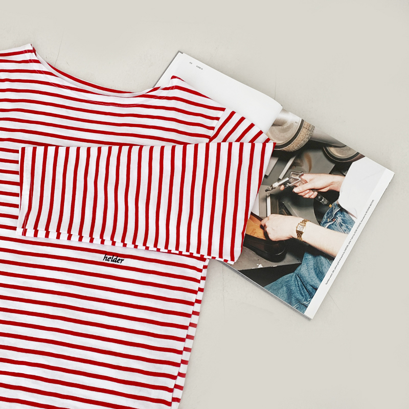 보트넥 스트라이프 티