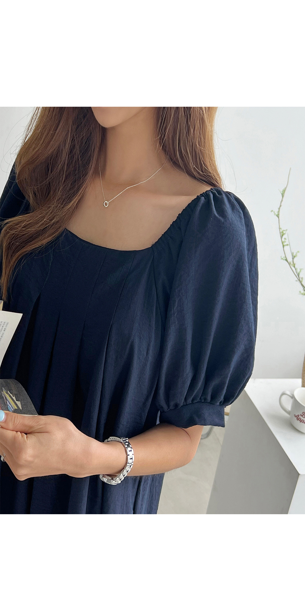 바스트부터 세로 핀턱이 잡혀
