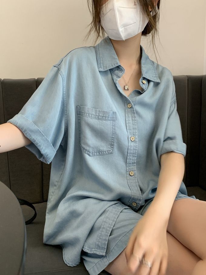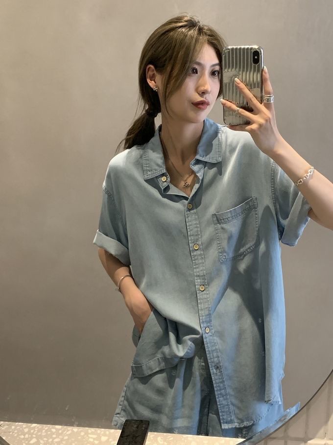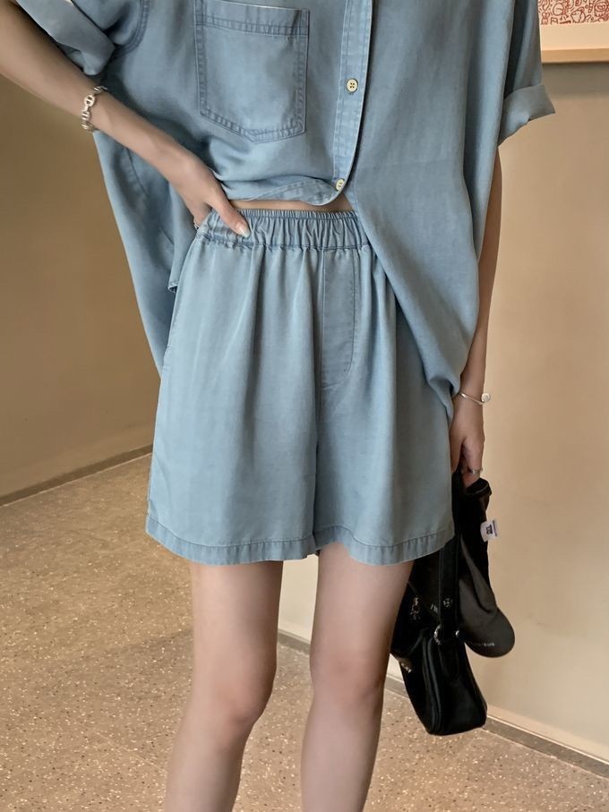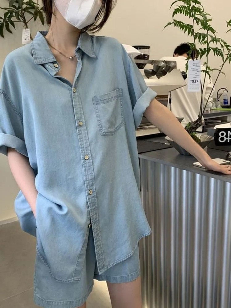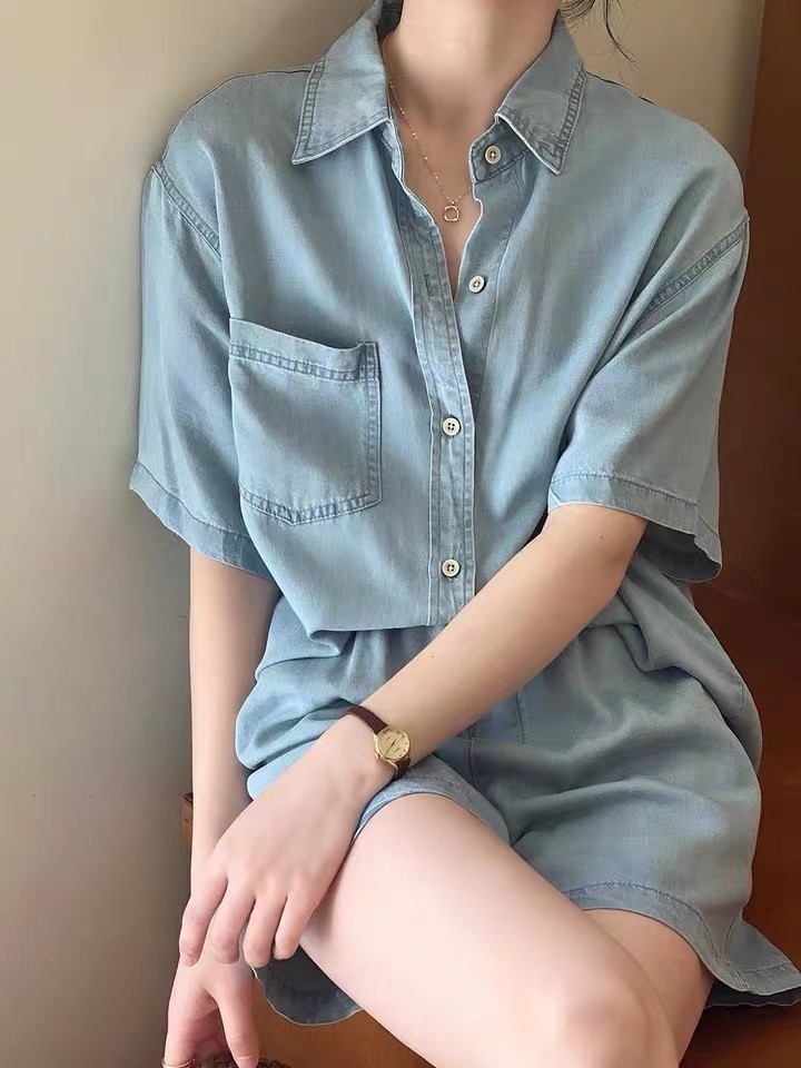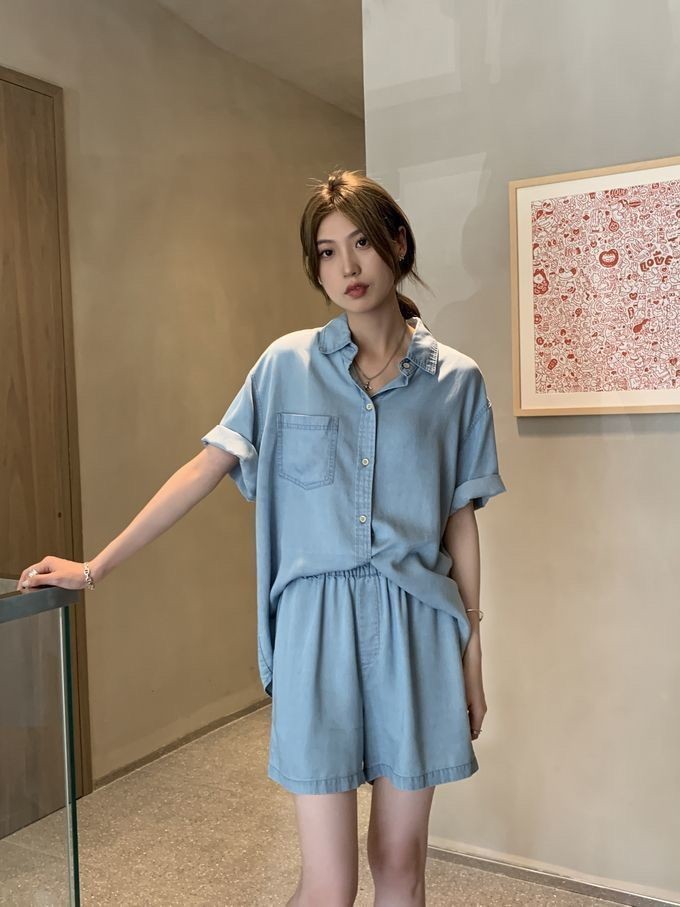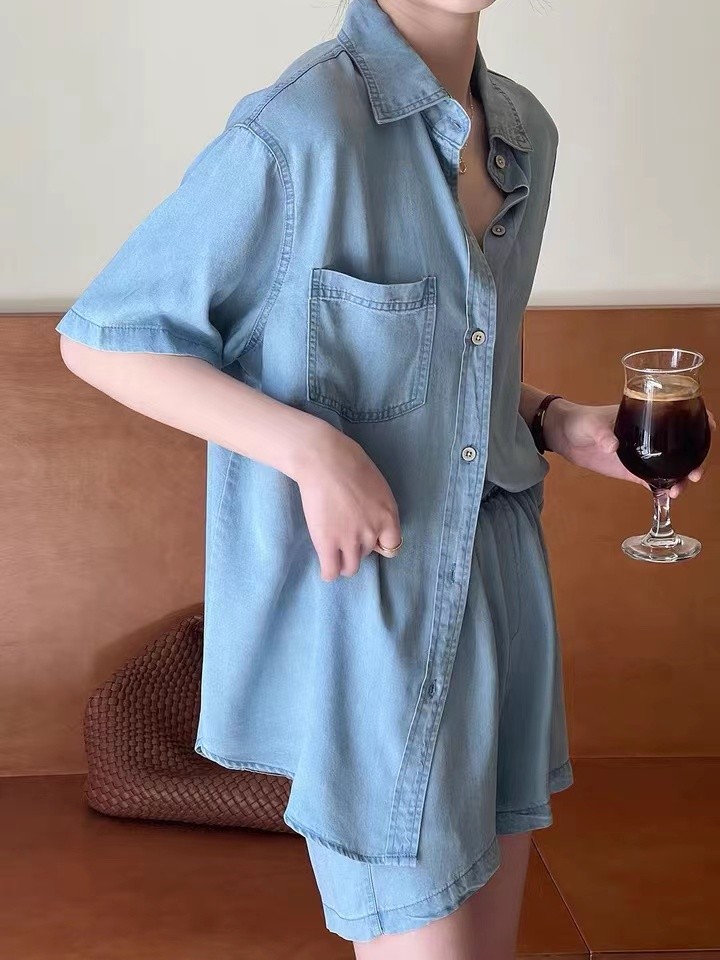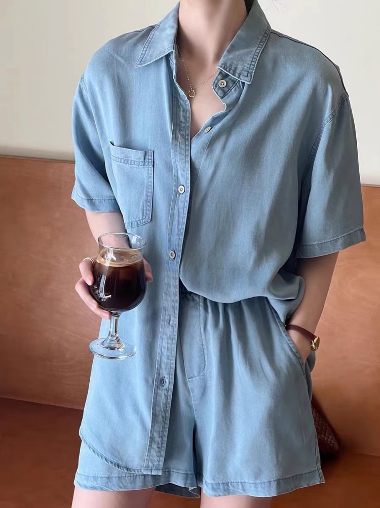 Set - 제러스 스카이블루 셔츠와 반바지 투피스 세트
