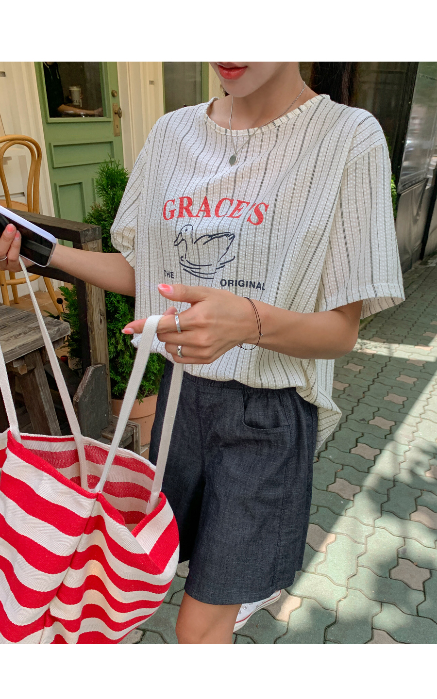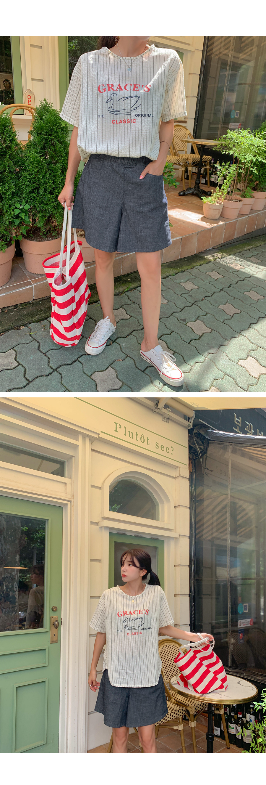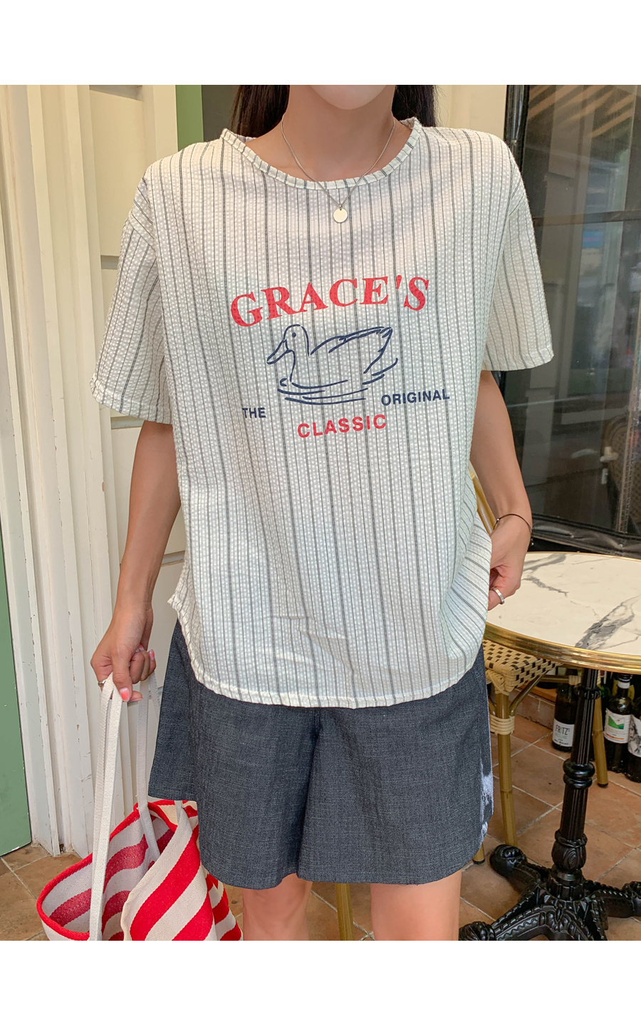 Grace printing stripe blouse