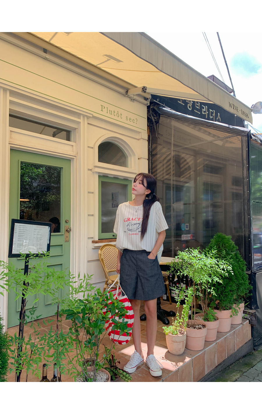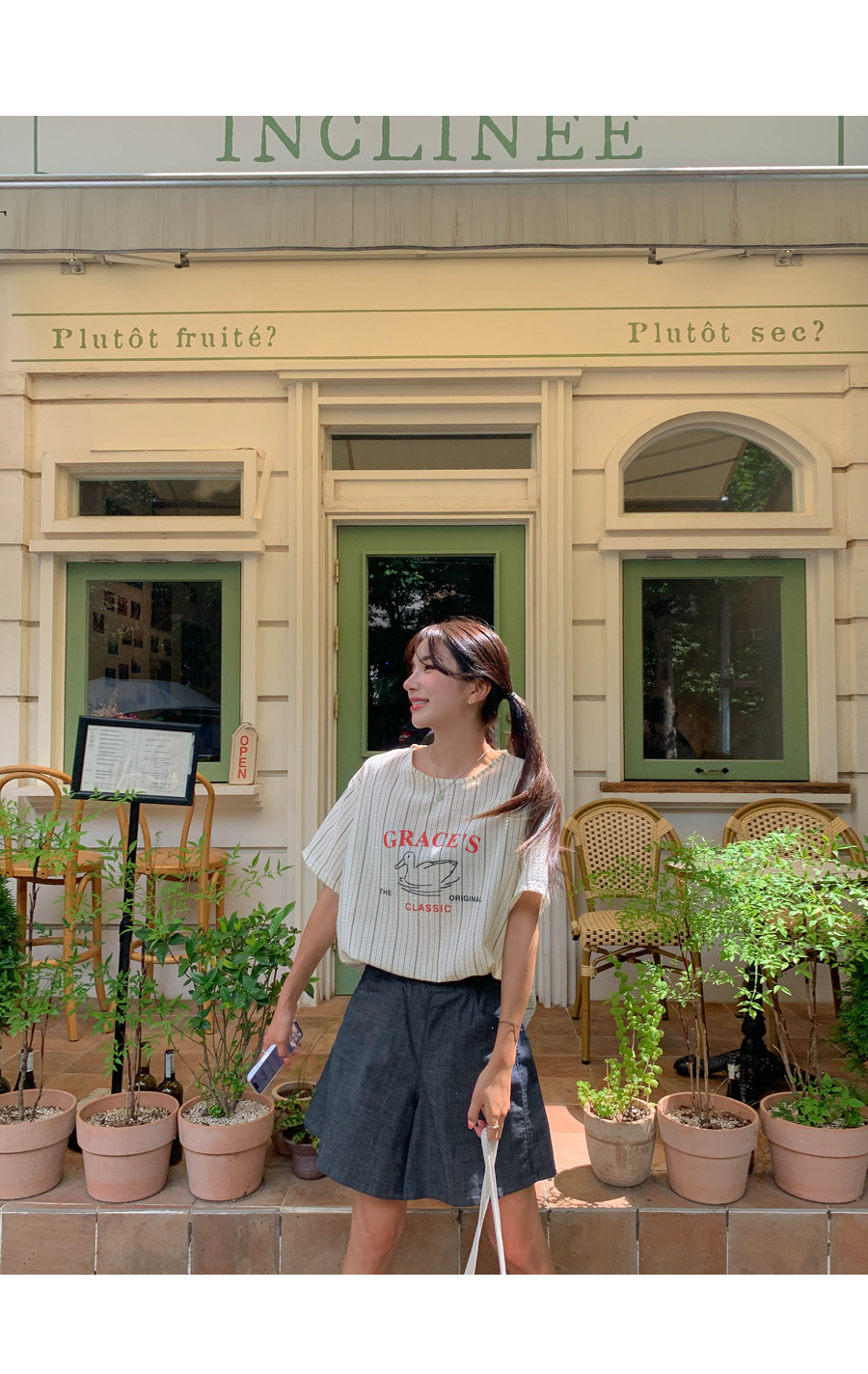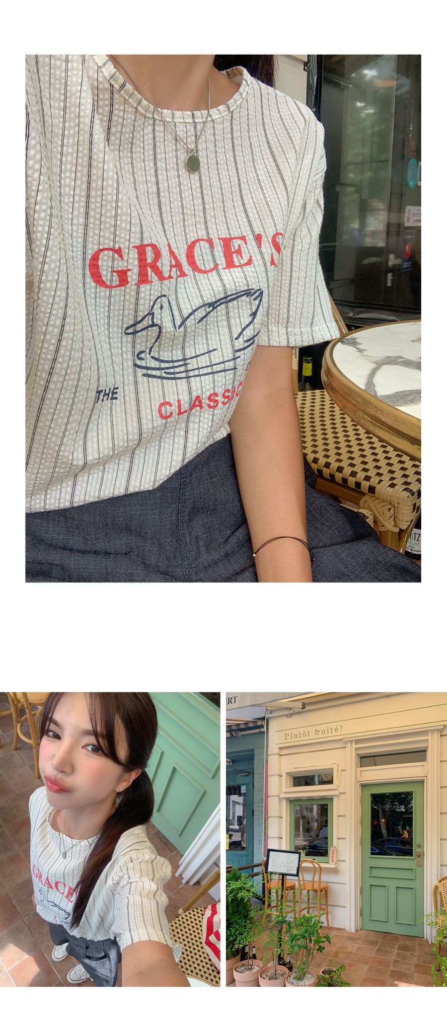 Grace printing stripe blouse