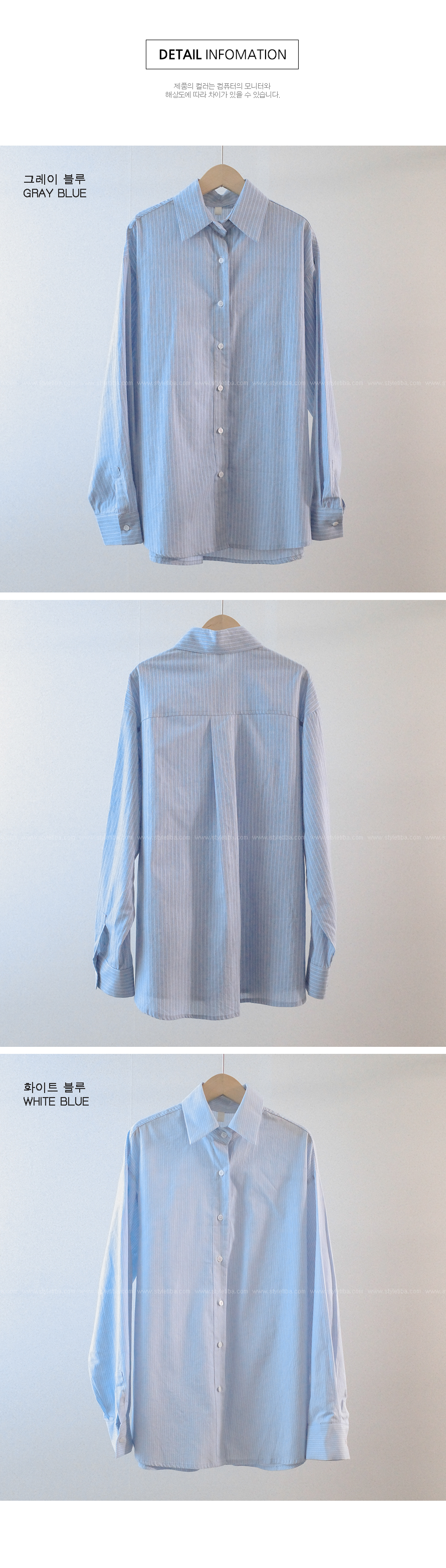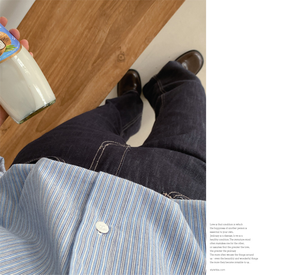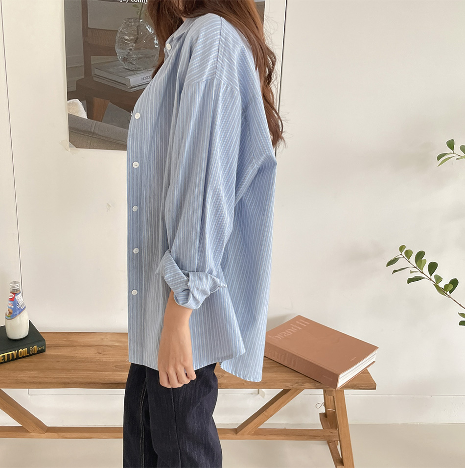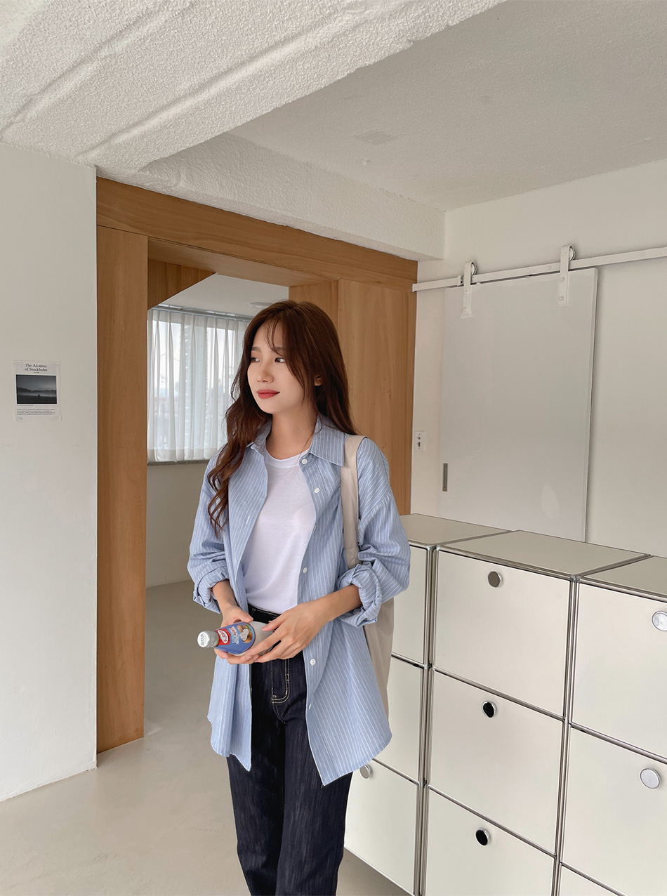 Autumn striped cotton shirt-2color, light mood - good use for daily look! - light and casual stripe pattern - style tee
