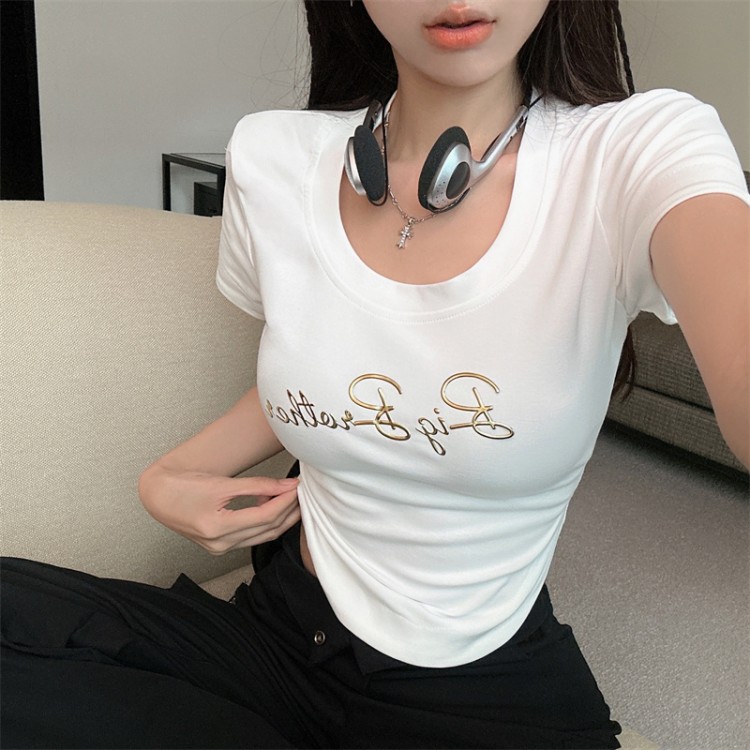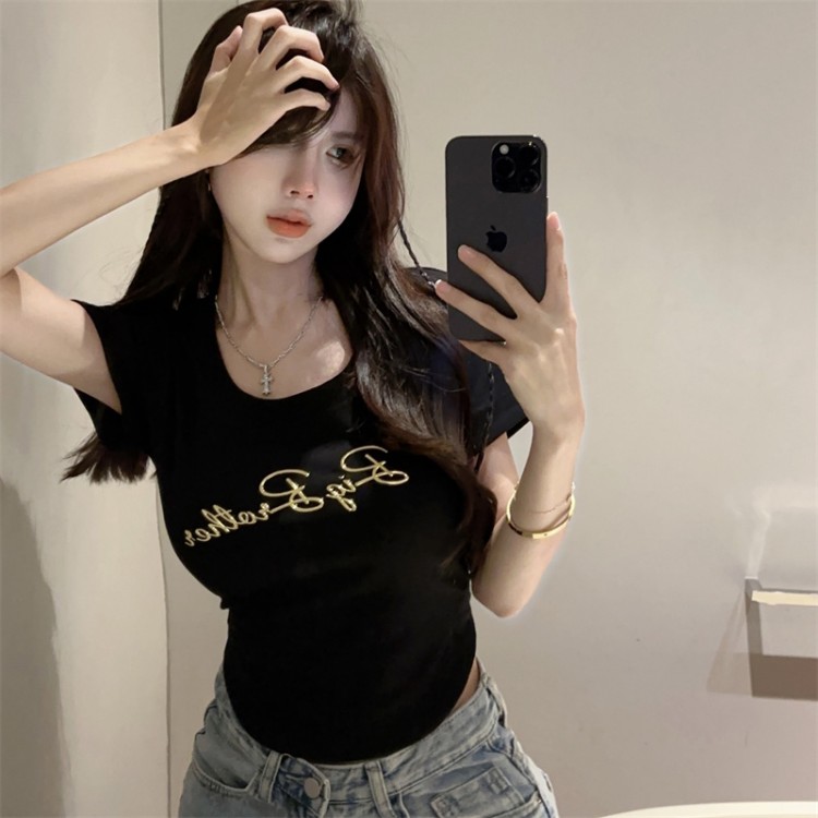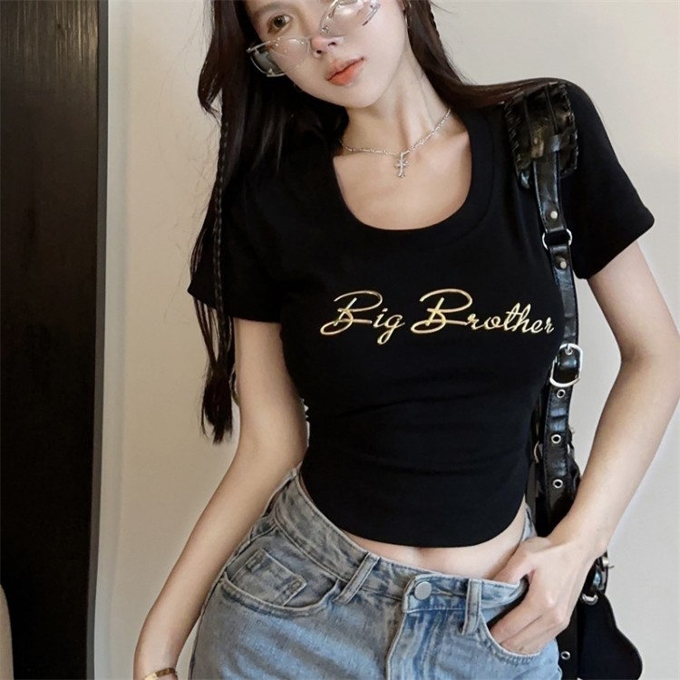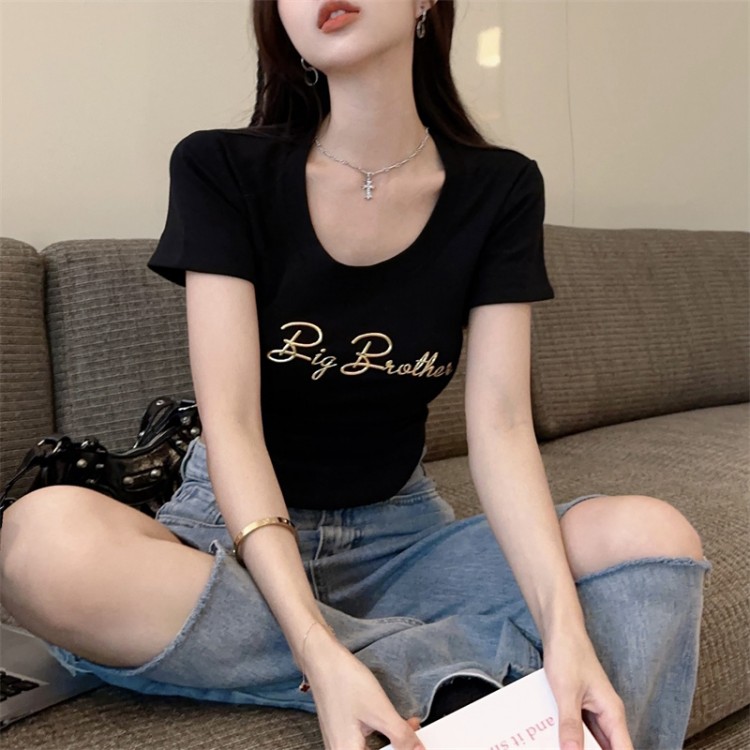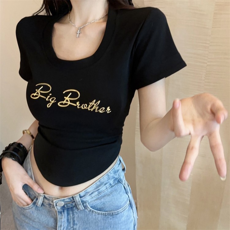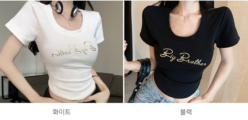 골드레터링 보들보들 스판 셔링 티셔츠탑
