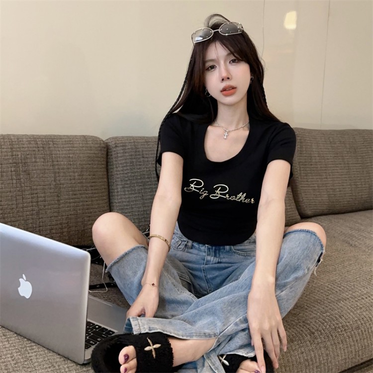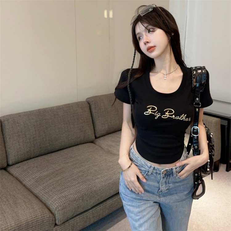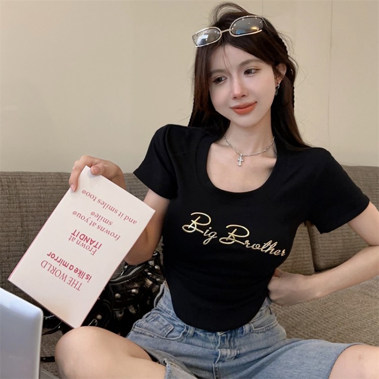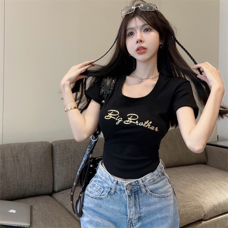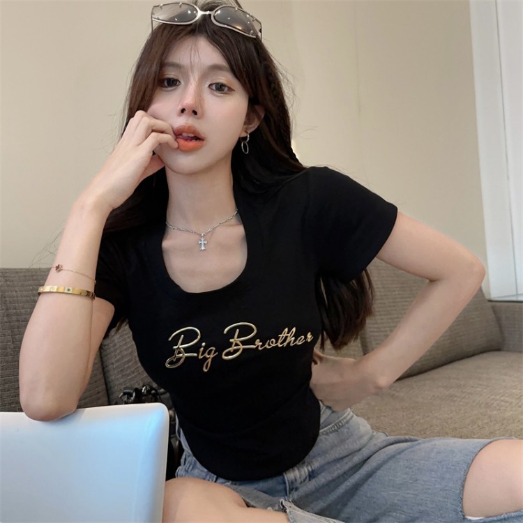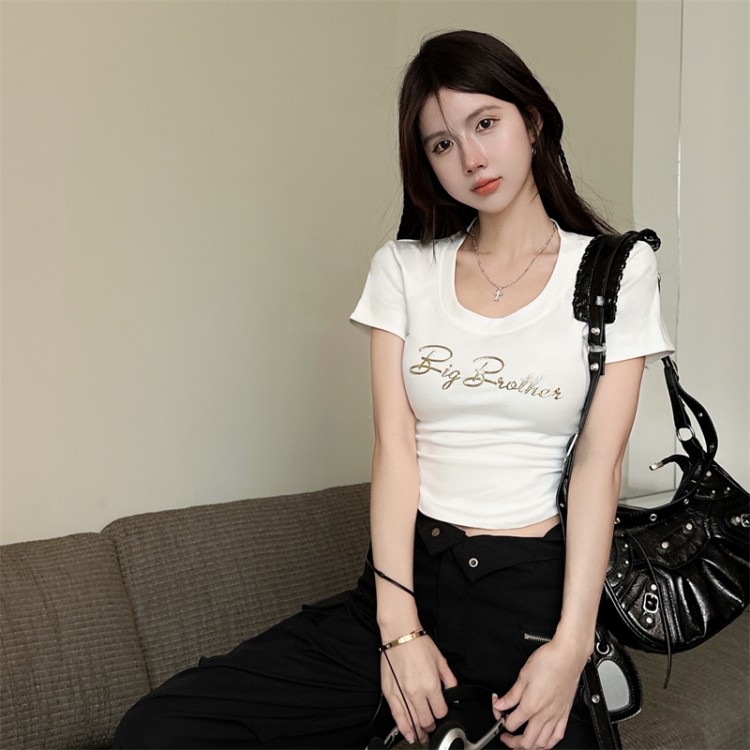 골드레터링 보들보들 스판 셔링 티셔츠탑