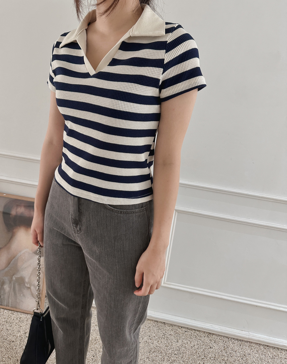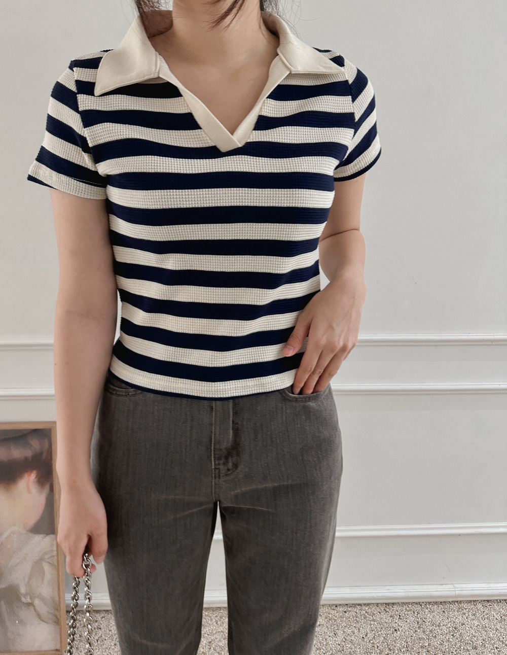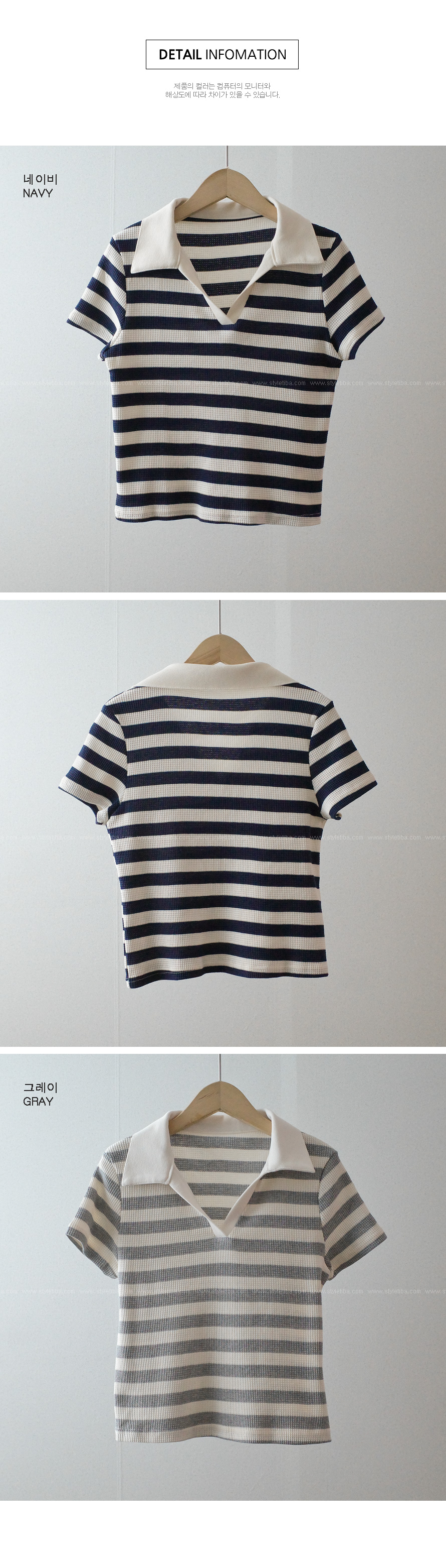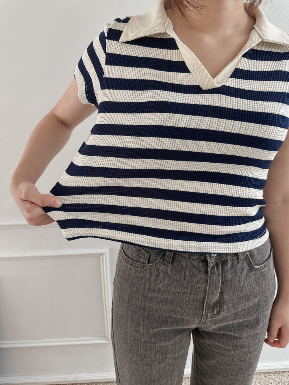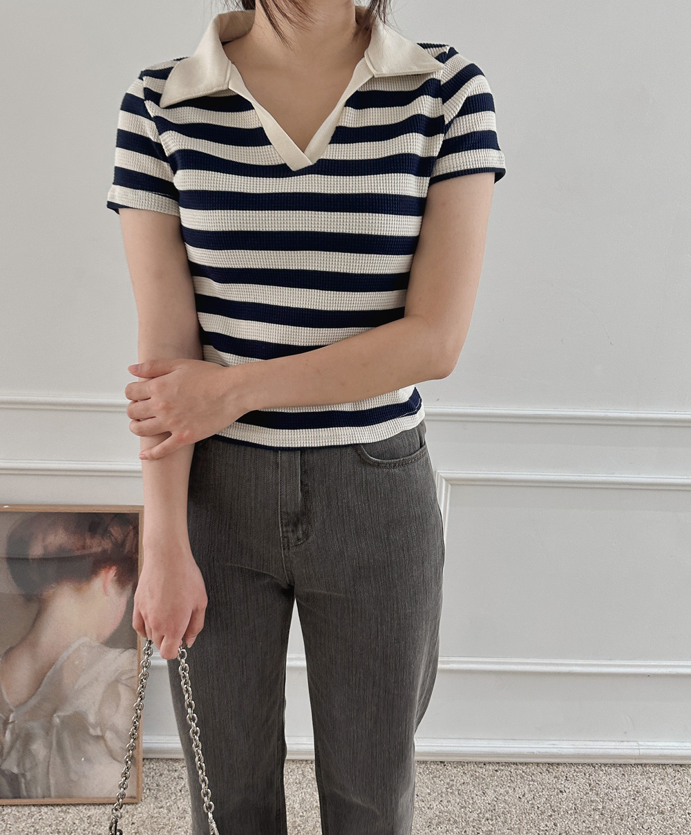스트라이프 와플피케 카라티-2color - 스타일티바