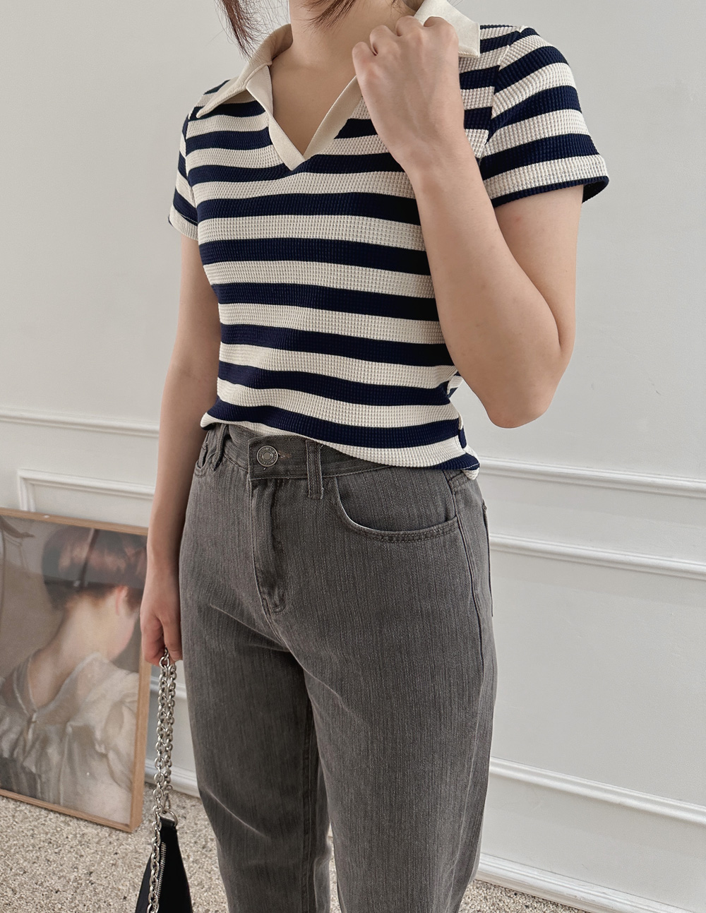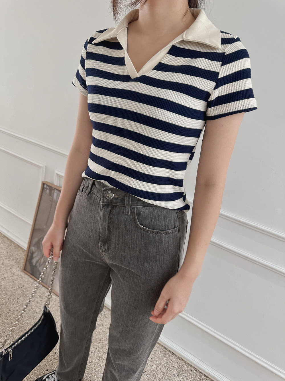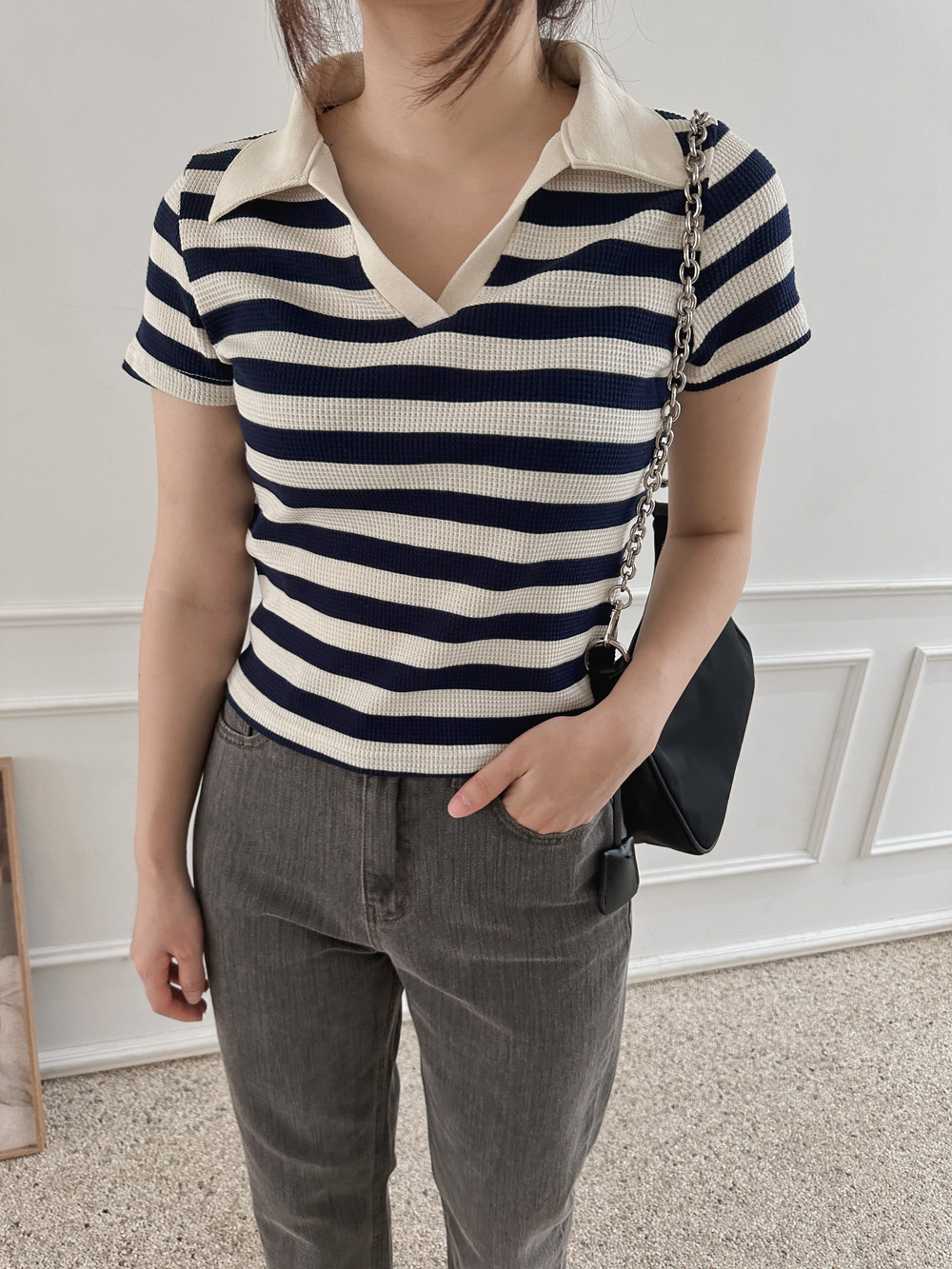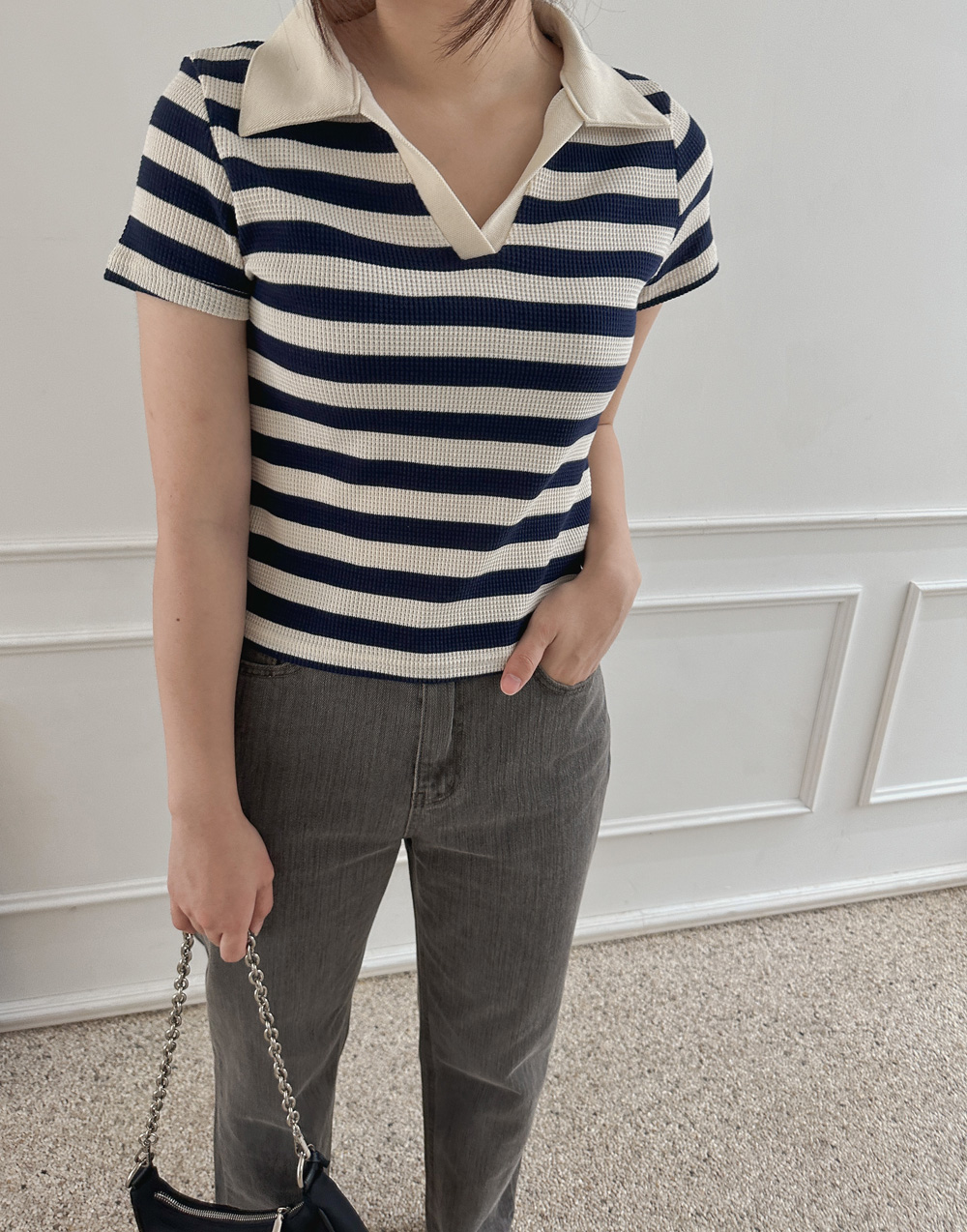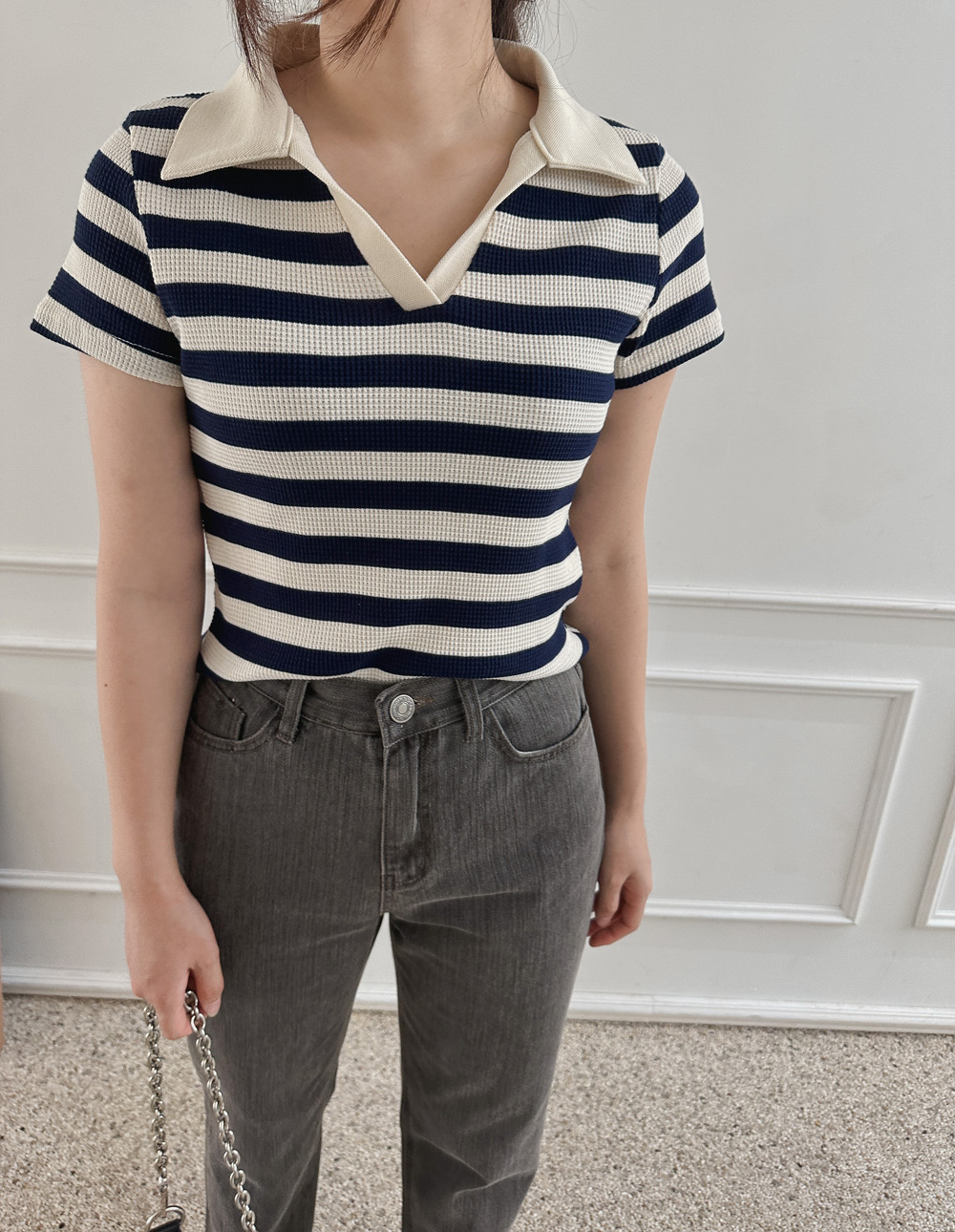 스트라이프 와플피케 카라티-2color - 스타일티바
