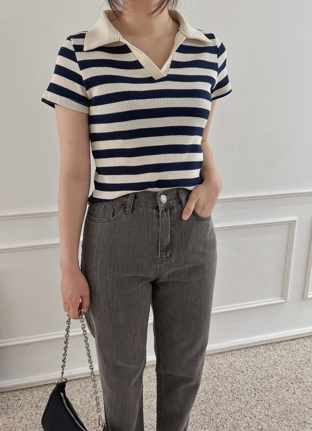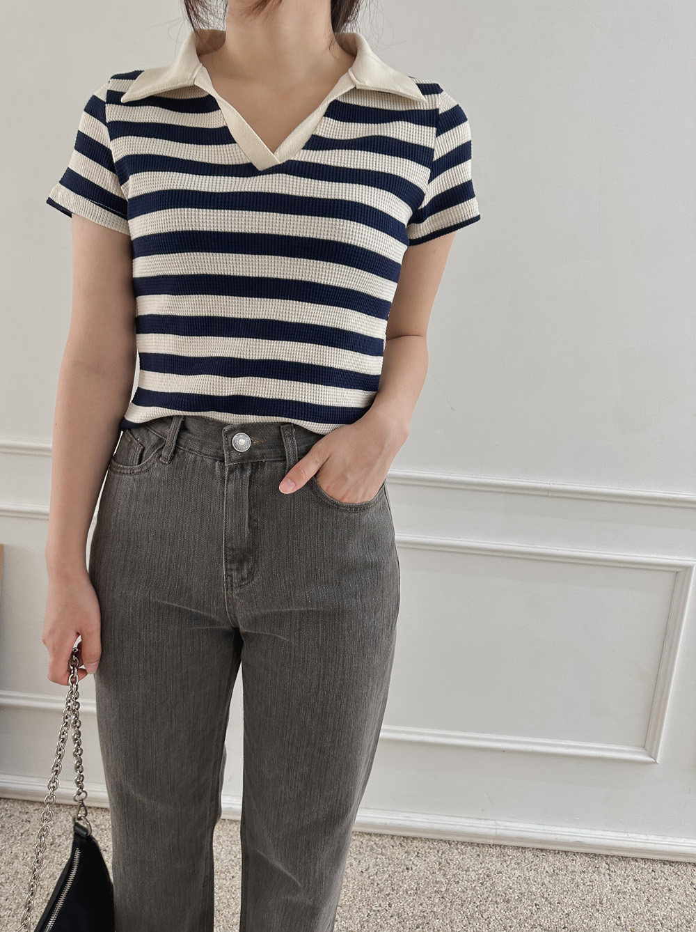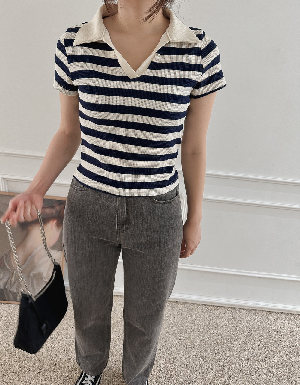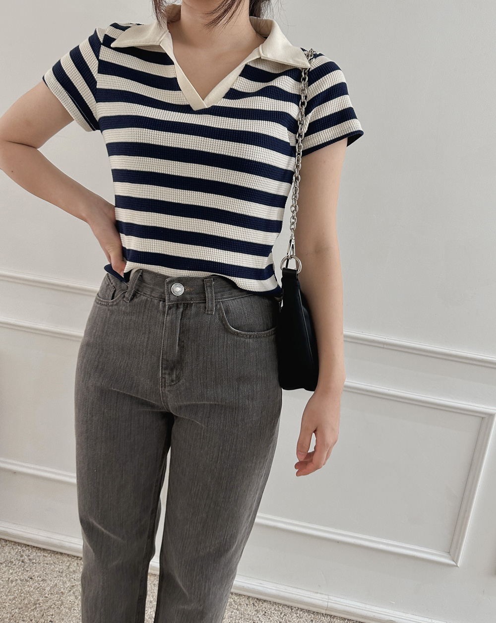 스트라이프 와플피케 카라티-2color - 스타일티바