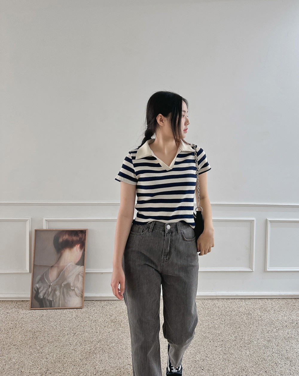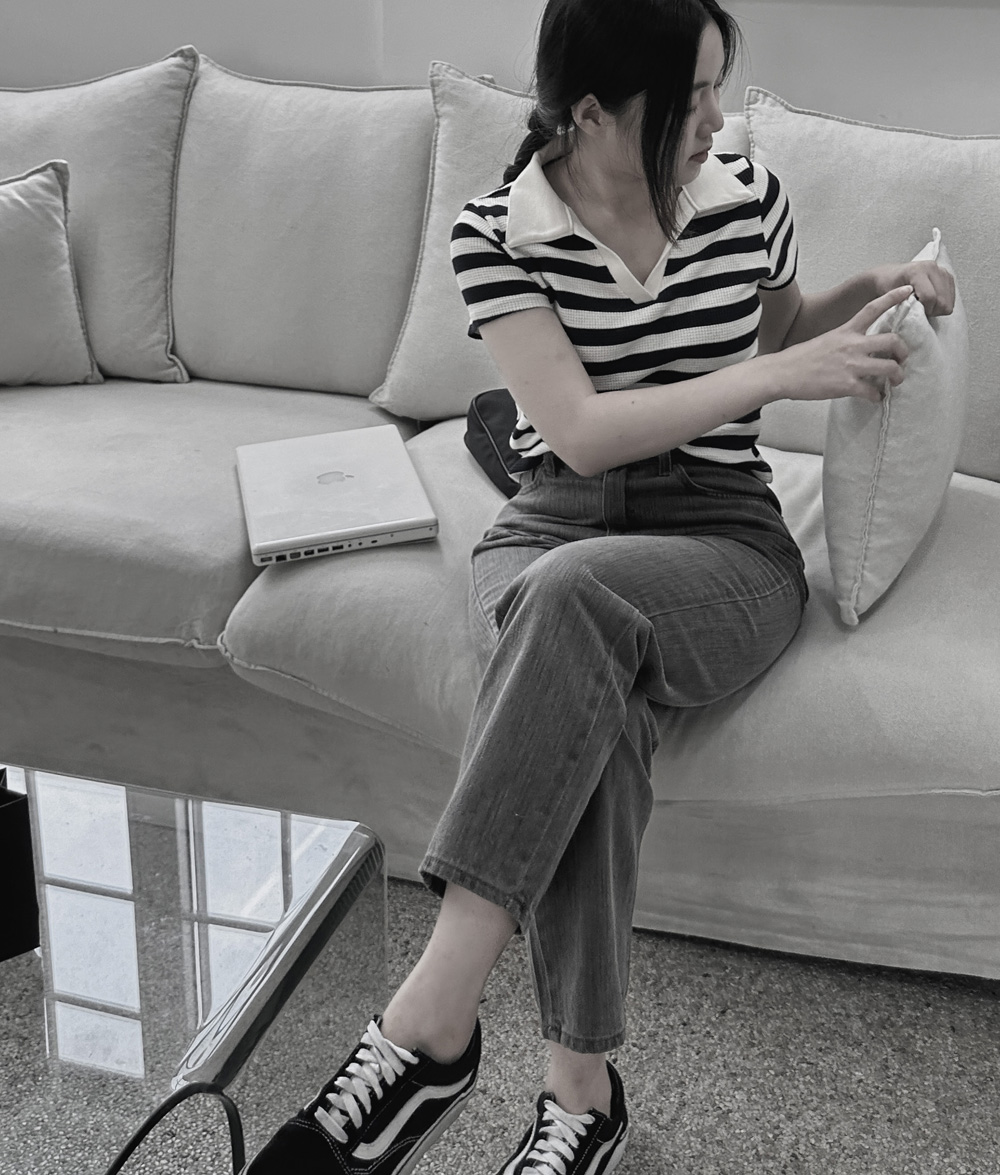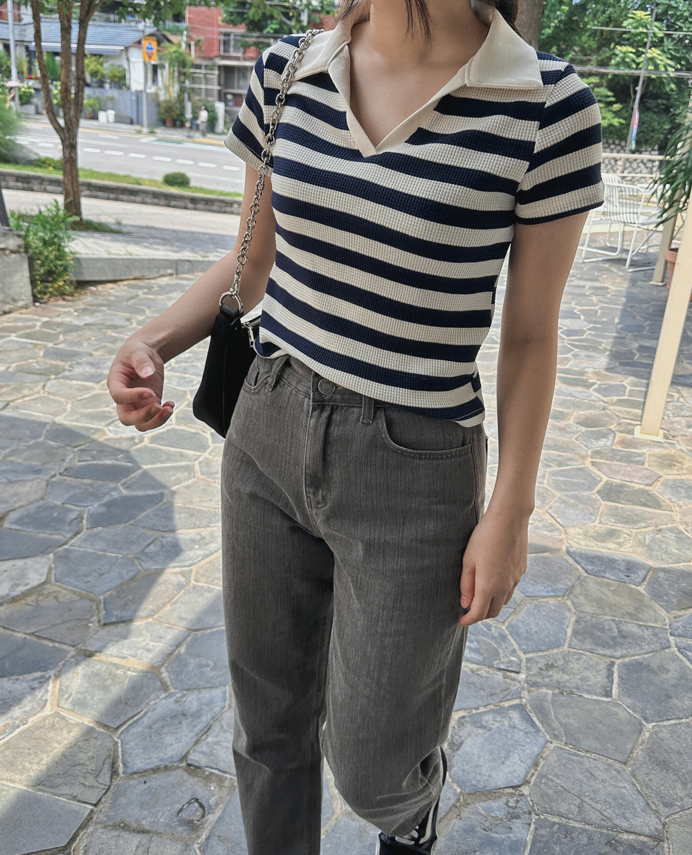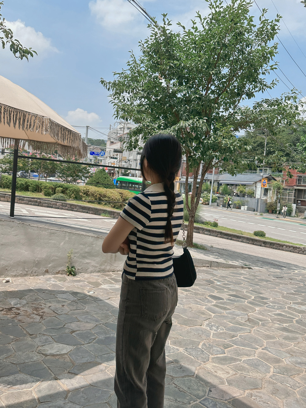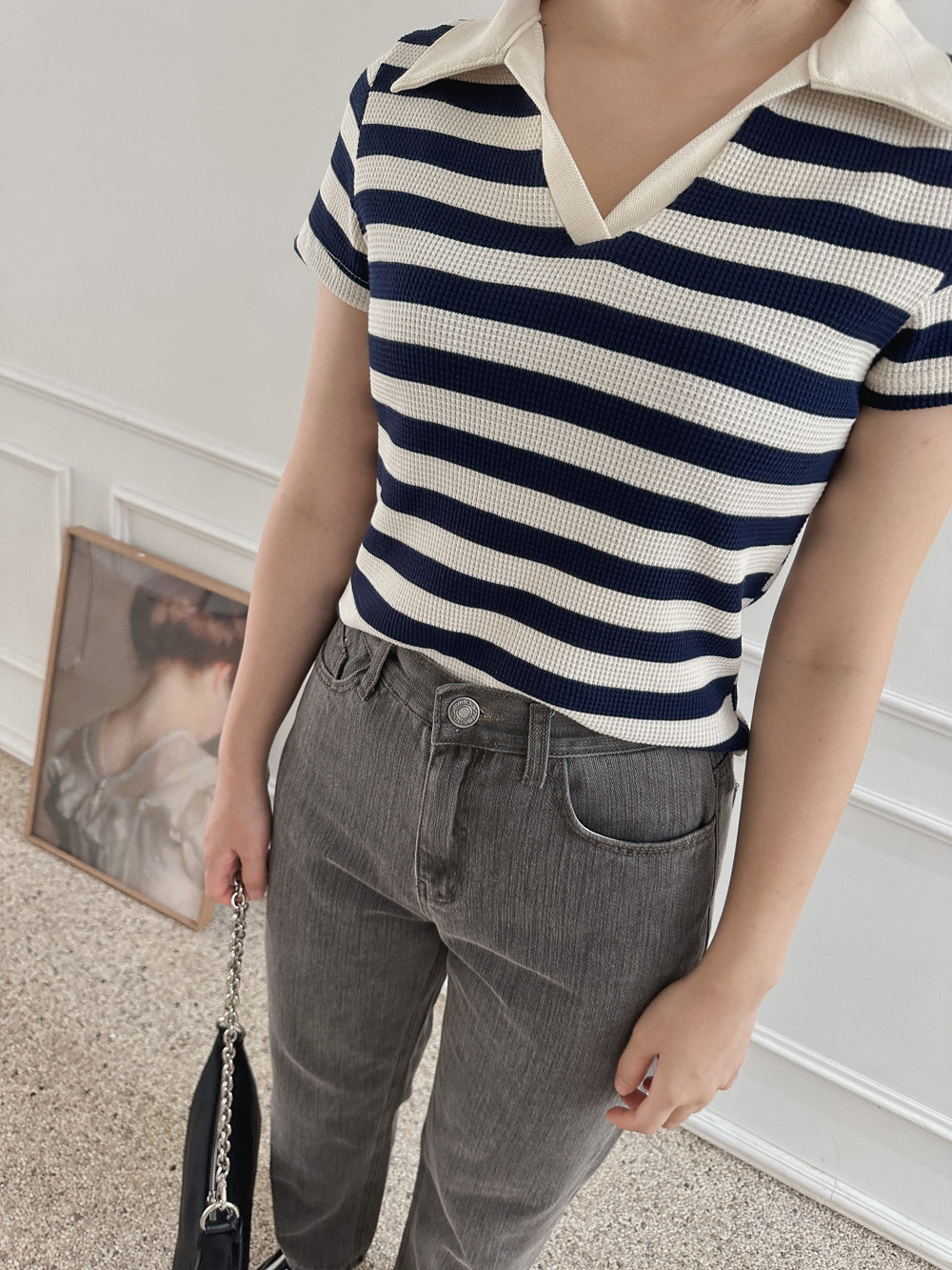 스트라이프 와플피케 카라티-2color - 스타일티바