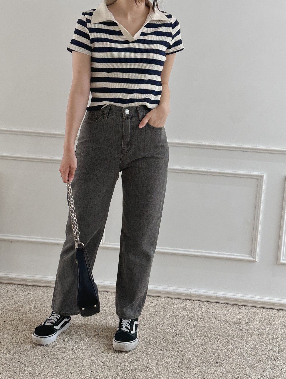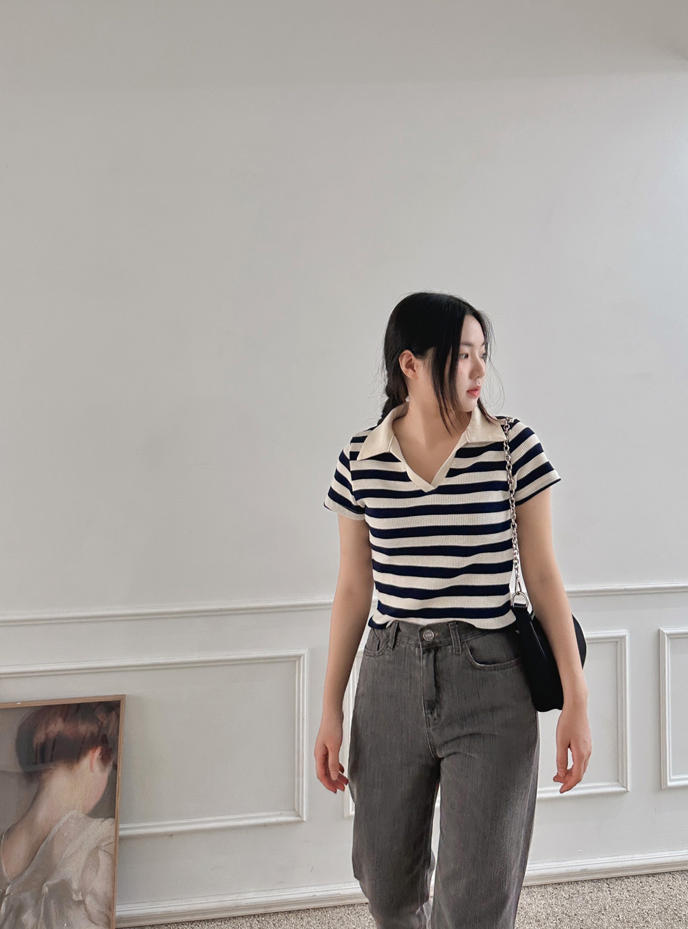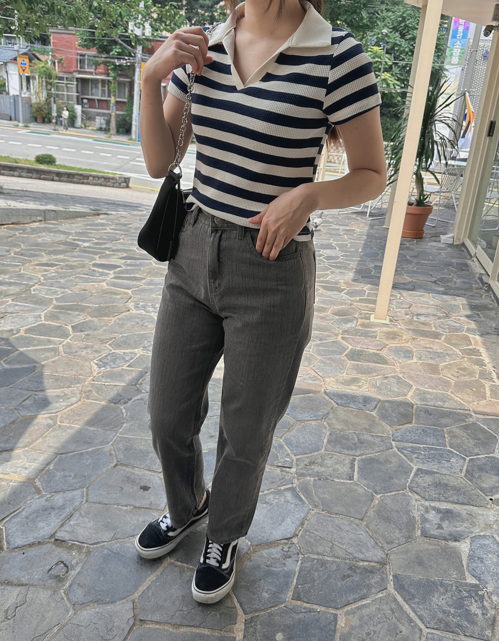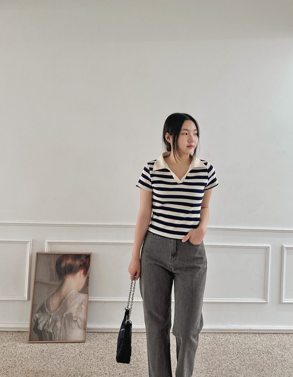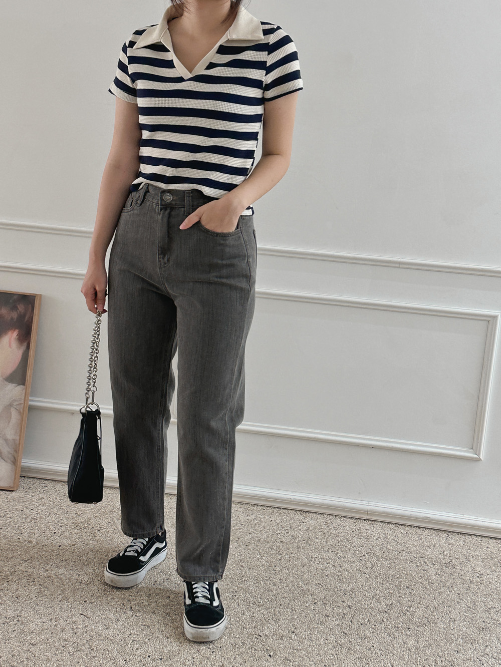 스트라이프 와플피케 카라티-2color - 스타일티바