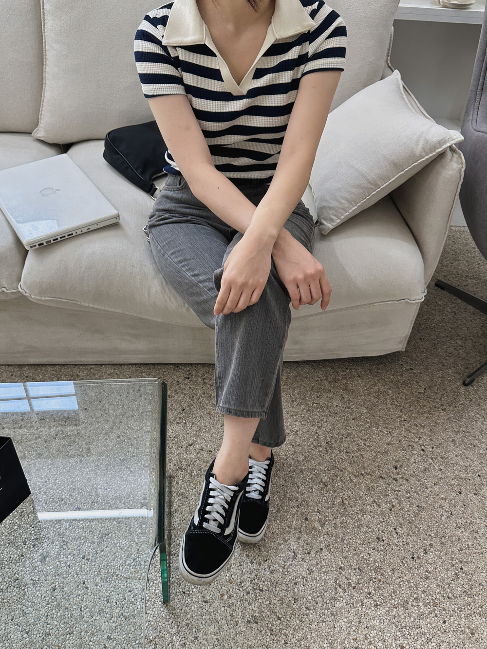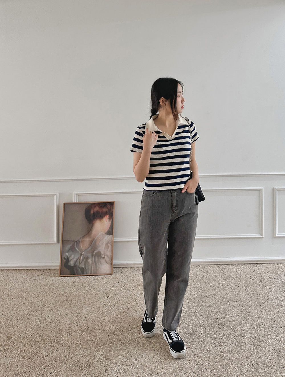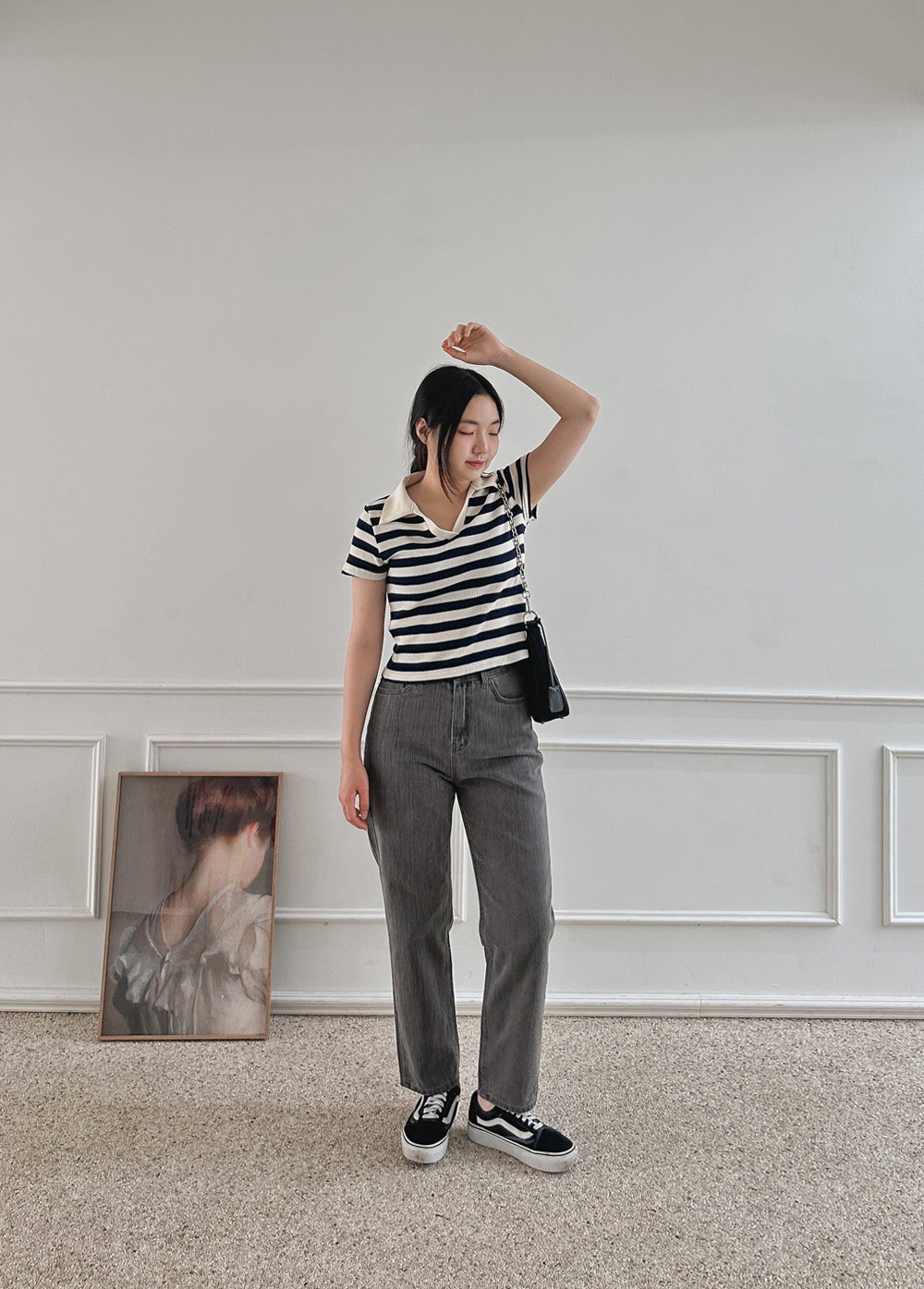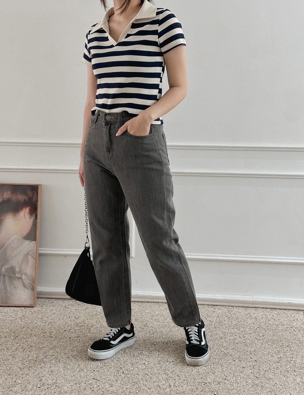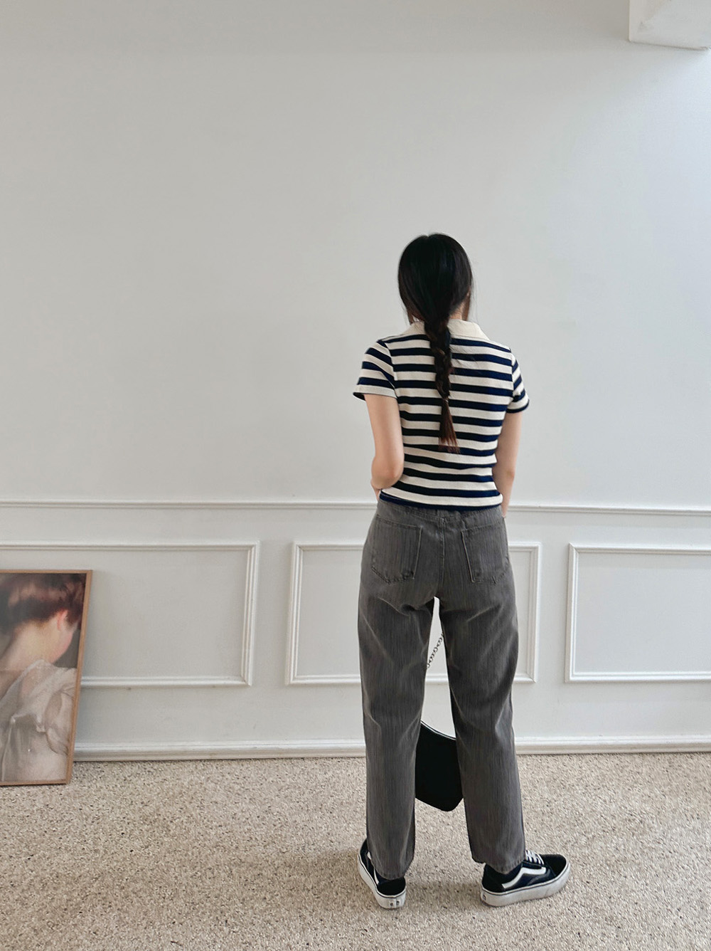 스트라이프 와플피케 카라티-2color - 스타일티바