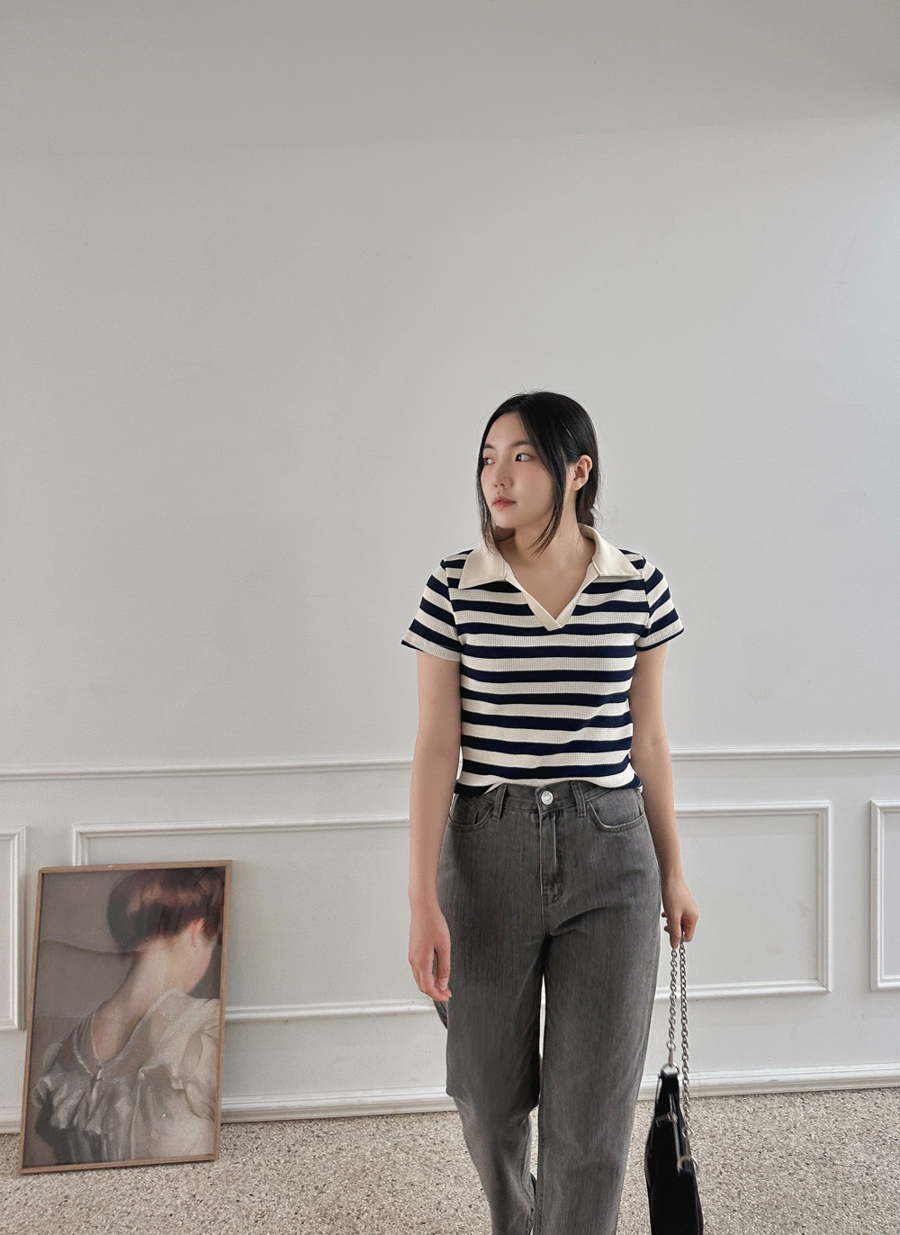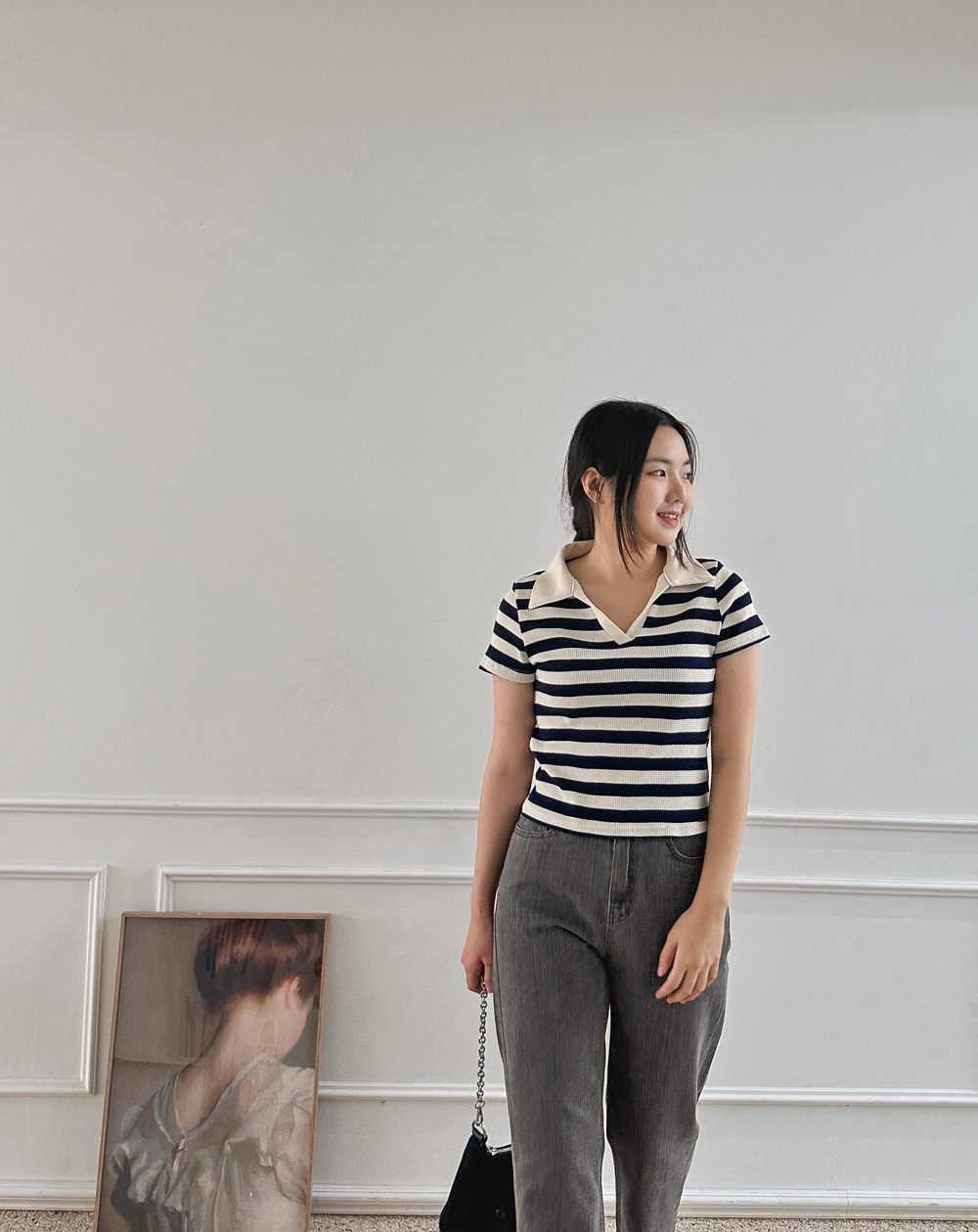 카라 넥은 자칫 목선이 답답해 보일 수 있지만