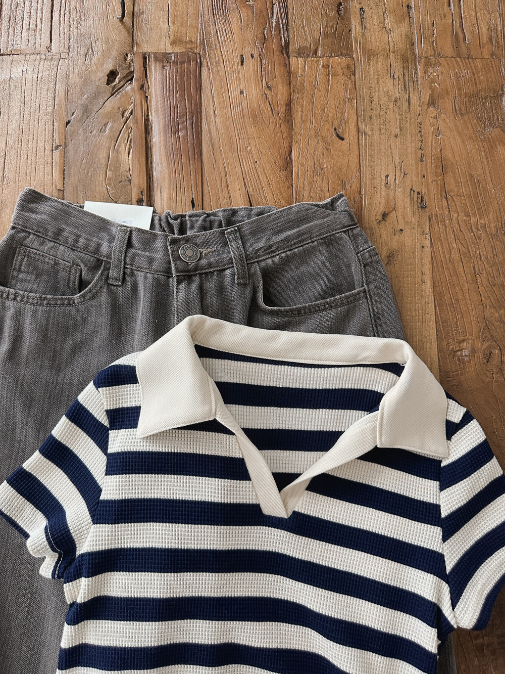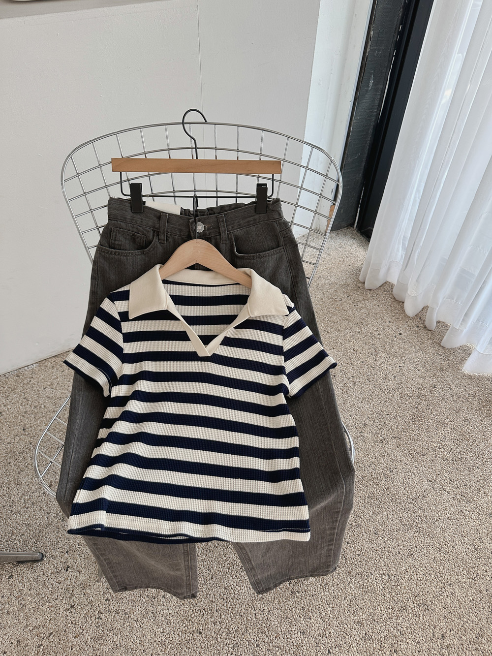 #스트라이프 와플피케 카라티