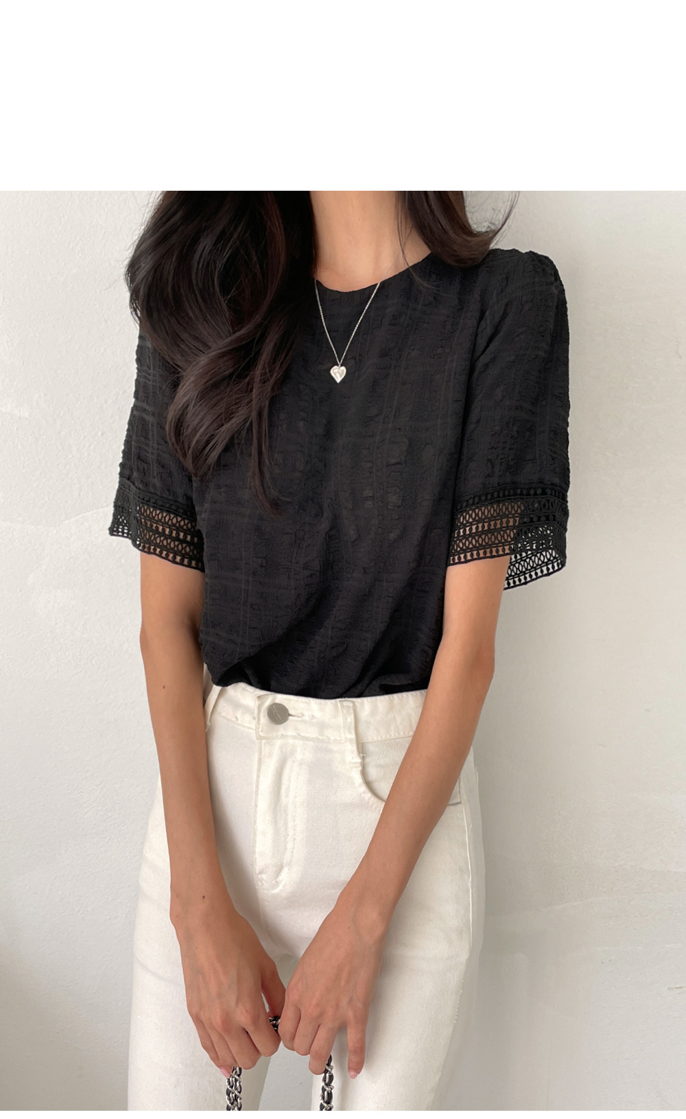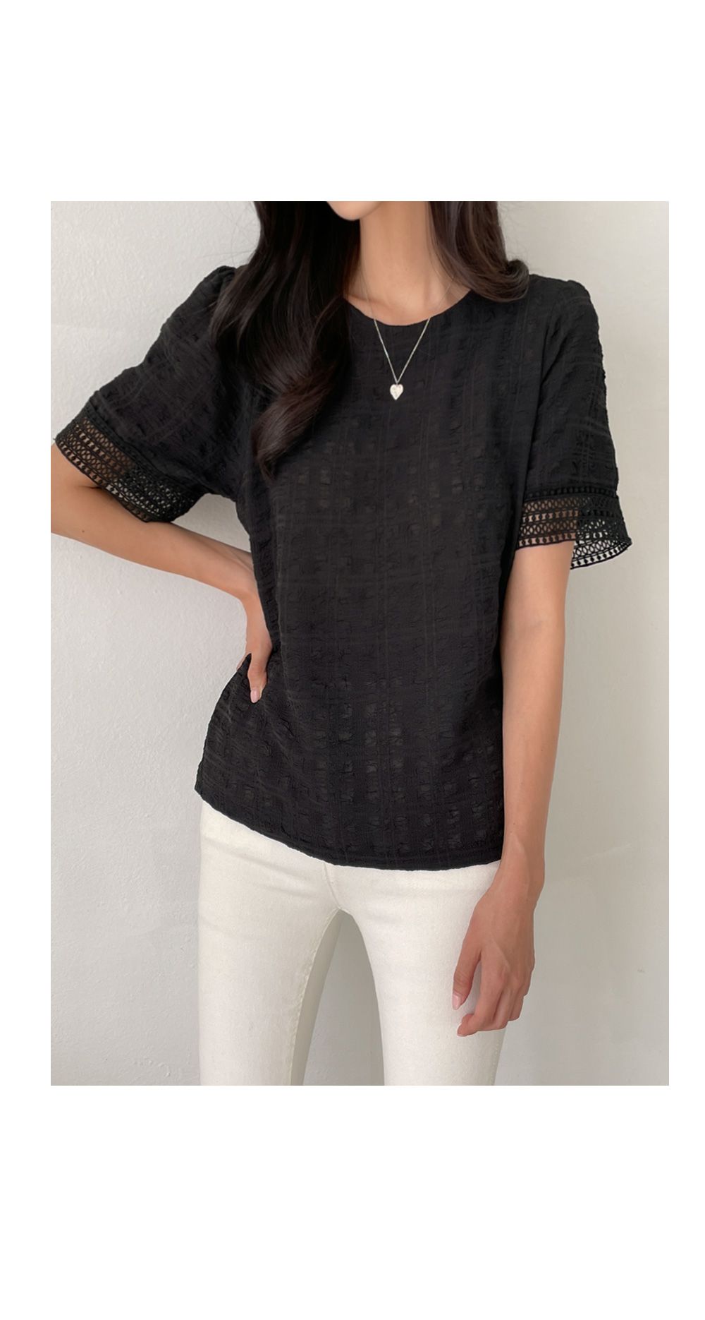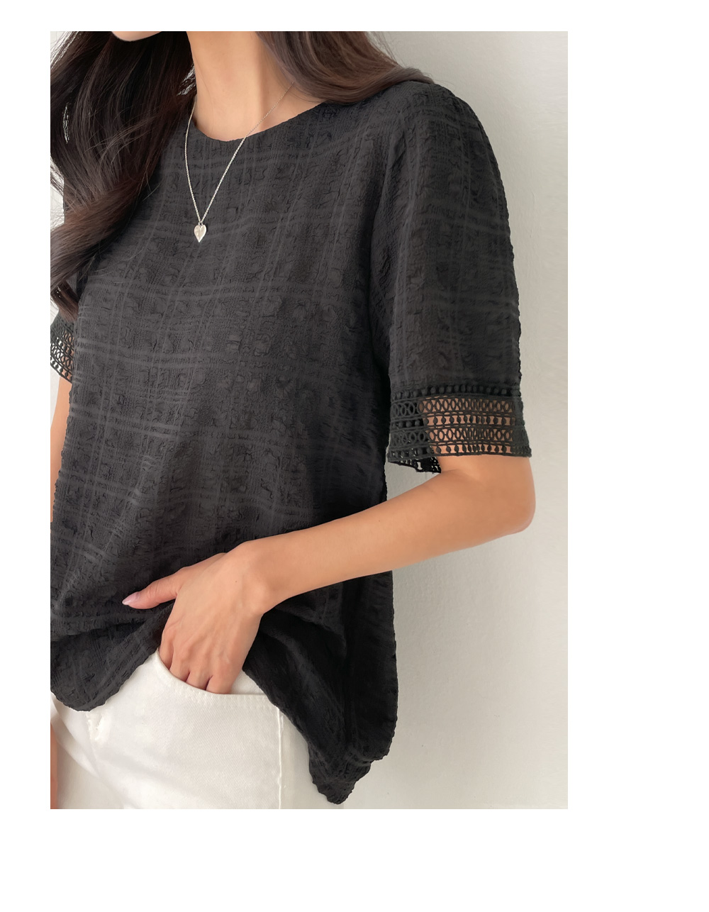 레이스 엠보 블라우스 #49392
