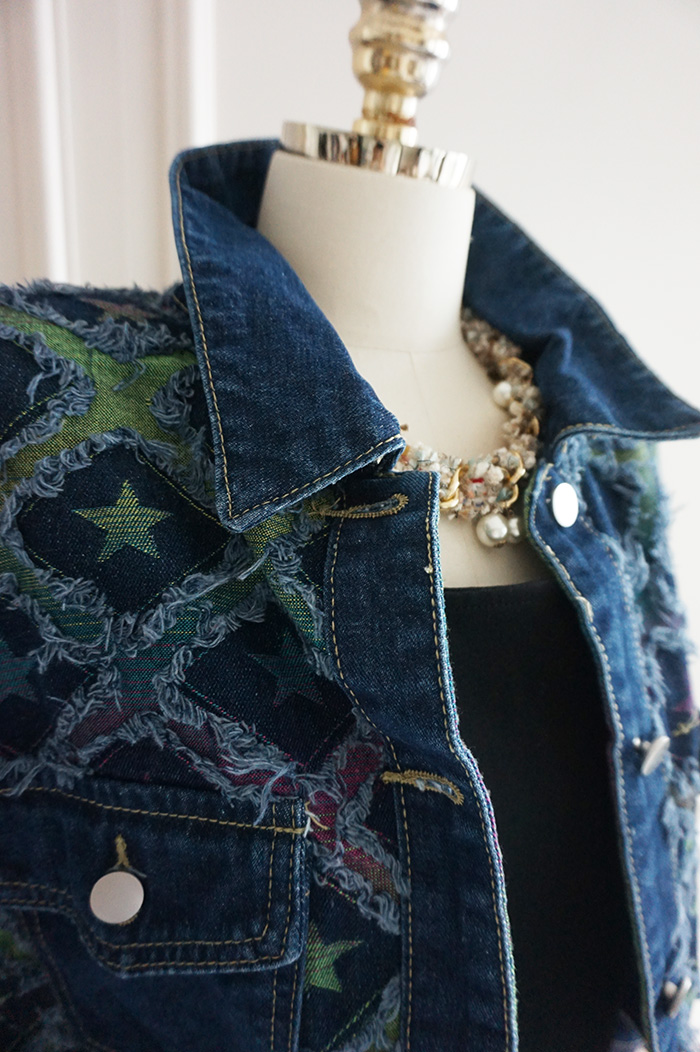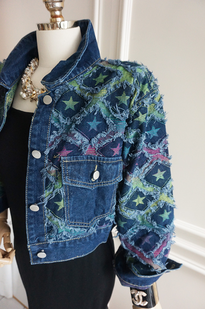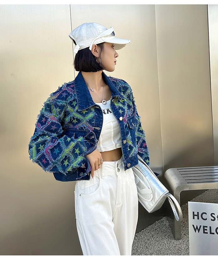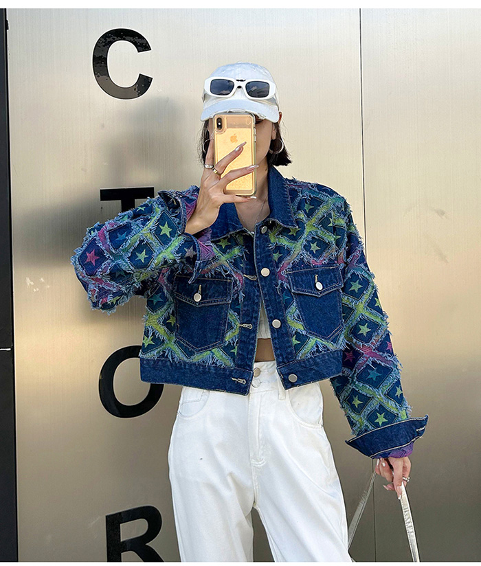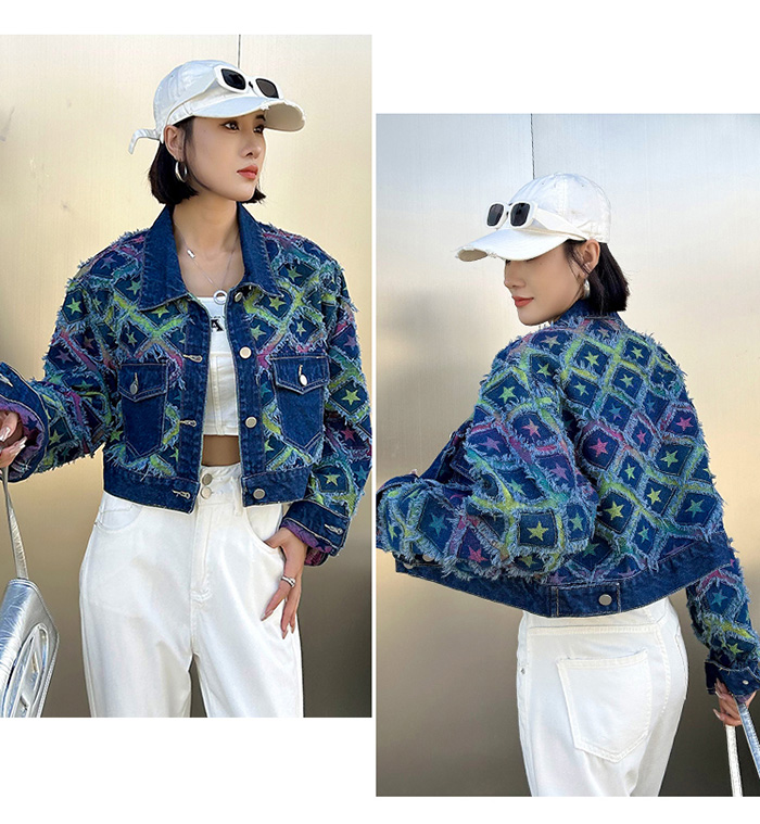 Top Part Star Pattern Unique Dark Blue Denim Jacket