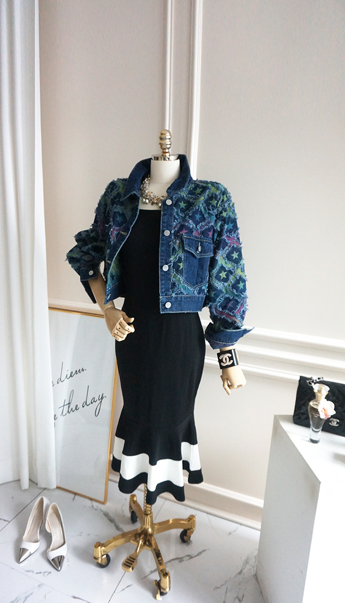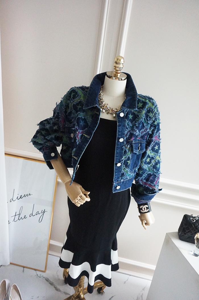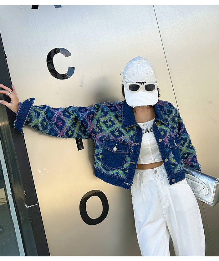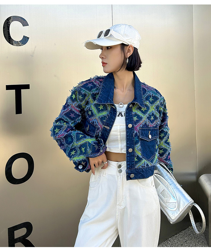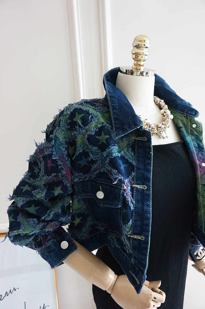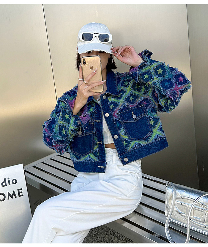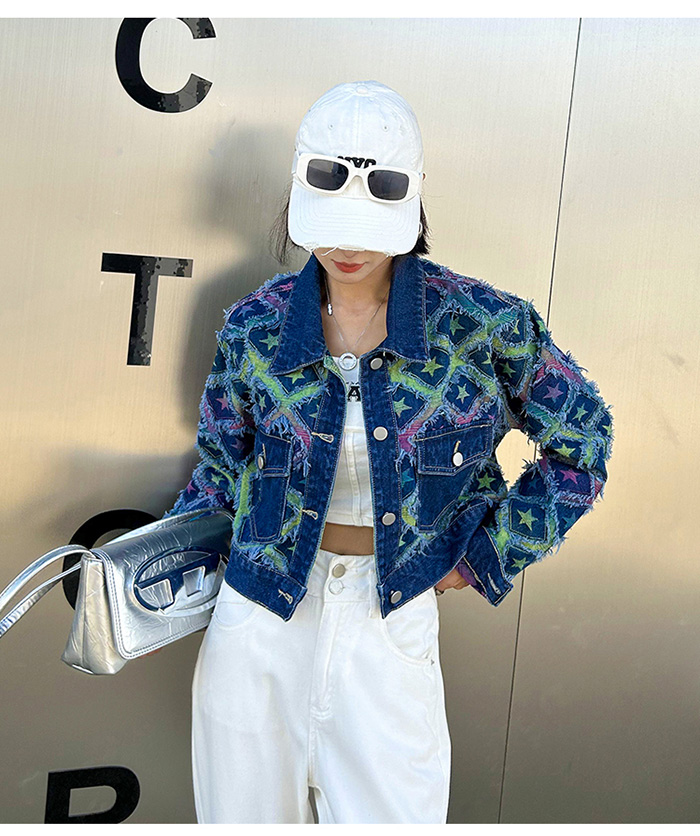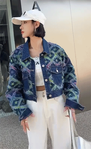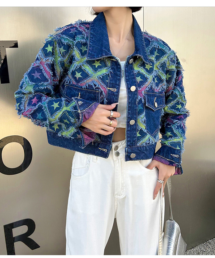 상파트 별패턴 유니크한 진청 데님 자켓