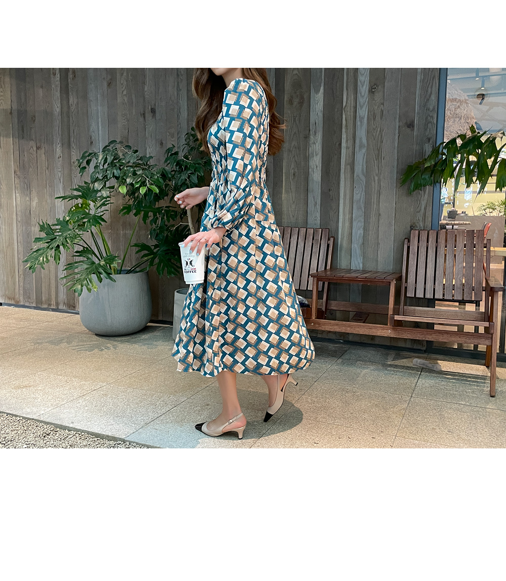 페미닌 패턴 원피스 #38588