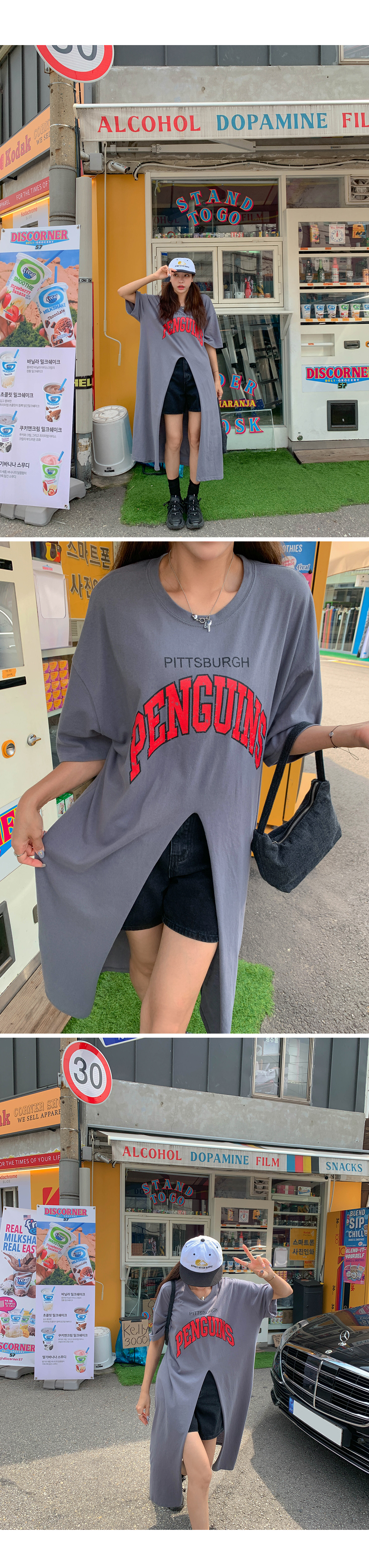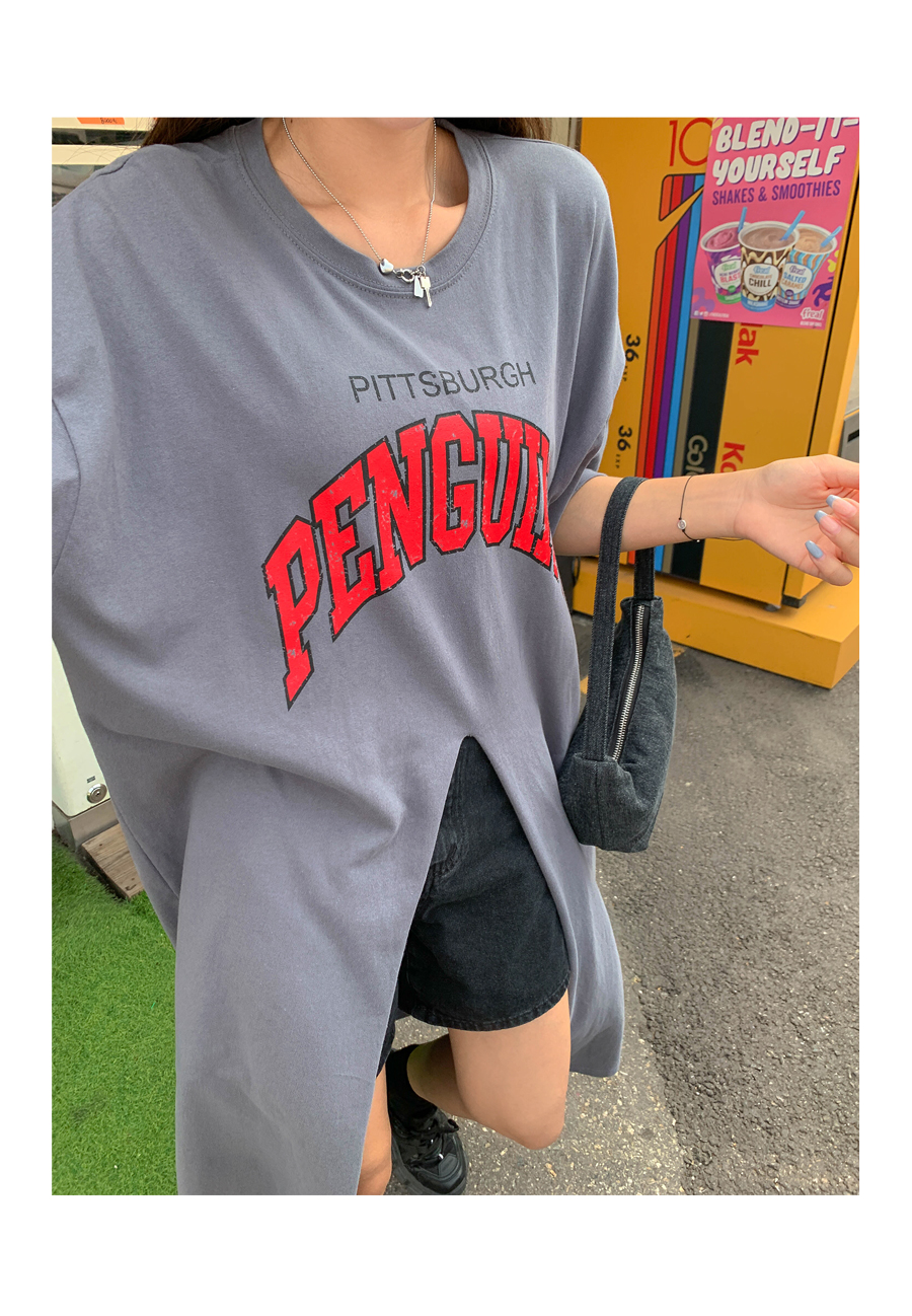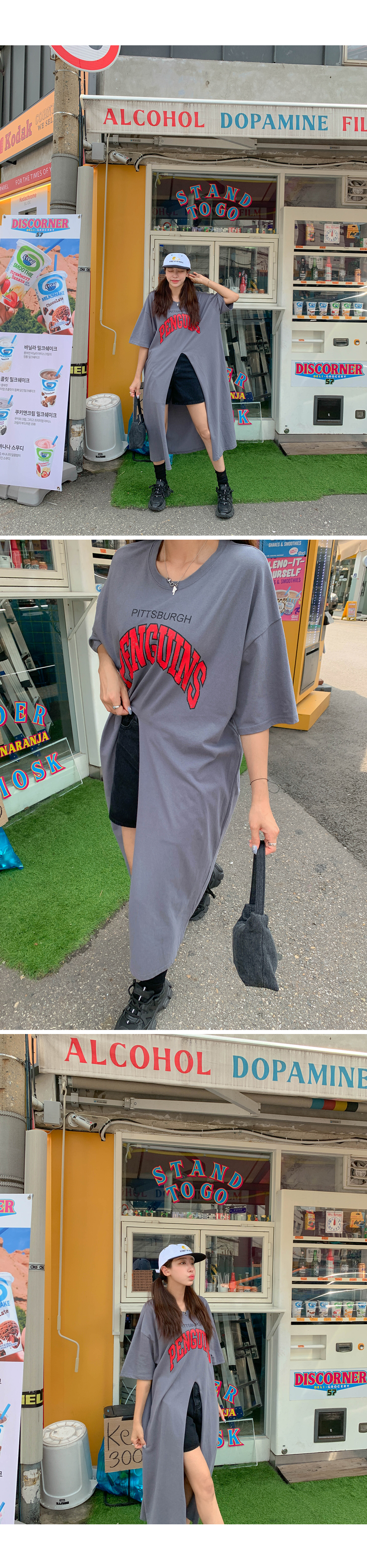Center slit short sleeve long dress