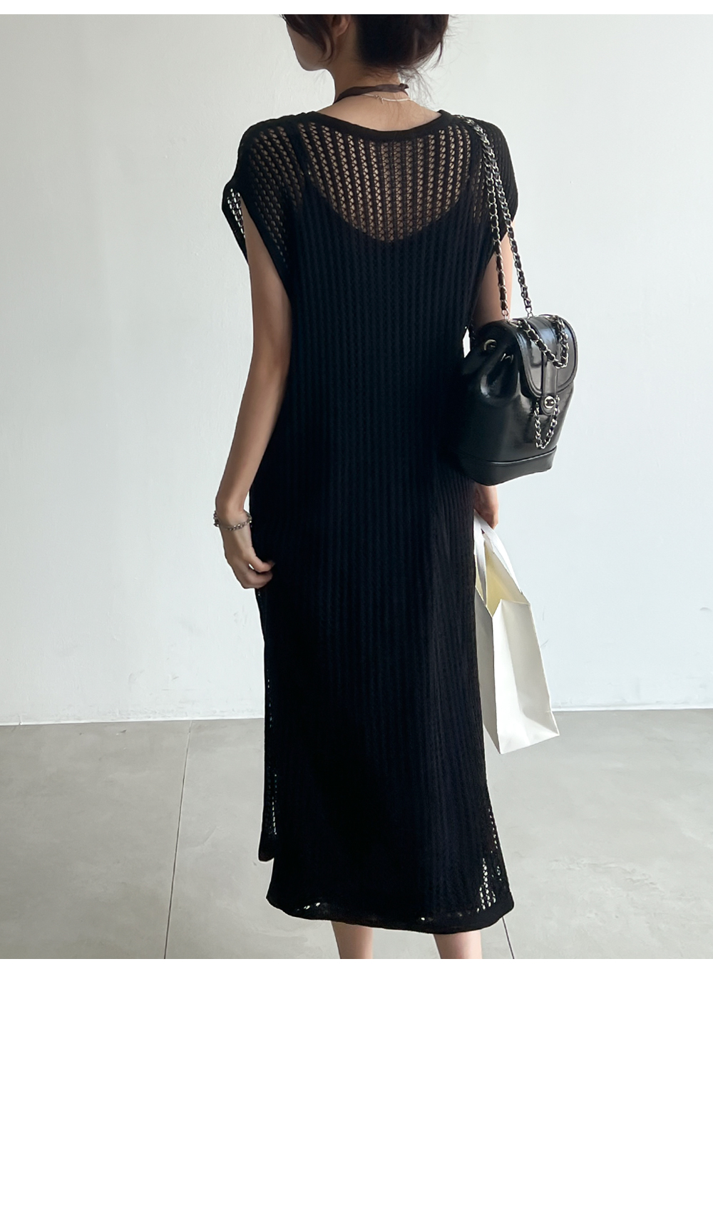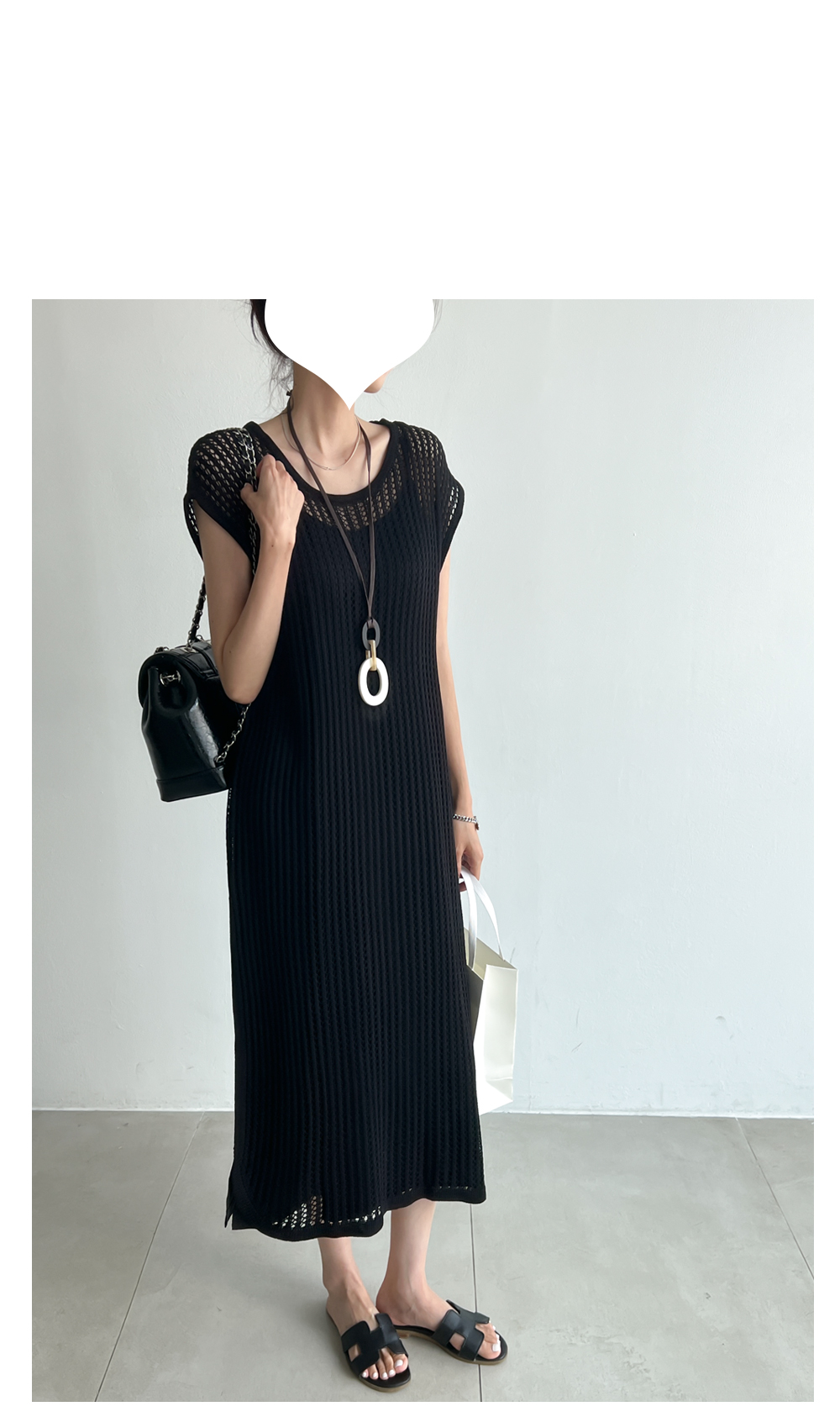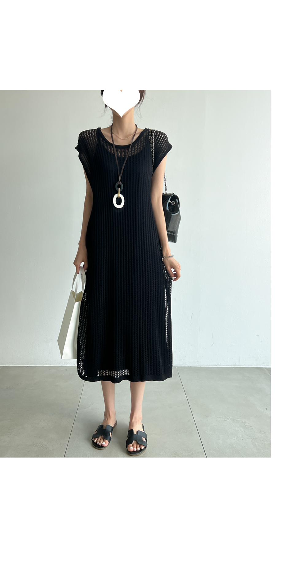 자체제작/ 그물망 옆트임 롱 원피스 #38547