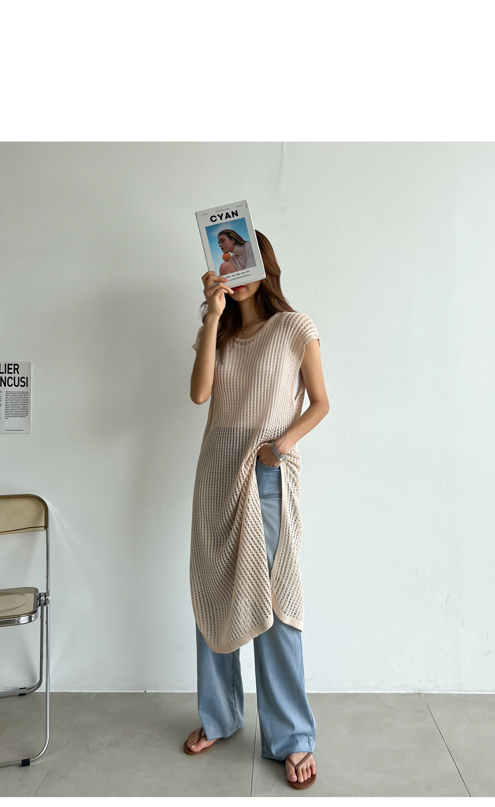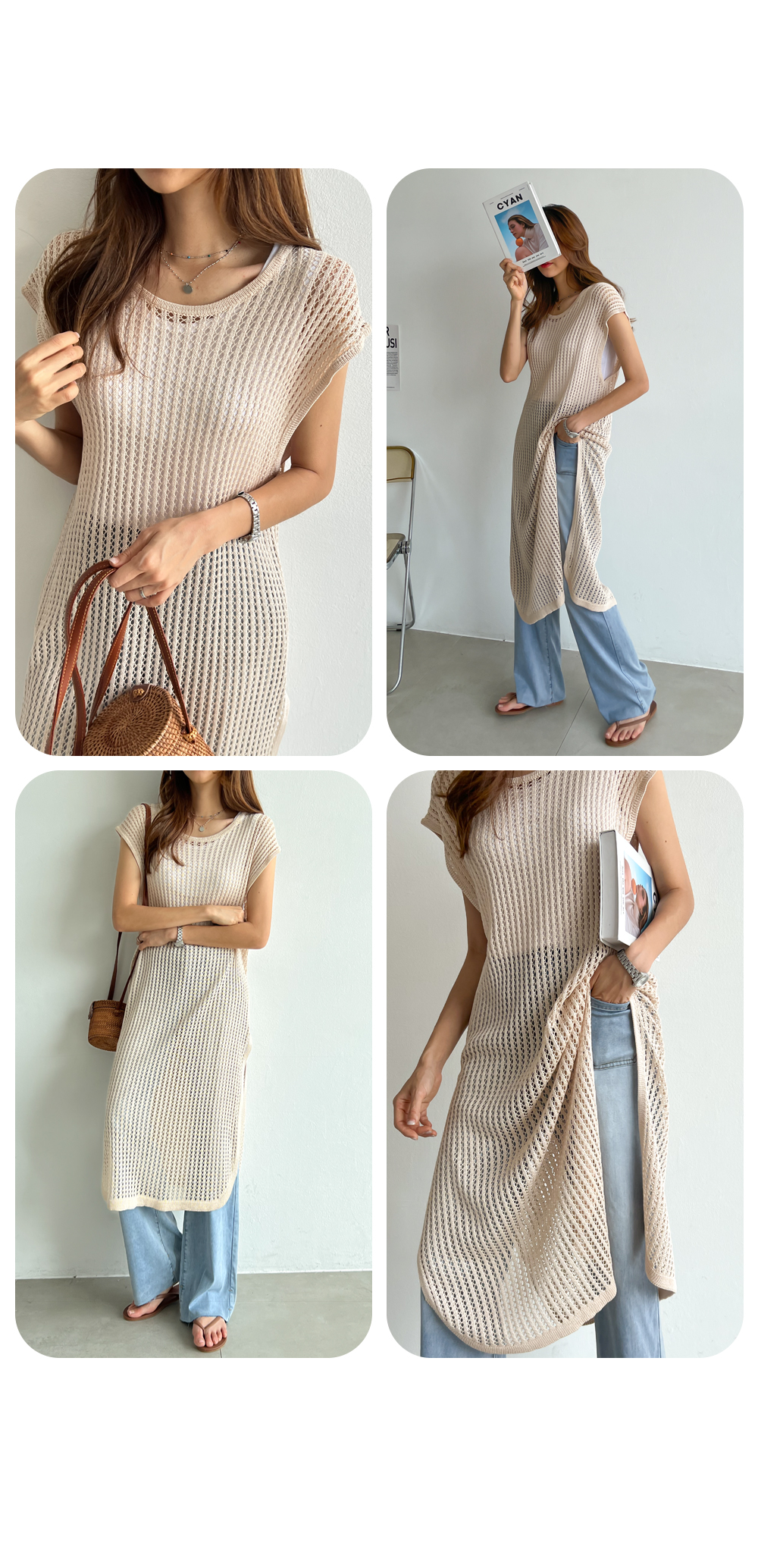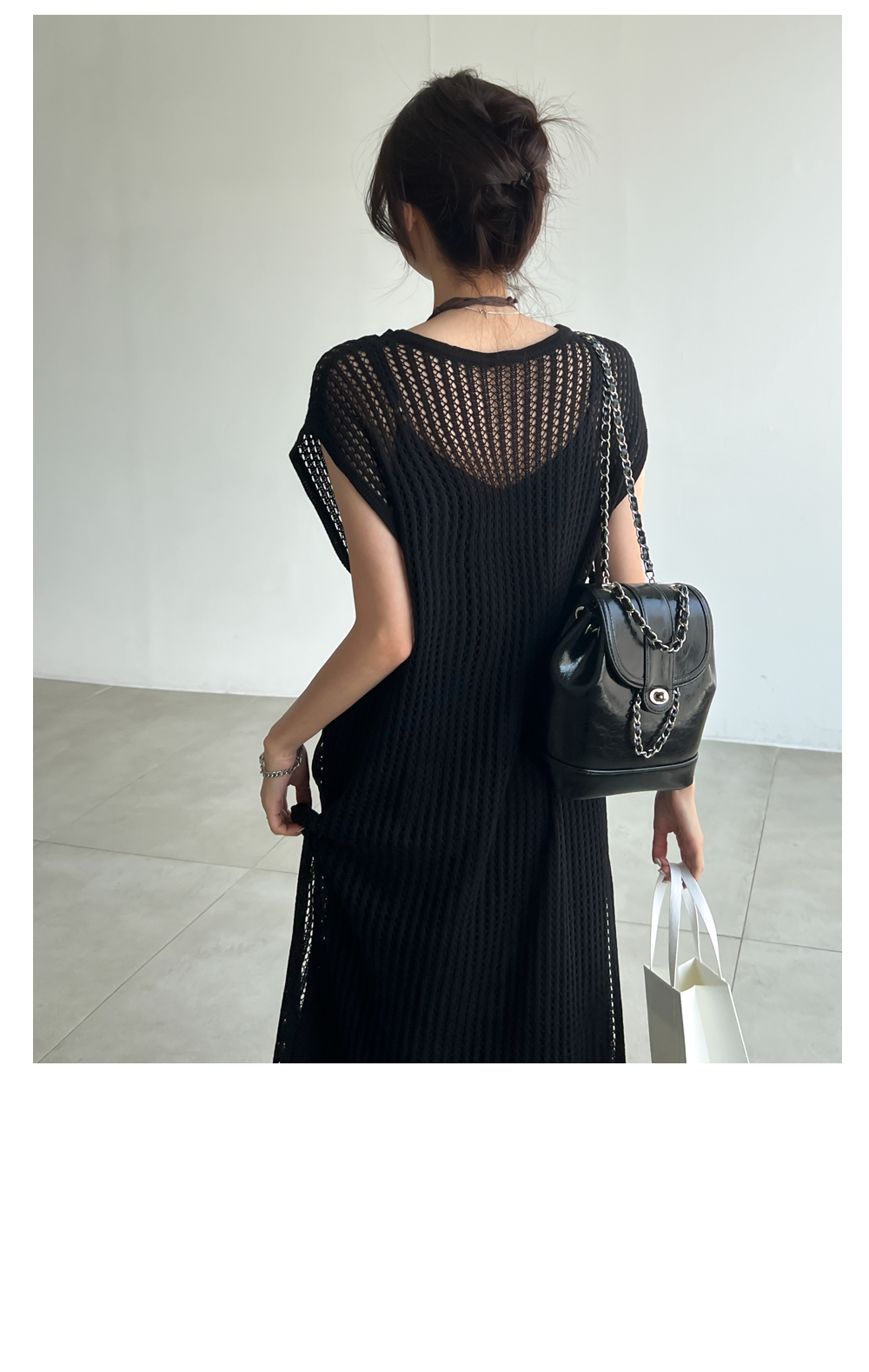 자체제작/ 그물망 옆트임 롱 원피스 #38547
