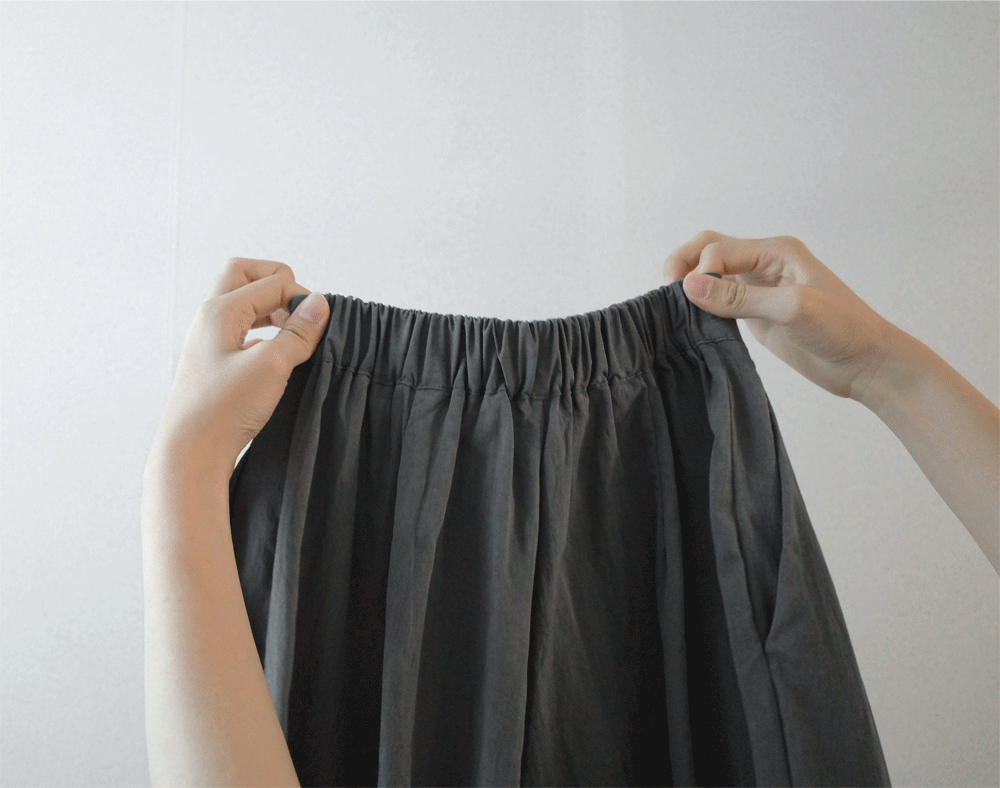 -허리 뒤쪽으로 쫀쫀한 뒷밴딩이 구성되어있어