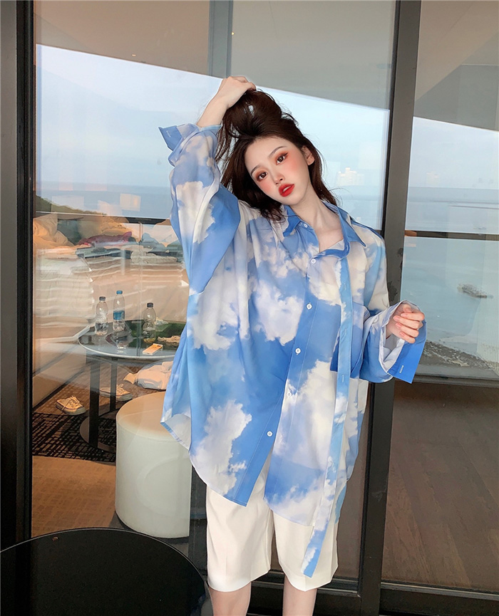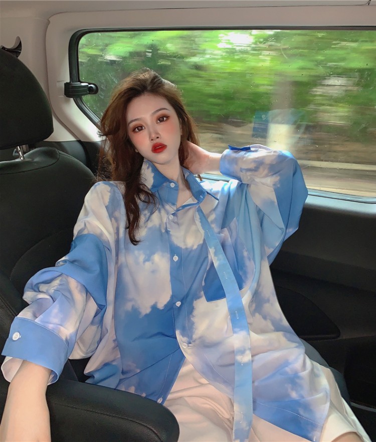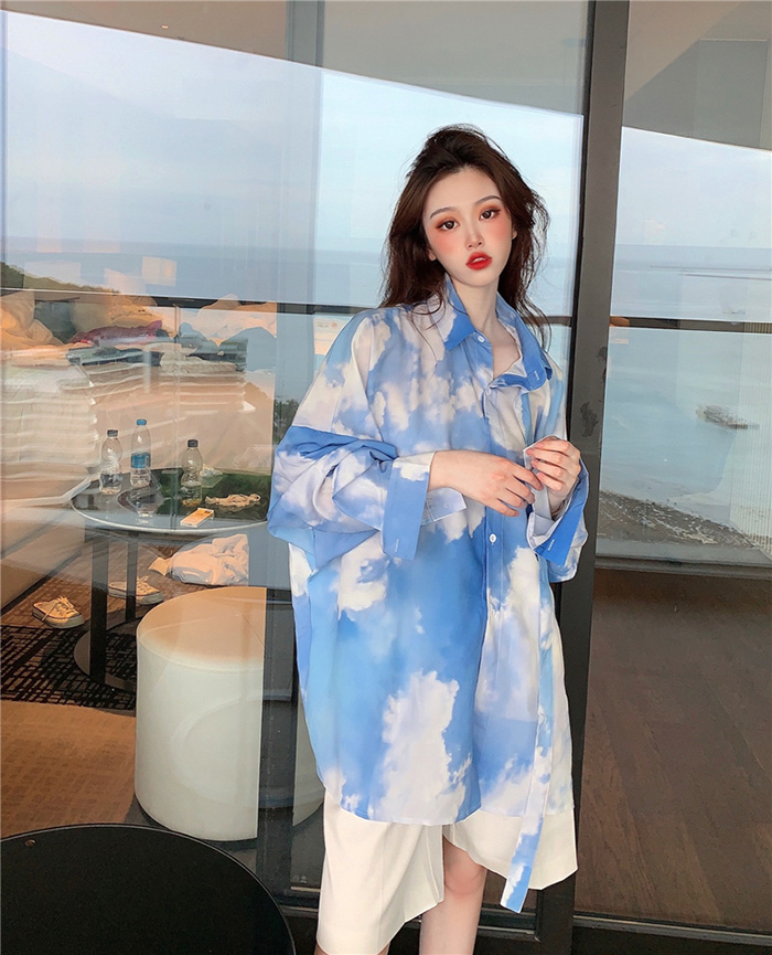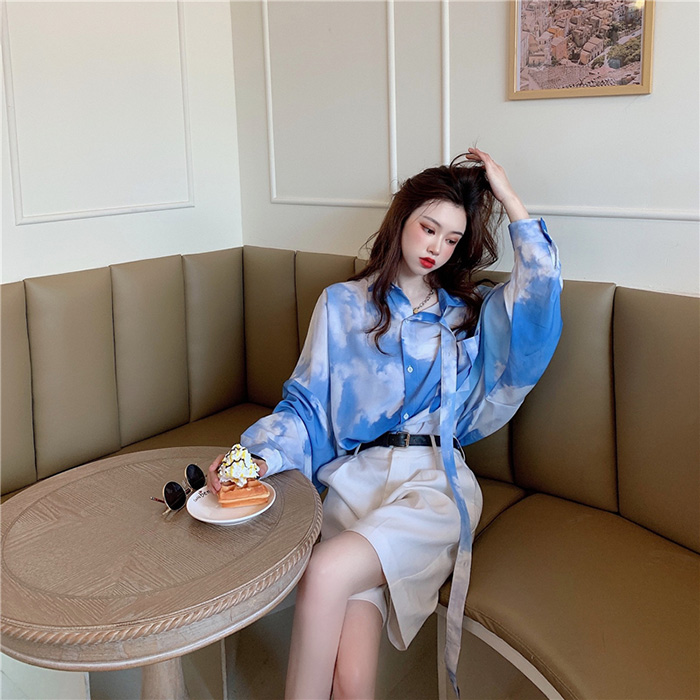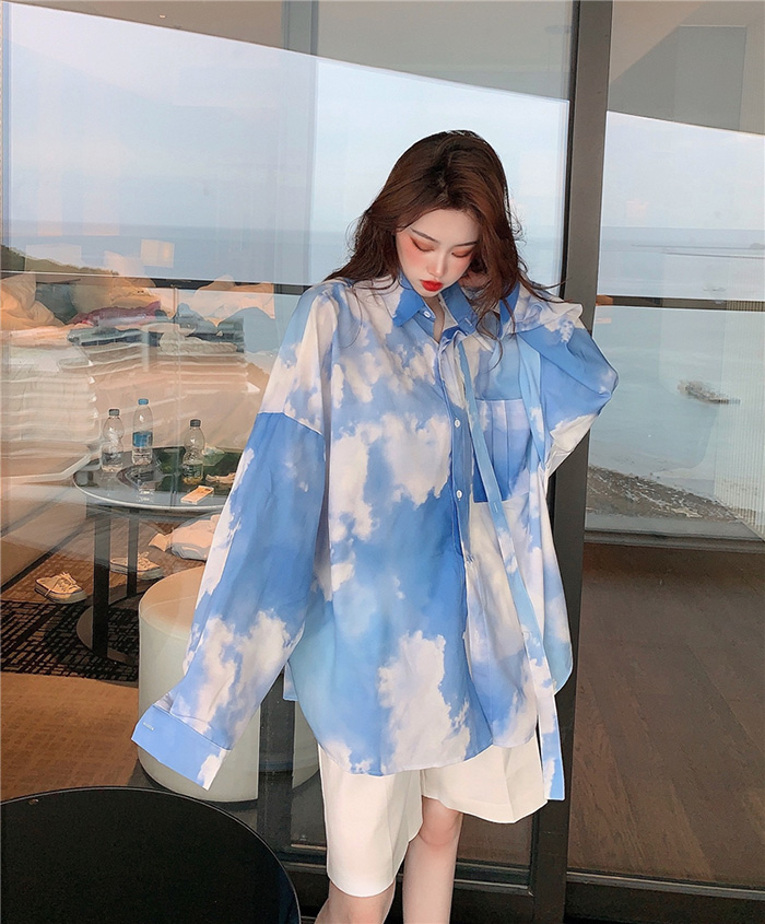 블루스카이 타이 박시 오버핏 셔츠