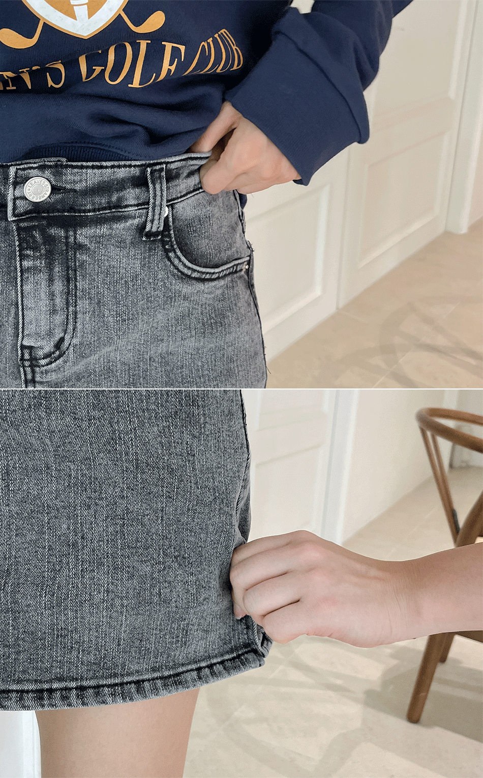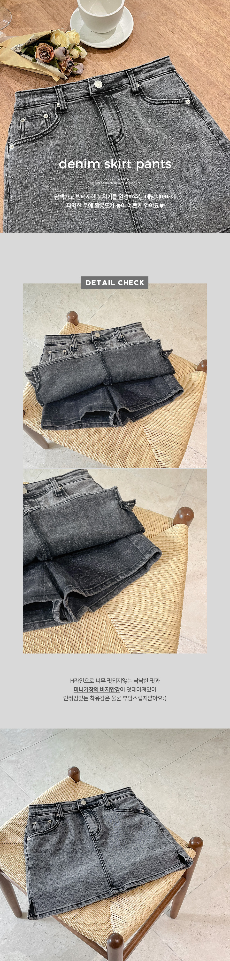 담백하고 빈티지한 분위기를 완성해주는 데님치마바지!
