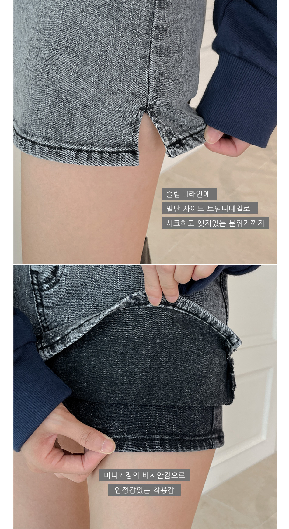 밑단 사이드의 트임디테일로 시크하고