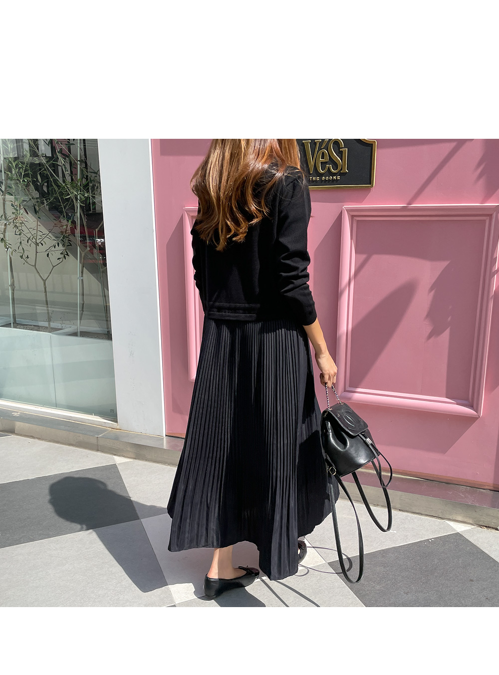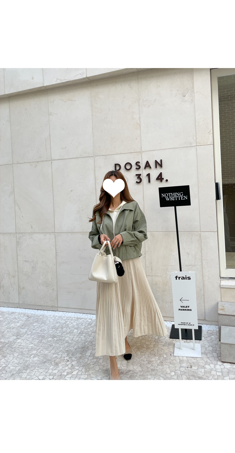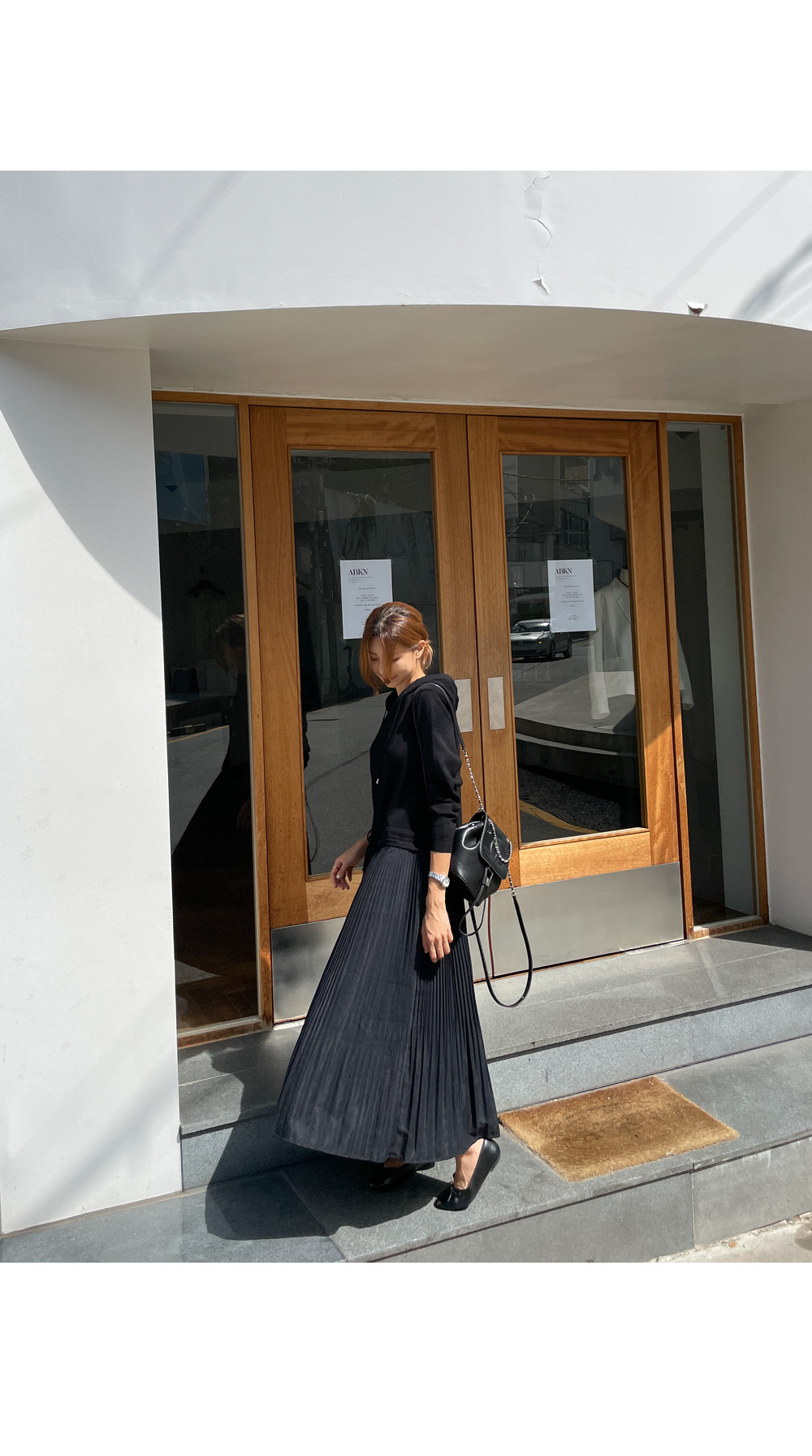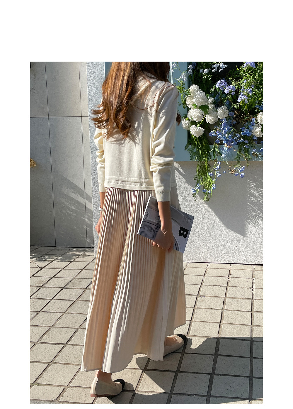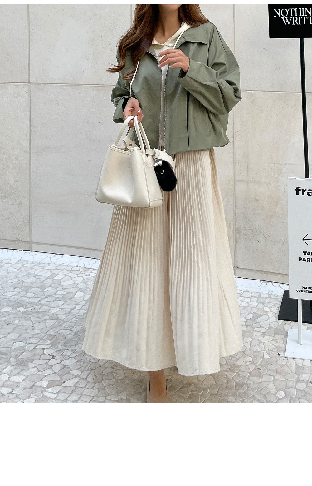 스커트는 여성스러운 플리츠로 디자인해주어