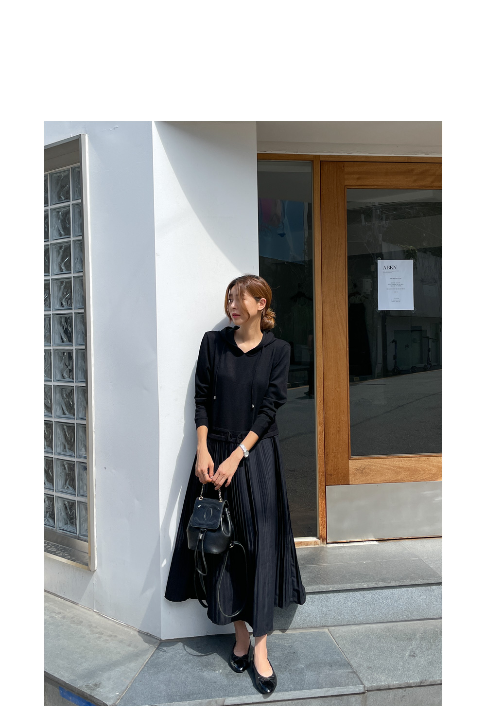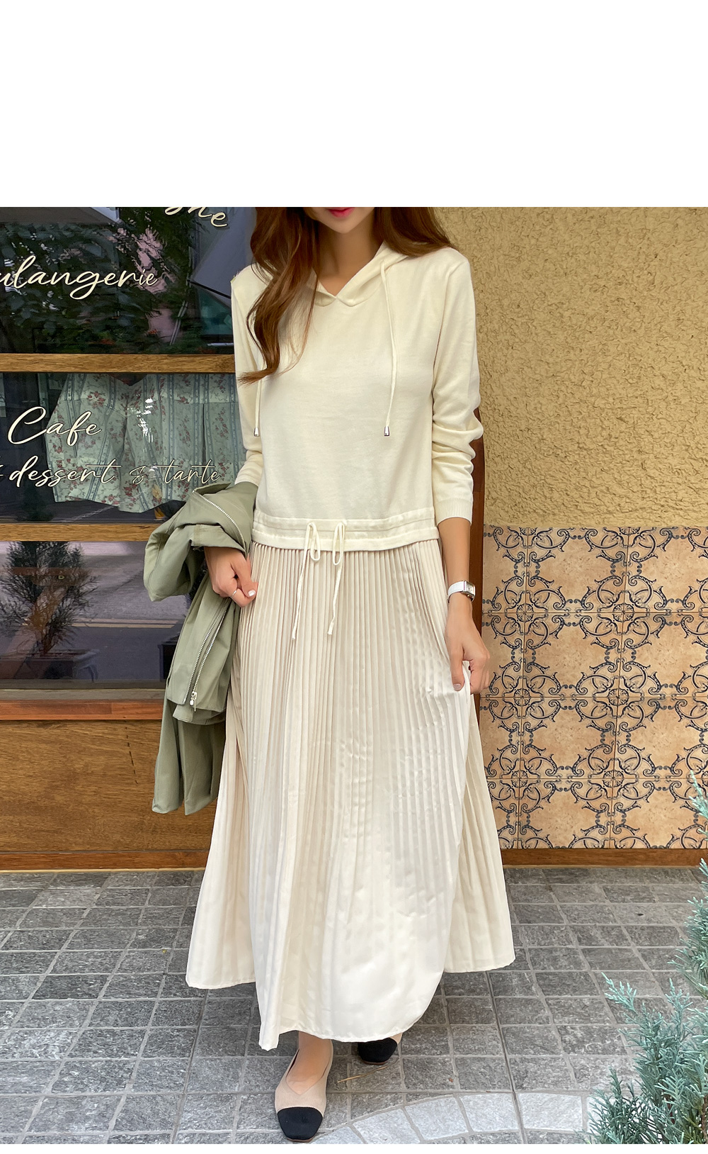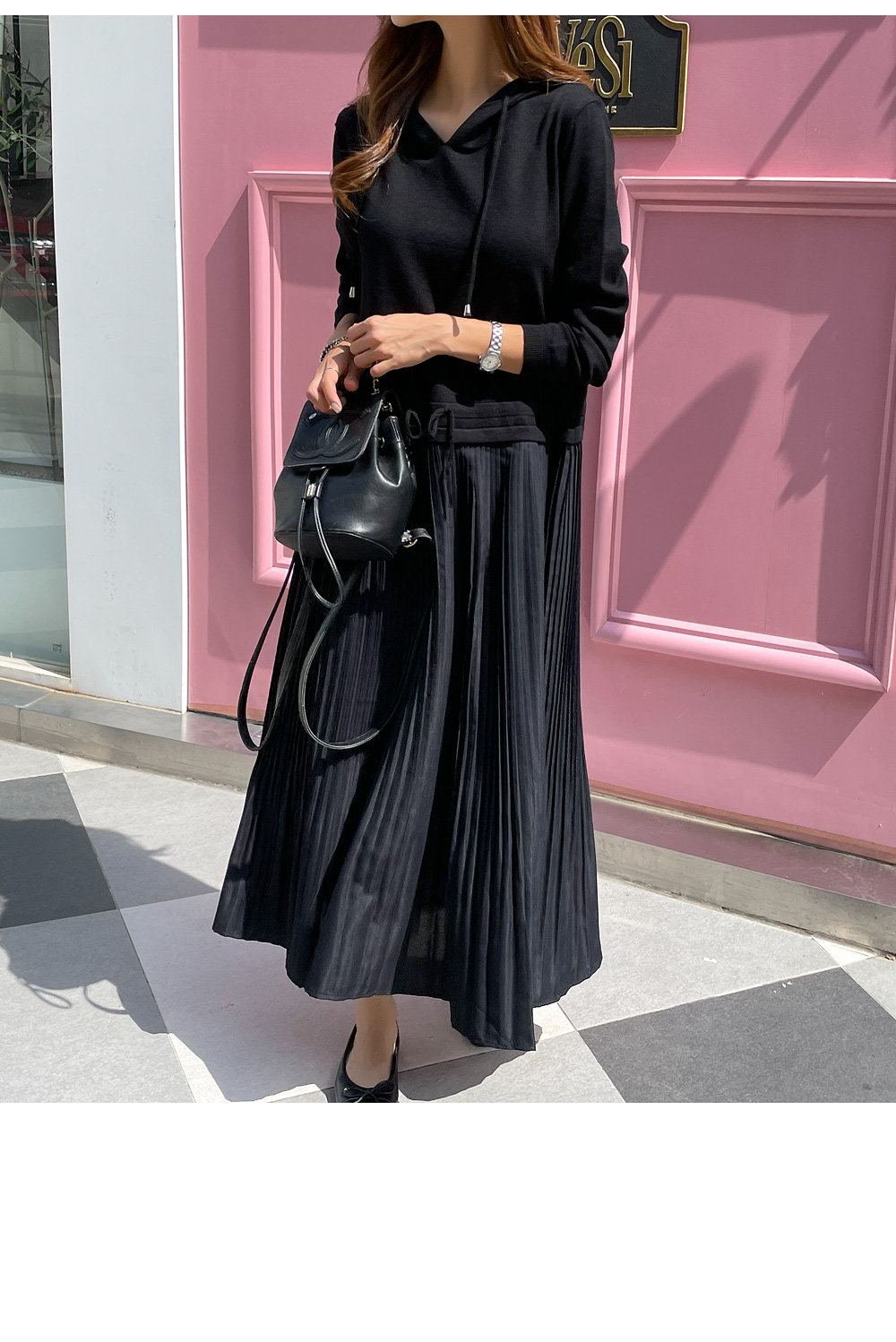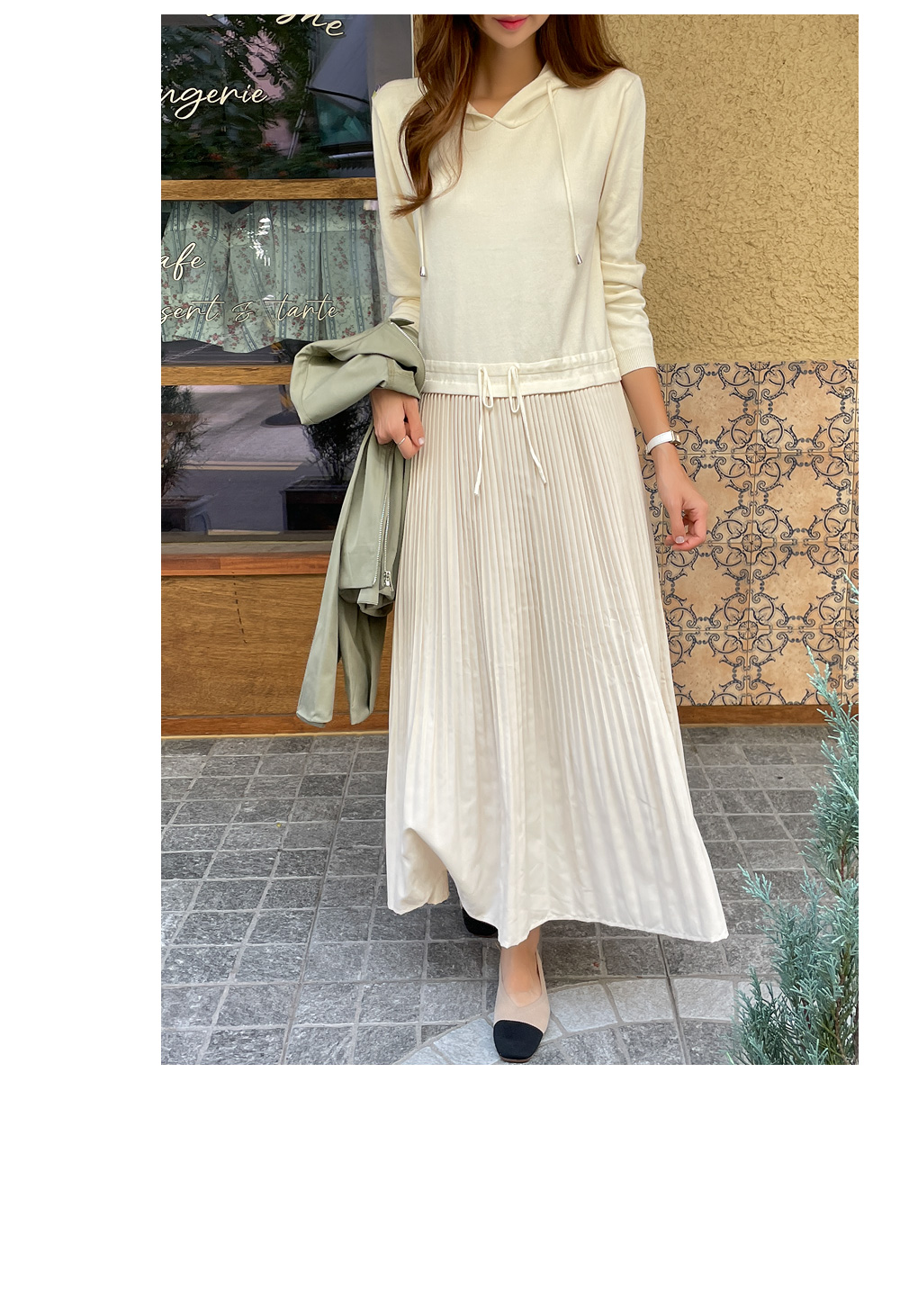 자체제작/후드 니트 플리츠 원피스 #38589