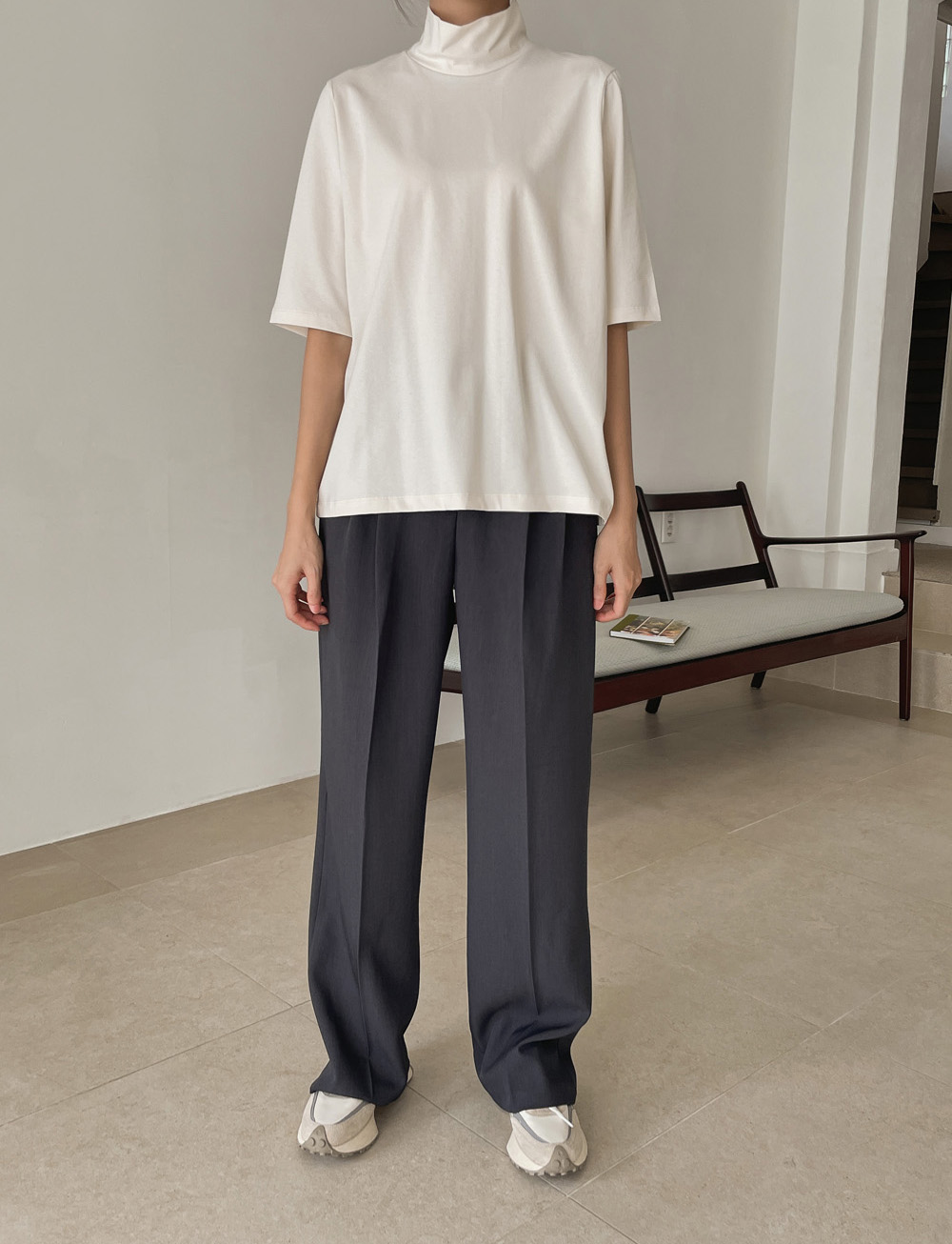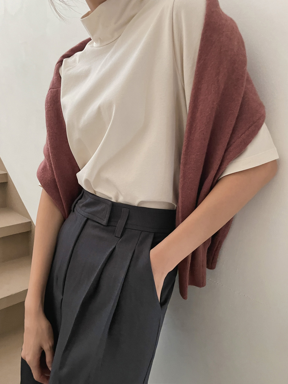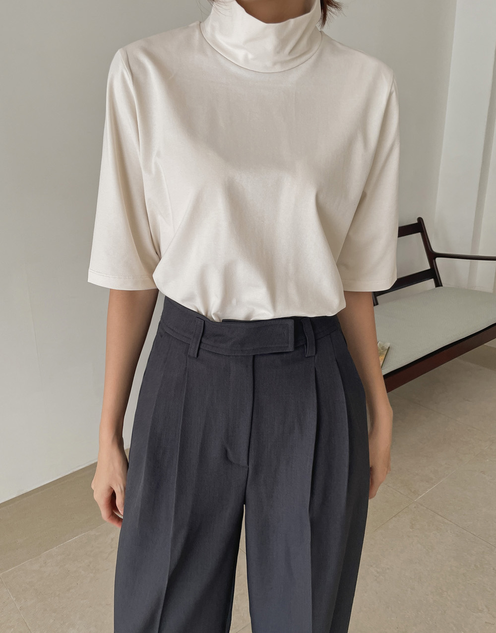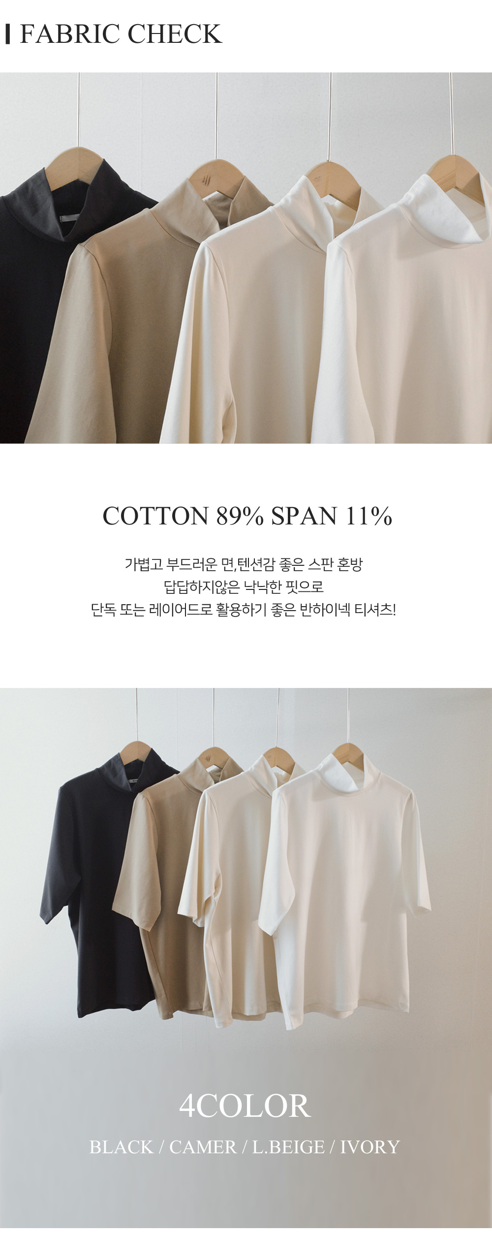 단독 또는 레이어드로 활용하기 좋은 반하이넥 티셔츠!