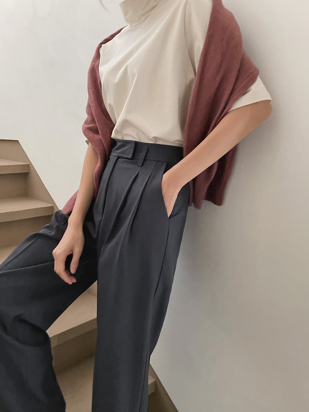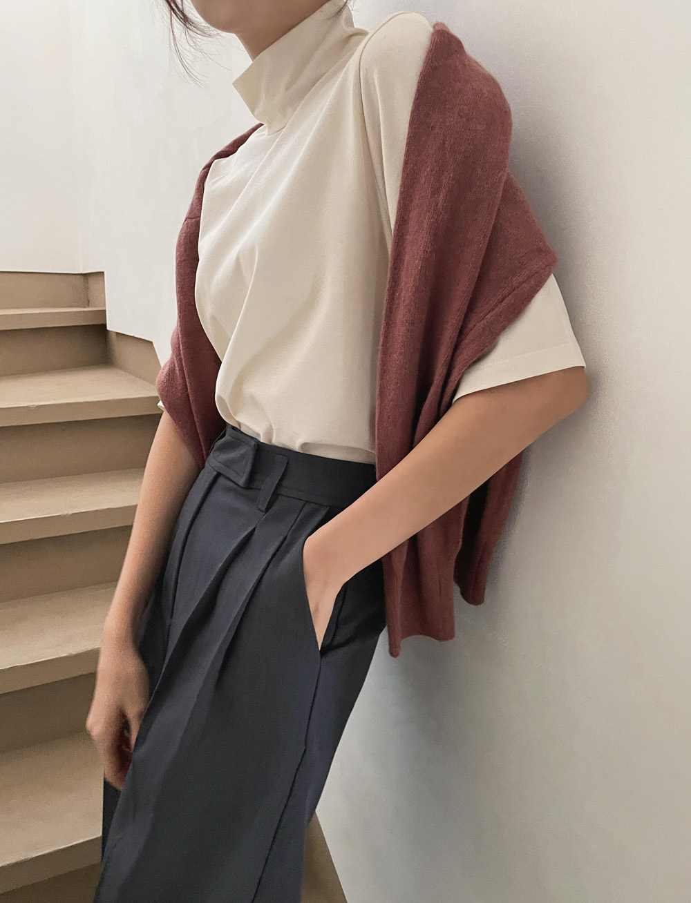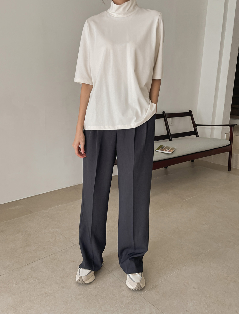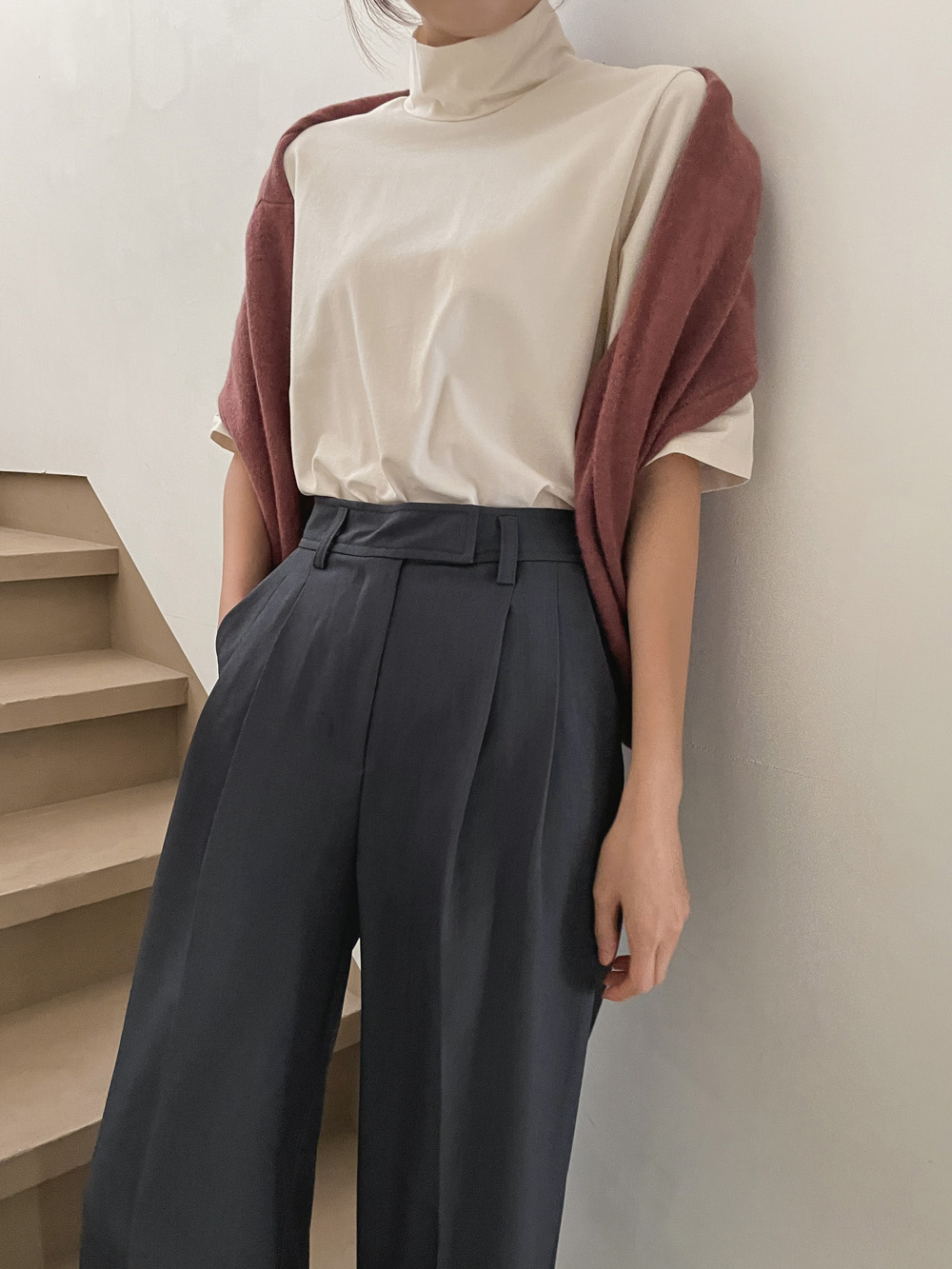 단독 또는 레이어드로 활용하기 좋은 반하이넥 티셔츠!