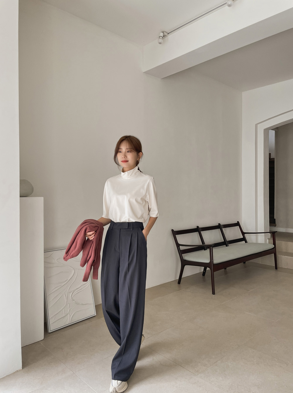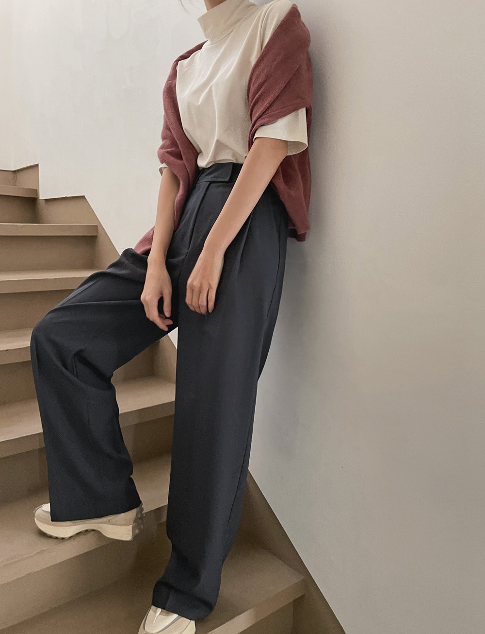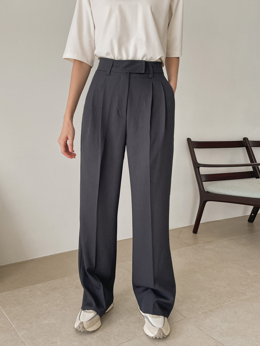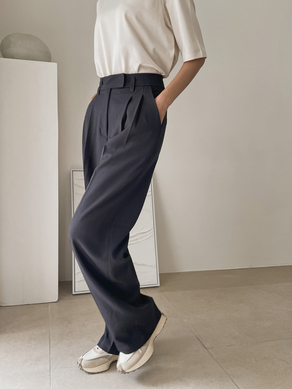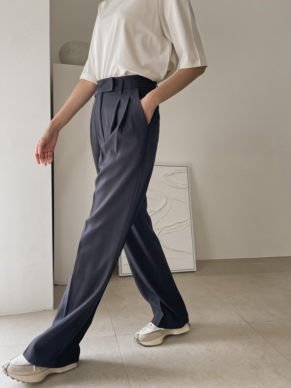 슬랙스에 하나만 입어도 포인트가 되어주는 티셔츠에요