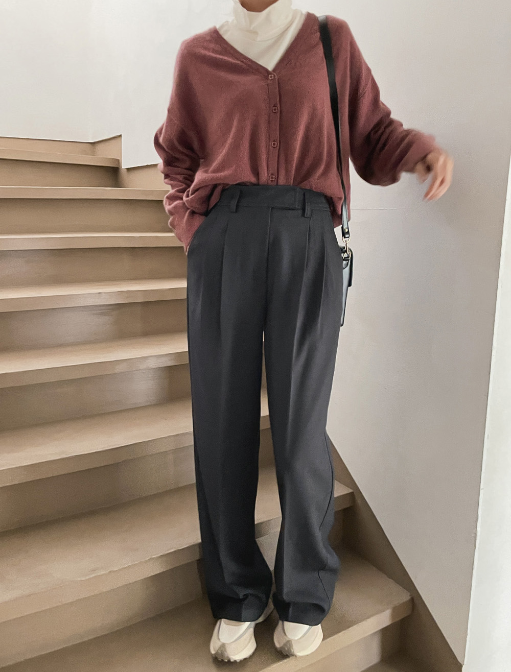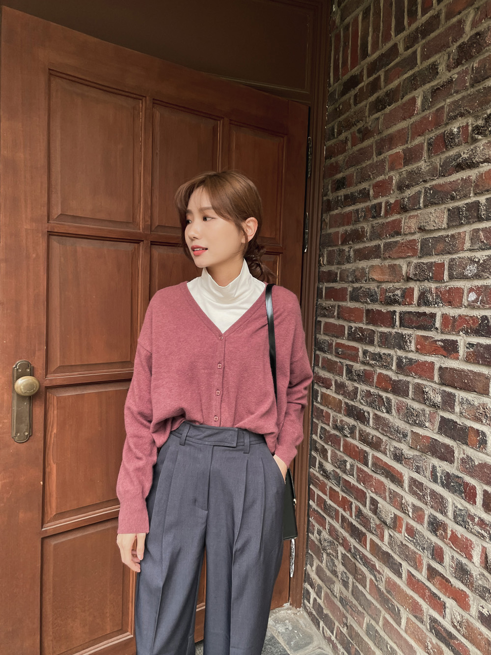 클래식하고 세련돼 보이는 하프넥 디자인으로