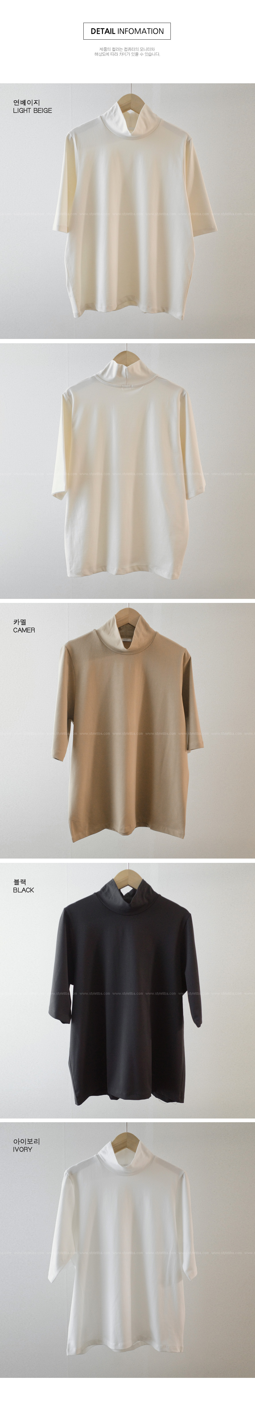 올드 반하이넥 5부티셔츠-4color, 군살가려주는 5부소매-답답하지않은 낙낙한 반목티 핏-초겨울까지 쭉~ 활용도100% - 스타일티바