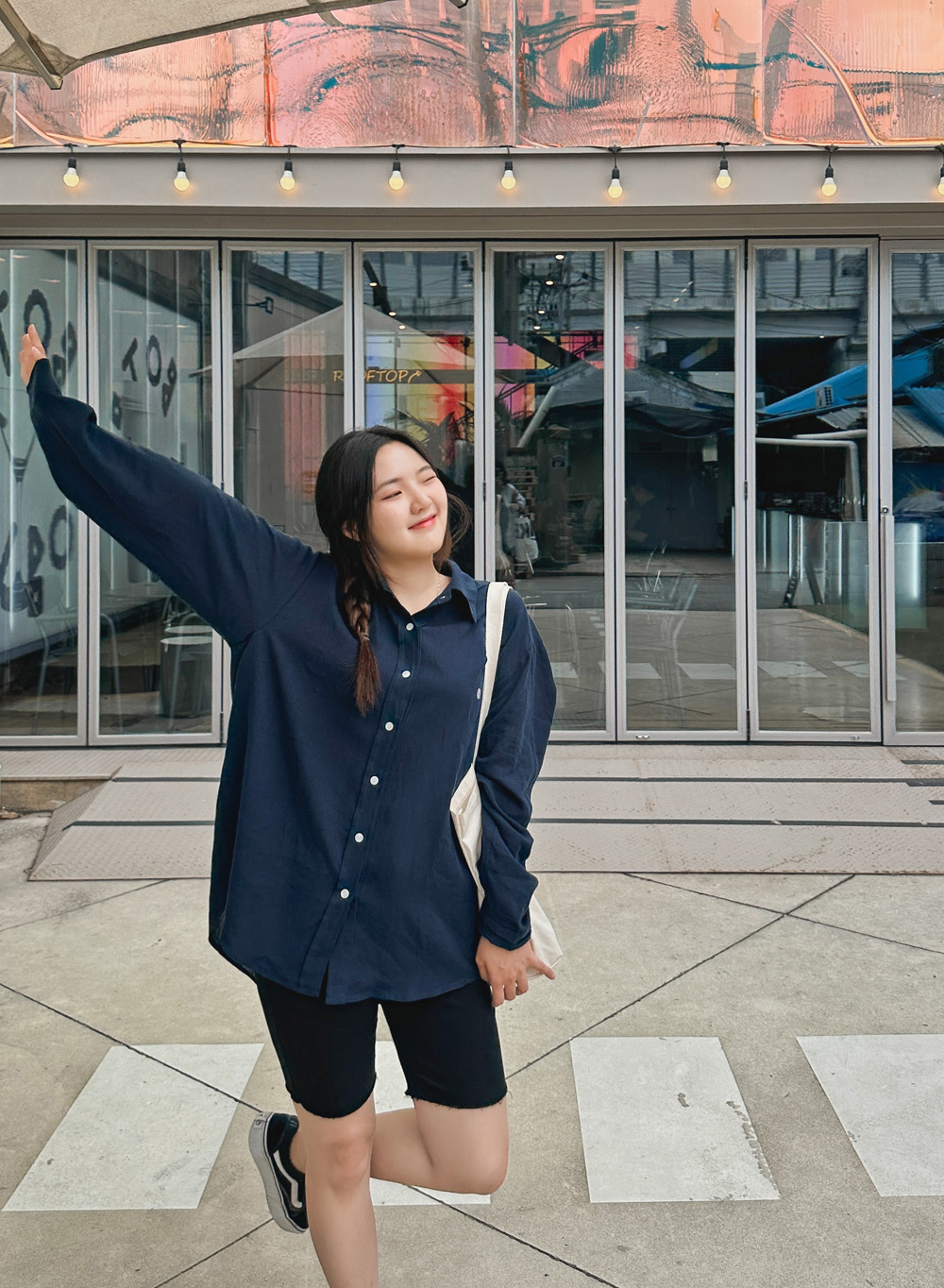 아방한 느낌의 오버핏 사이즈로 체형 커버는 물론